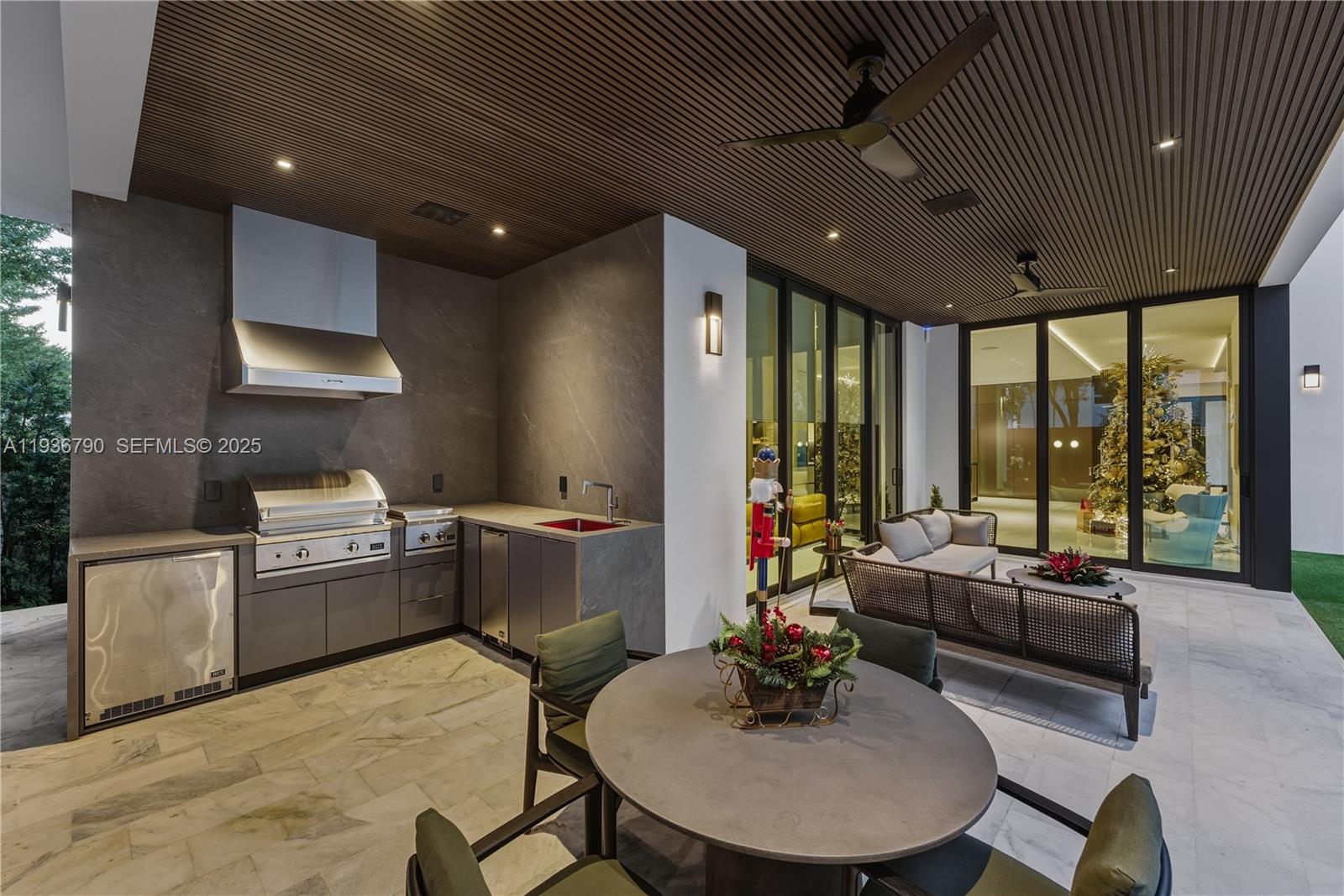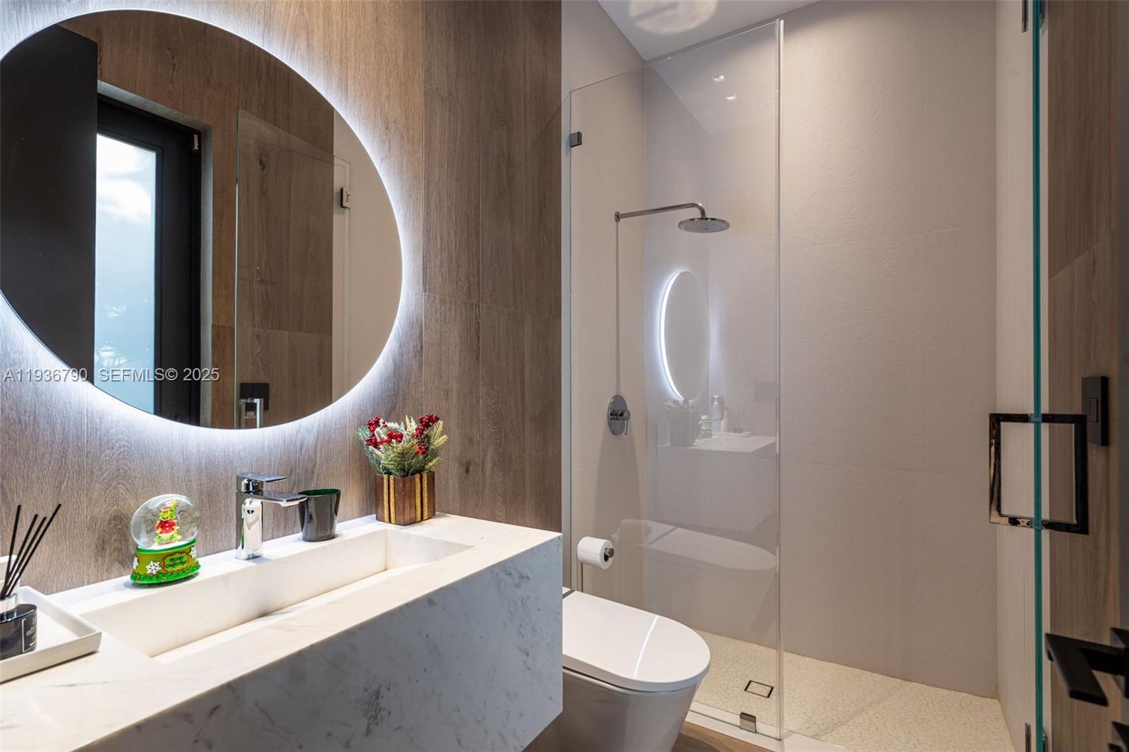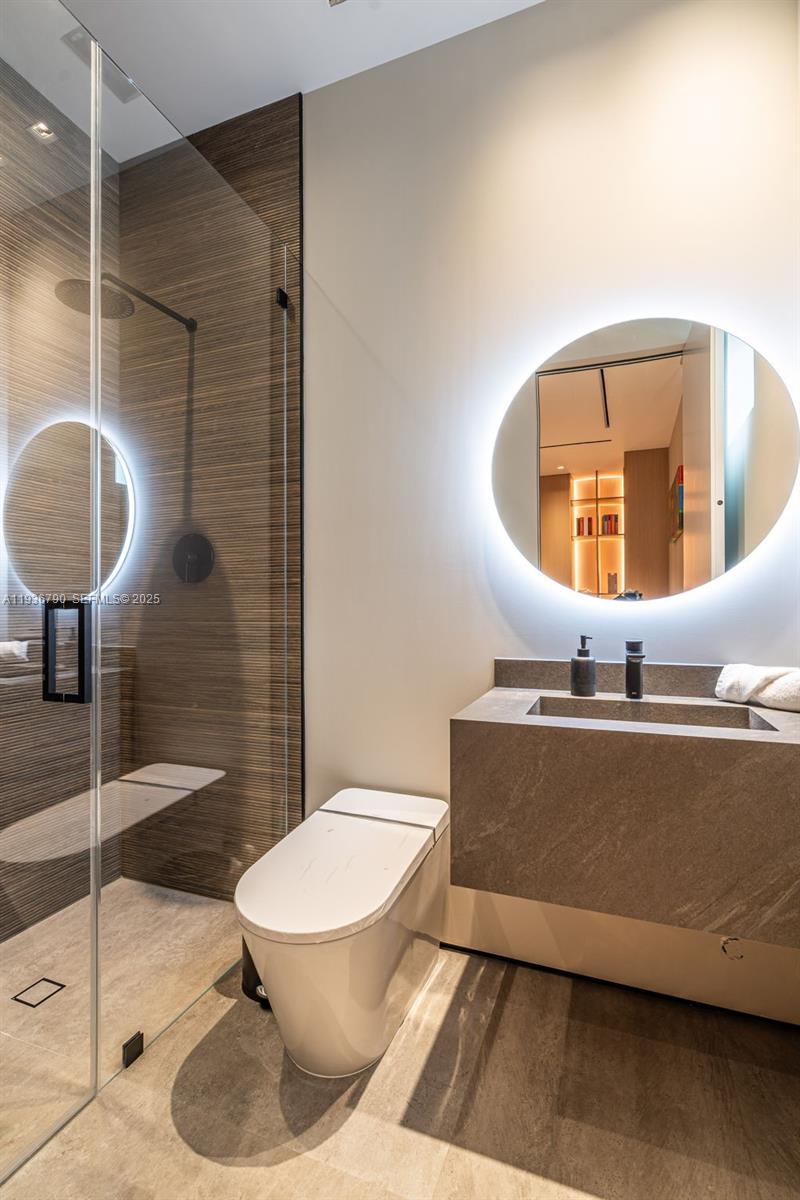 This minimalist contemporary luxury home is a masterfully designed residence curated with uncompromising attention to detail, delivering a true high-end living experience. The home features a full WAC architectural track lighting system throughout, complemented by recessed linear LEDs, ambient cove lighting, and a dramatic Flos AIM statement fixture accentuating the double-height living space. A fully integrated Smart Home system with Lutron Shades and Control4 allows seamless control of lighting, climate, and ambiance, while a whole-home speaker system provides integrated audio throughout. Interiors showcasing sculptural contemporary pieces and anchored by a striking Lexington central shelving unit by Poliform, conceived as a gallery-style architectural focal point. The residence is finished with large-format marble-design flooring and flawless Level 5 smooth wall finishes, reflecting a museum-quality execution. Custom sheer and blackout drapery systems provide refined light control and privacy throughout. The Italian Poliform kitchen is a true showpiece, featuring sleek European cabinetry, premium integrated appliances, and an oversized full-slab waterfall island—ideal for both entertaining and everyday luxury living. The primary suite offers a boutique-style custom walk-in closet with illuminated shelving. A finished garage adds versatility as a lounge, studio, or private gym. Every element of this home reflects a refined, luxury standard.