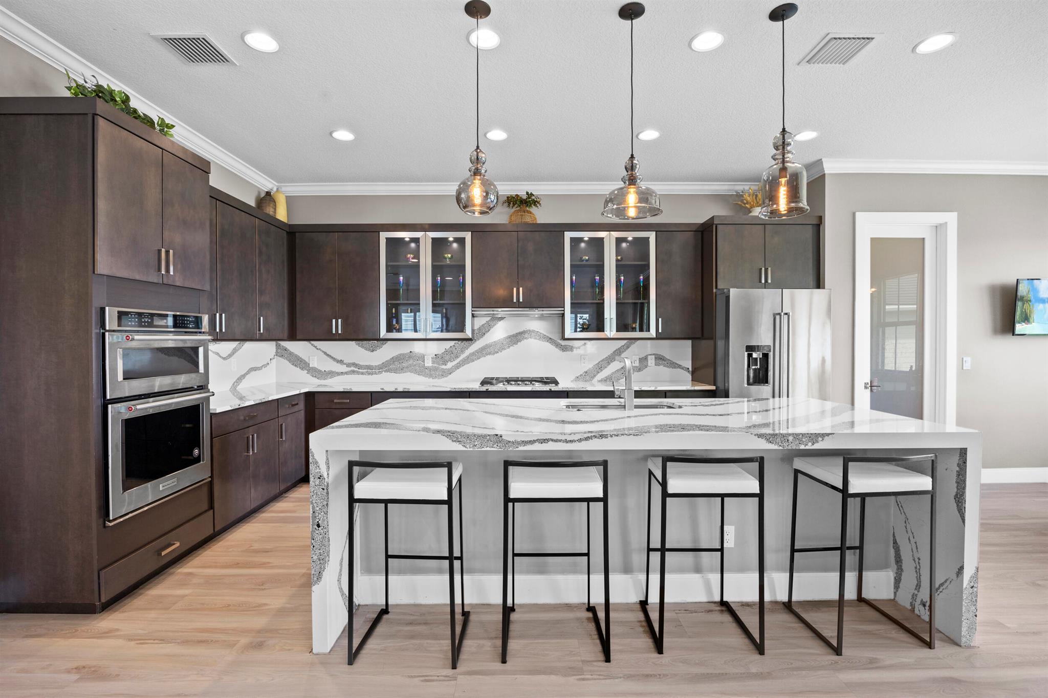 Why wait for new construction when you can have this?This 2021 Kenco built nearly 4,000 SF lakefront home has soaring ceilings, an open flow & designer-level upgrades at every turn that are anything but builder basic. The kitchen is the centerpiece: thick waterfall quartz, gas stove, & space to gather. Downstairs features a bonus room & full ensuite that lives like a second primary. Upstairs: loft, lake-view owner's suite with spa bath and dual walk-in closets + 3 more beds & 2 full baths. The huge covered lanai, oversized lakefront lot & outdoor kitchen set the stage for backyard fun! Add in a four car garage for all of your toys & this home check every box. All in Arden-South Florida's Agrihood with a working farm, resort pools, clubhouse, fitness, and a sense of true community living.