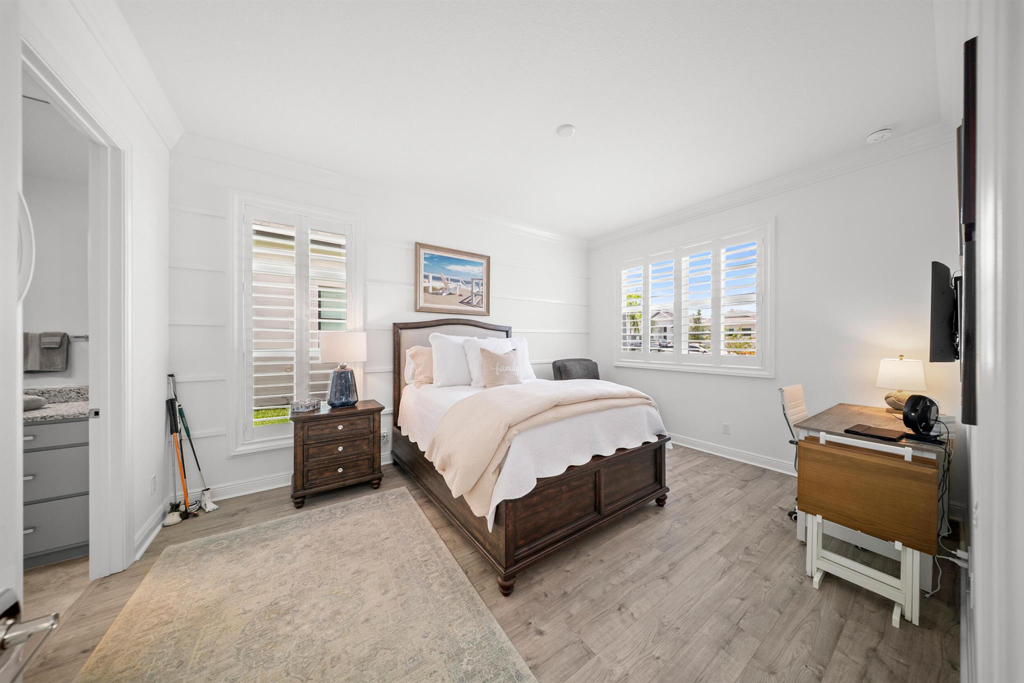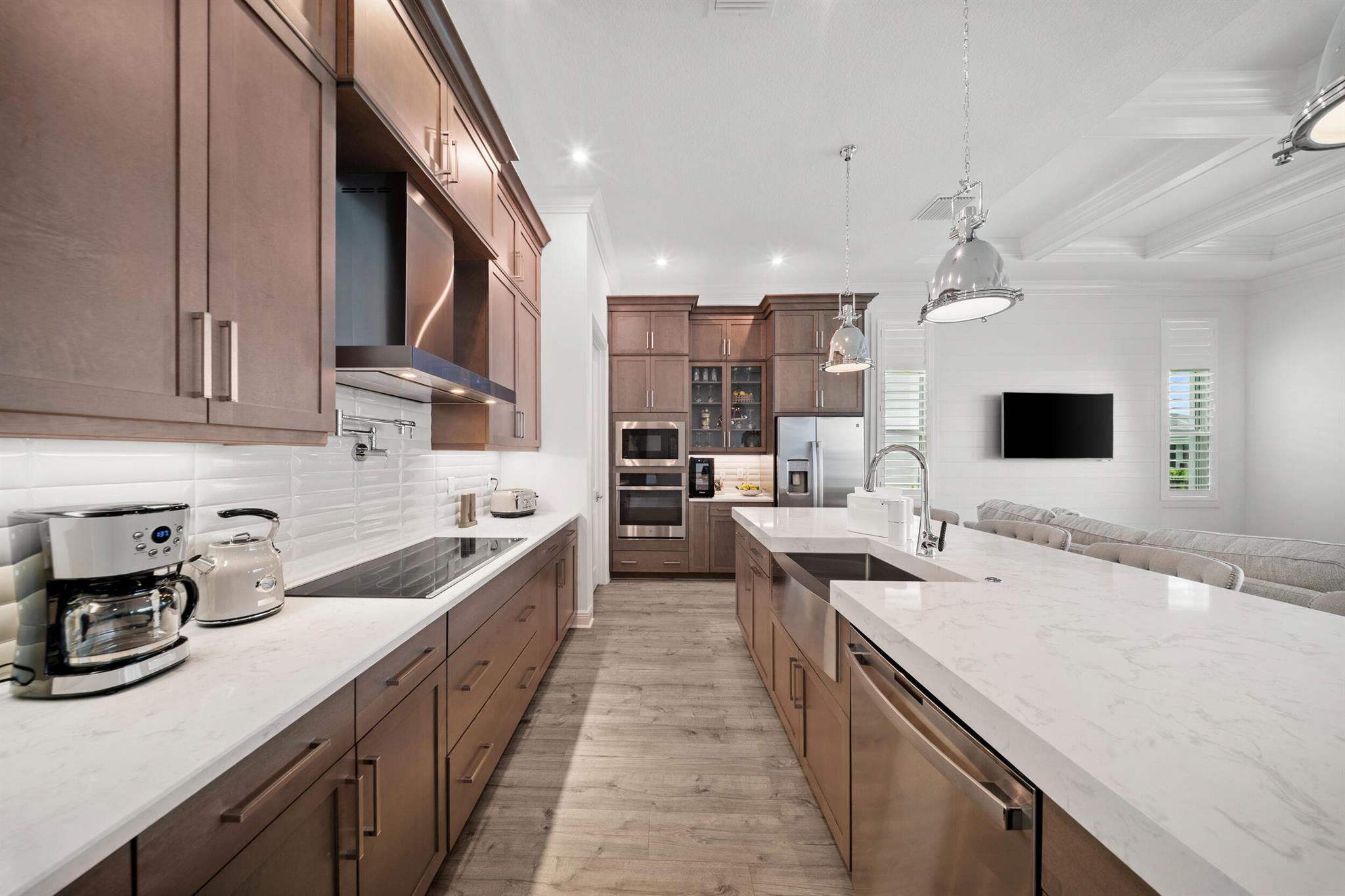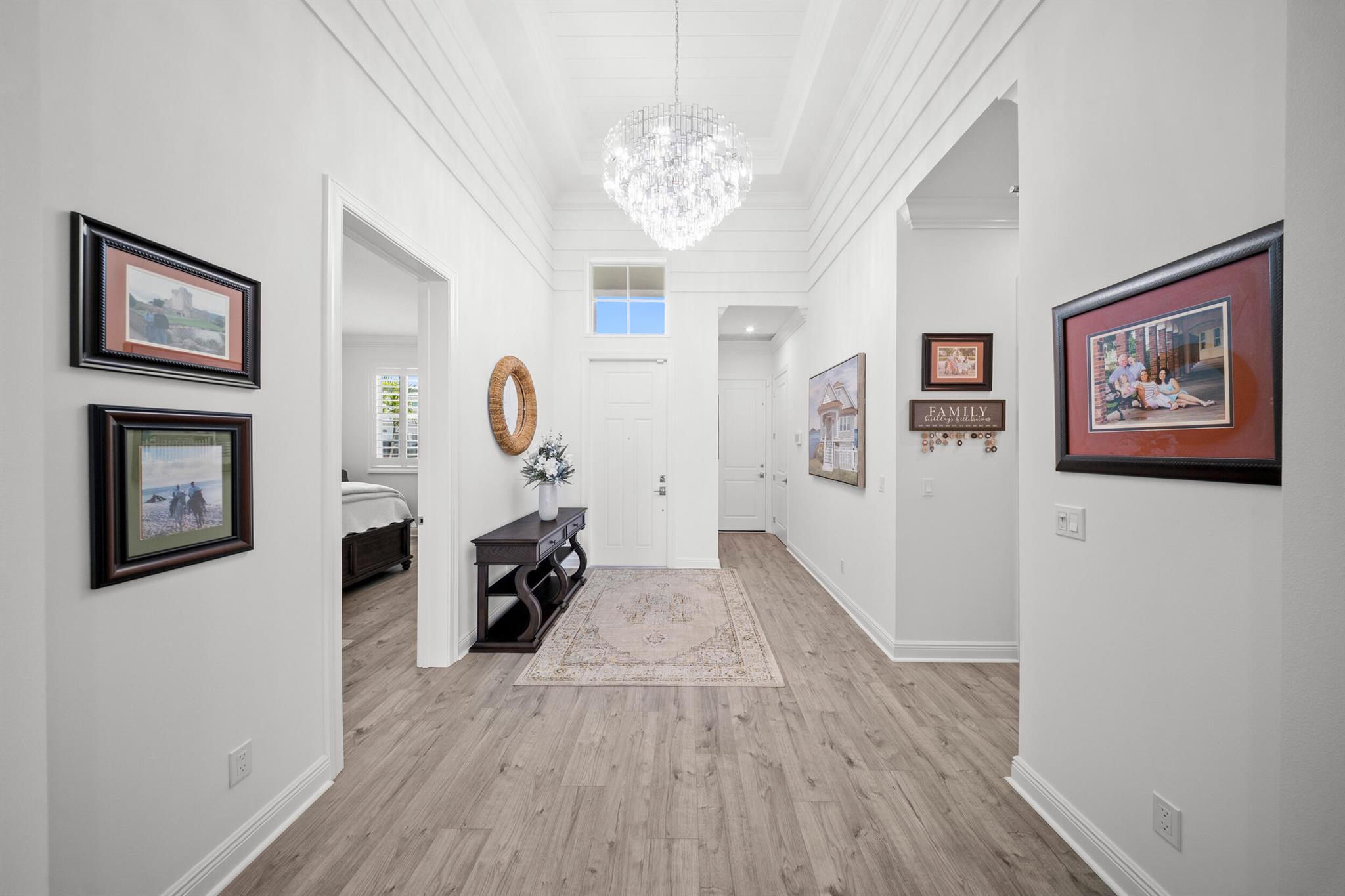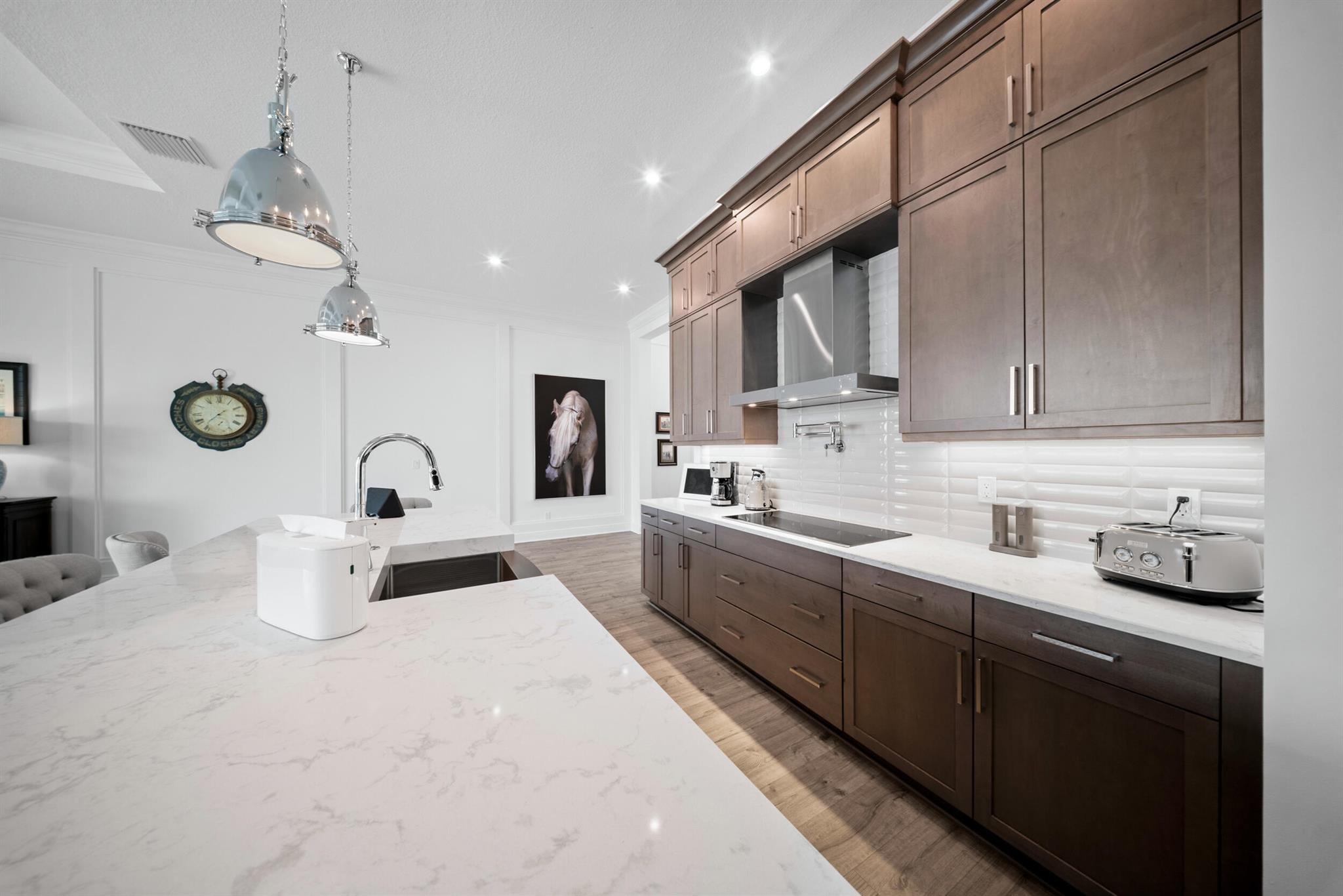 Designed for comfort and relaxation, this young home keeps stress at bay. With over $100K in upgrades, lakeview sunsets, sunshelf pool w/waterfalls and dual master suites, calm is the mood of every day. A neutral color pallette topped off with soaring coffered ceilings, and complemented by 10'sliders leading to the pool. The kitchen is the gathering place with a 10ft, 3''thick quartz island, luxe cabinetry, and a gourmet appliance package. A grand owners suite/spa like bath with TV and expanded walk in closet. A second private suite and guest room give everyone space to enjoy. Golf cart access to PGA Golf Club(memberships avail).Club Talavera, 27 pickleball courts, indoor lap pool and more will keep you fit and social. Located near restaurants, shops. 45 min to West Palm, 2hr to Orlando.