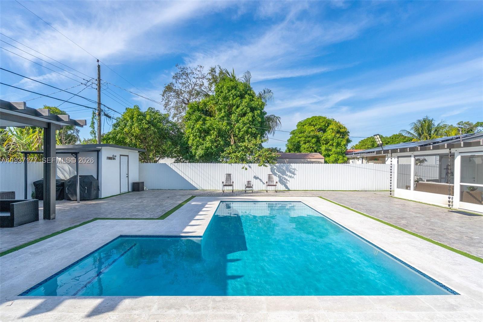 Rare to find this completely remodeled 3 bedrooms, 3 bath in the highly sought neighborhood close to Hialeah. House offers a modern yet cozy Miami life style, Stainless steel appliances, quartz countertops, ceramic floors, impact doors and windows, 5 years old roof, 1 year old A/C, remote control aluminum fence all-around, Beautiful salty water pool, all done with City permits. Enclosed terrace overlooking the spacious pool area for entertainment and family gatherings. Look no more, Welcome to paradise.