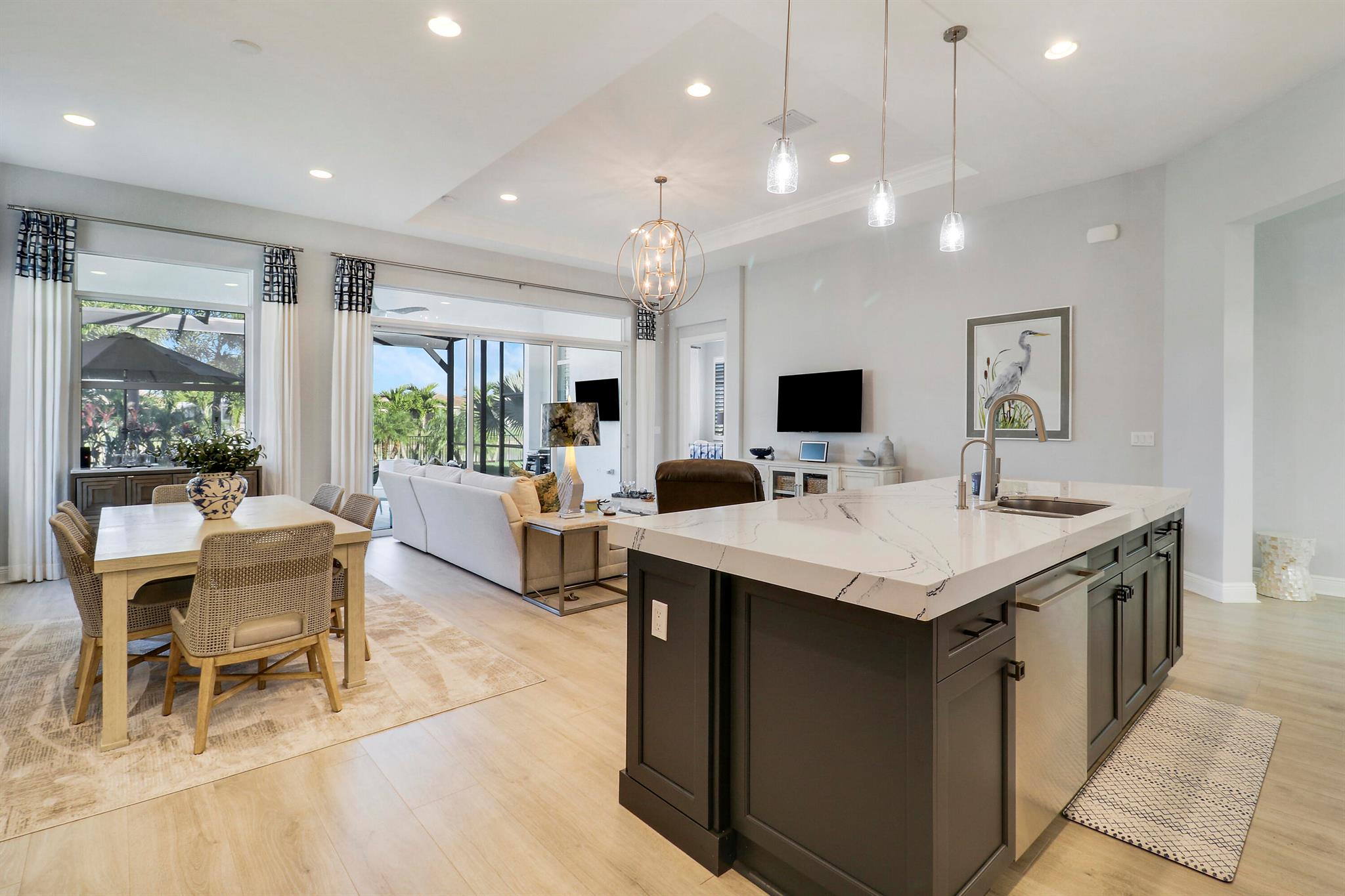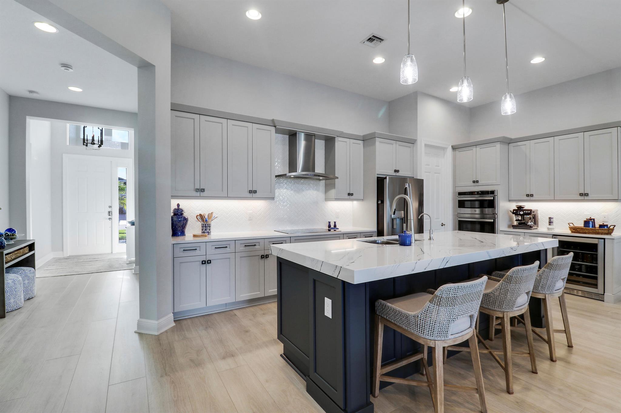 EVER POPULAR LAGO PLAN ON A LAKEFRONT LOT IN THE 55+ COMMUNITY OF CRESSWIND AT VERANO! This 3BR/2BA/2CG home built in 2022 has elegant and sophisticated finishes and is ready for its new owners to enjoy! Luxury plank flooring extends throughout the home and you will most definitely appreciate the attention to detail in this lakeside gem! The open great room is the heart of the home with a large kitchen featuring light grey cabinetry, quartz counters, oversized island w/ room for seating, pendant lighting, tile backsplash, walk-in pantry, upgraded SS appliances including 36'' induction cooktop, designer hood-fan, wall oven, convection microwave plus a beverage fridge! The living area has access out to an extended screened lanai complete with electric sunscreen & prime views over the lake!