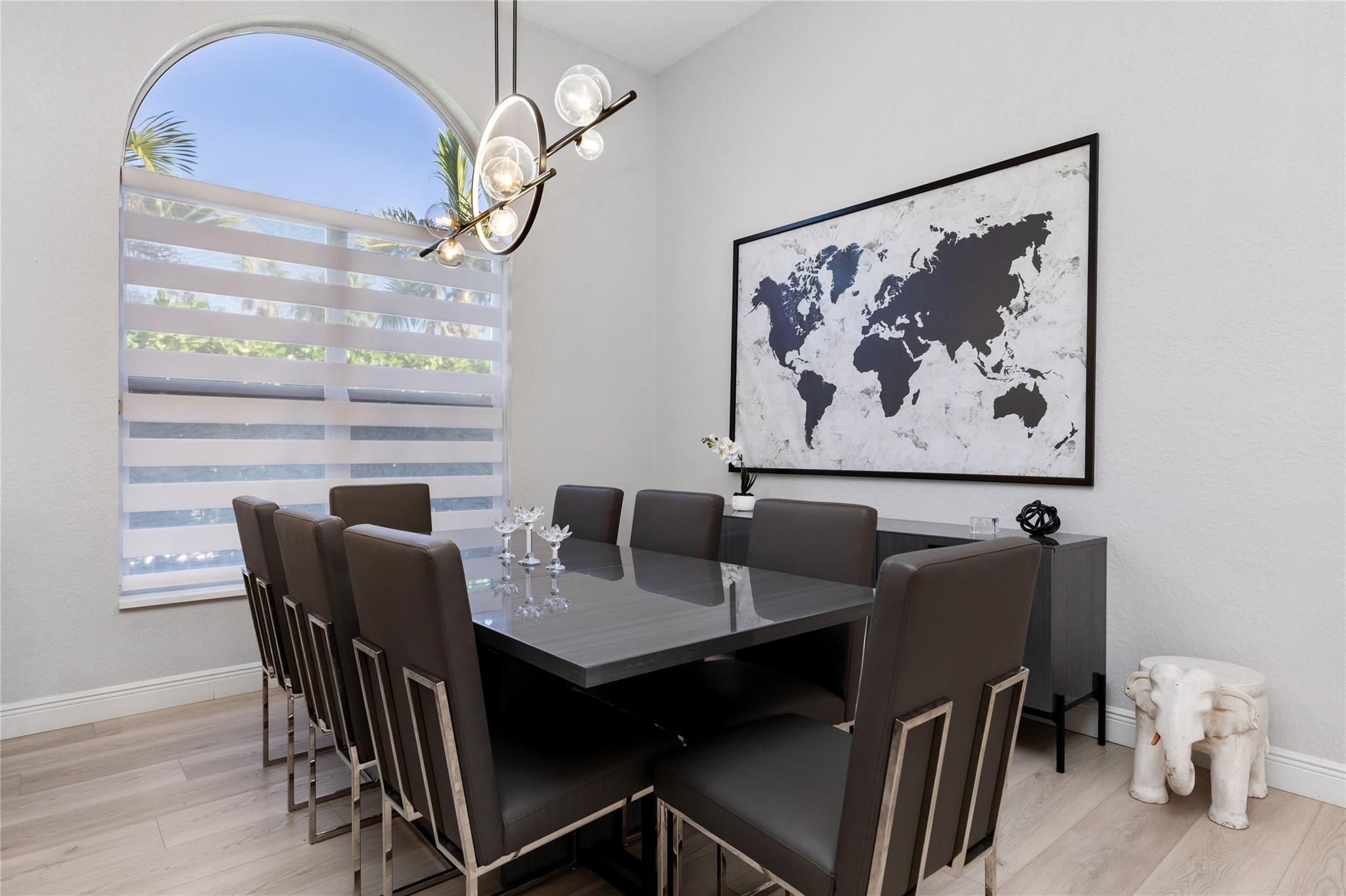 It’s your time to shine! This beautifully upgraded 4BR/2BA home features soaring ceilings and continuous luxury vinyl flooring throughout. The open floor plan highlights a stunning chef’s kitchen with custom cabinetry, waterfall quartz counters and stainless steel appliances. Enjoy upgraded lighting, a spacious primary suite and a desirable tri-split bedroom layout. New window treatments throughout, a brand-new 2025 roof, newer AC and fresh interior/exterior paint make this home move-in ready. Located directly across from the community pool and close to schools and shopping. WELCOME hOME !