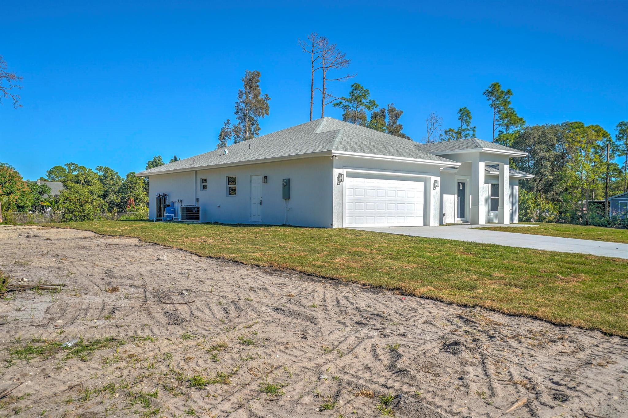 Stunning new construction in Loxahatchee offering 3,136 total square feet with 4 spacious bedrooms, 3 full bathrooms, and a two-car garage. Built with durable CBS concrete block construction, this modern home provides peace of mind with impact windows and doors throughout. A complete water filtration system is already installed for added convenience. Situated on a paved road, the property also features a paved driveway and a covered patio, perfect for outdoor relaxation and entertaining. Enjoy ample green space while being surrounded by the natural beauty and charm of Loxahatchee.