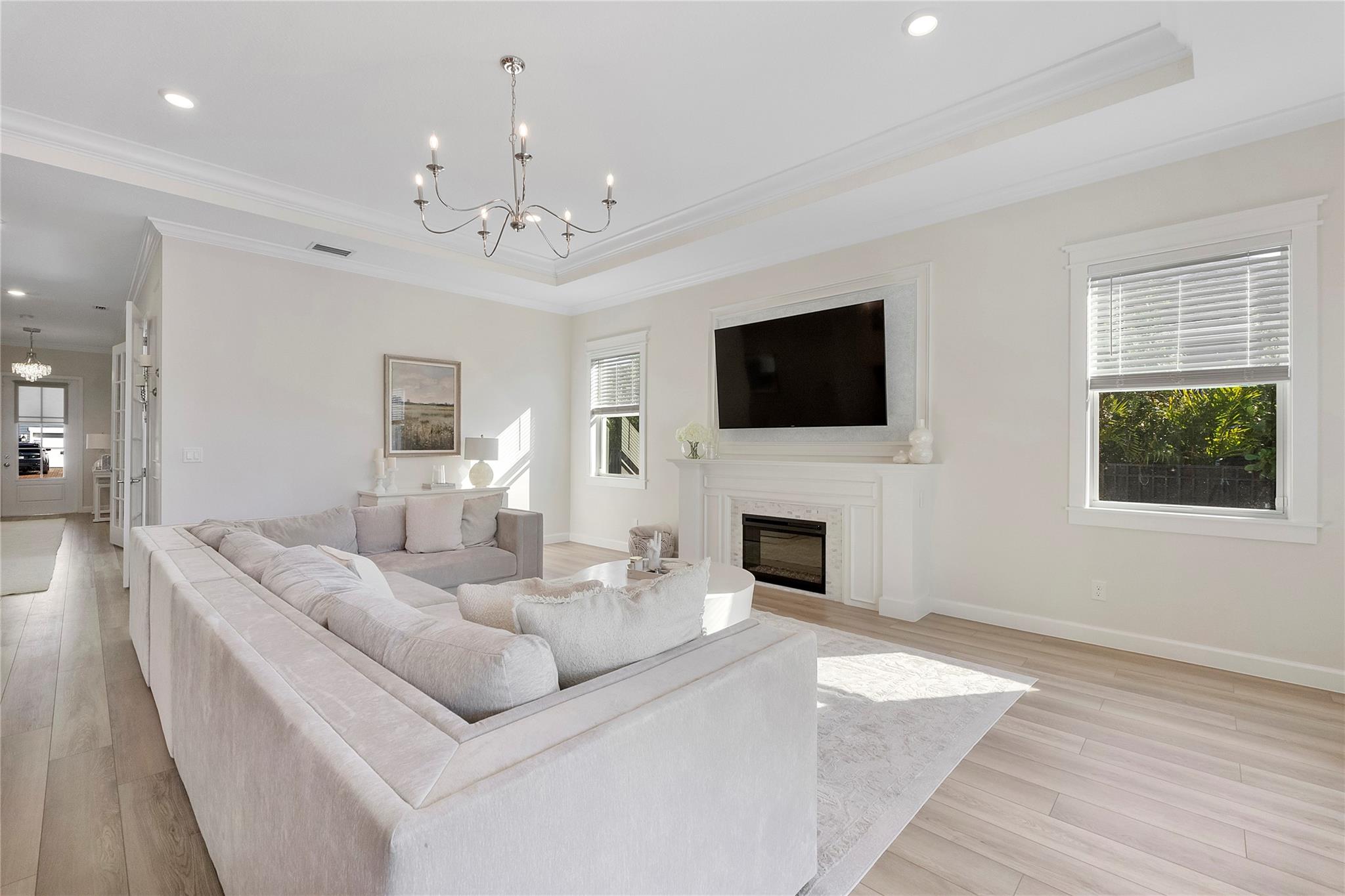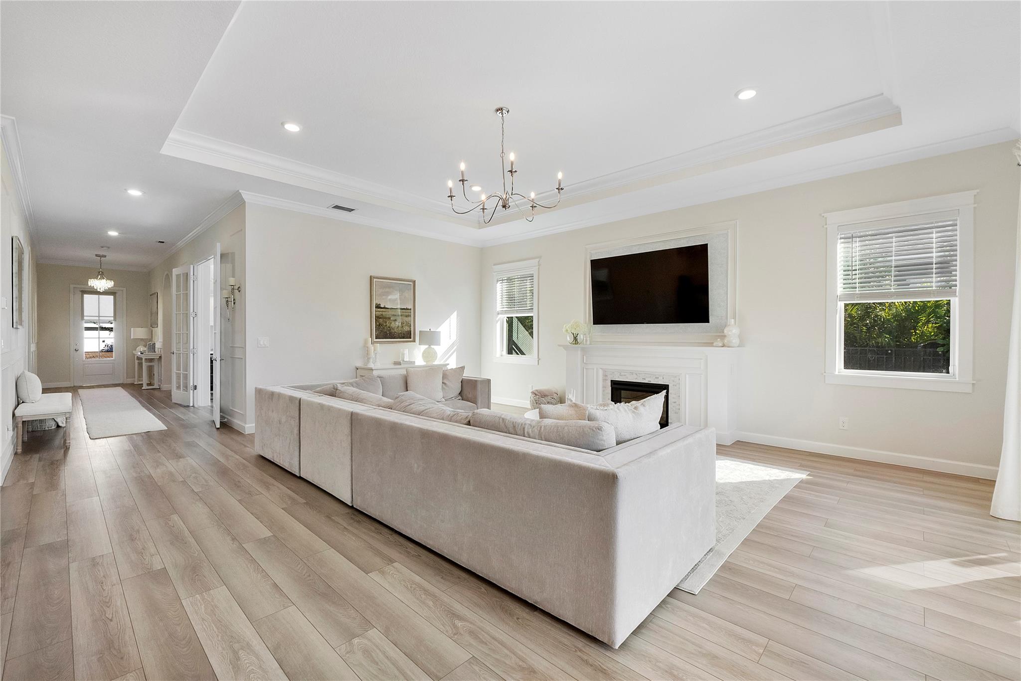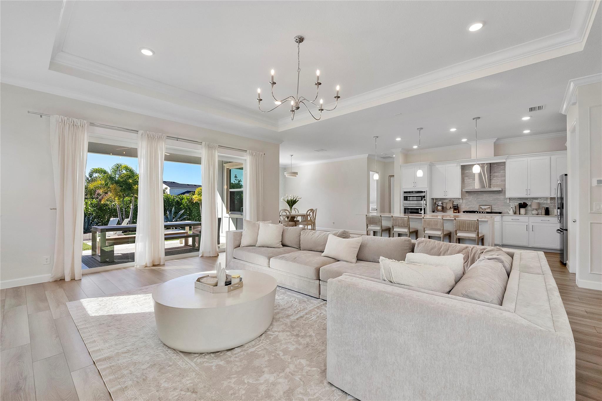 Desirable Arden community; an ideal home for raising a family while enjoying the best of the Florida lifestyle. This beautifully maintained one-story residence offers 3 bedrooms, 3 baths, and a 3-car garage, and shows like a model home. Neutral, modern, warm, and inviting color palette throughout. Loaded with options and upgrades including upgraded flooring, crown molding throughout, decorative applied moldings, built-ins, and a living room fireplace with mantel. The kitchen features a custom pantry, large island, & stainless steel appliances. Enjoy indoor-outdoor living with retractable screens, outdoor kitchen, upgraded landscaping, gutters, outdoor lighting, & city water for irrigation. Arden offers extensive resort-style amenities with an affordable HOA. Square footage is approximate.