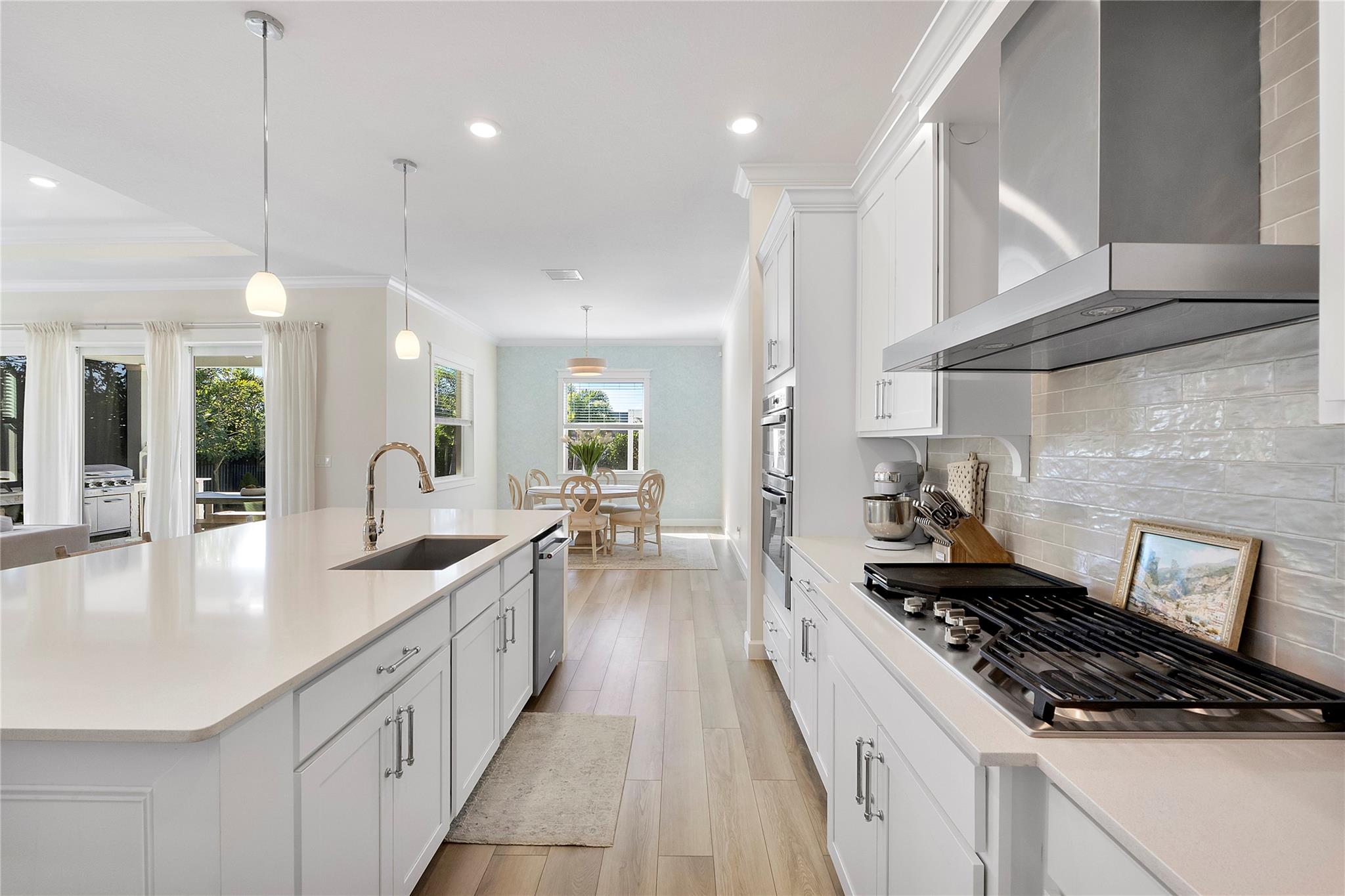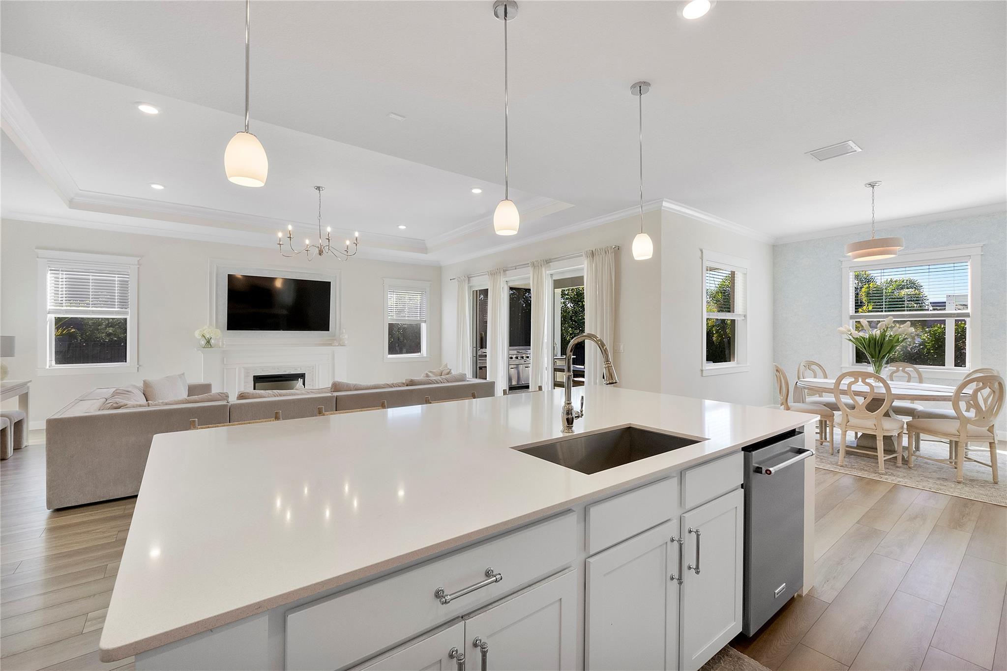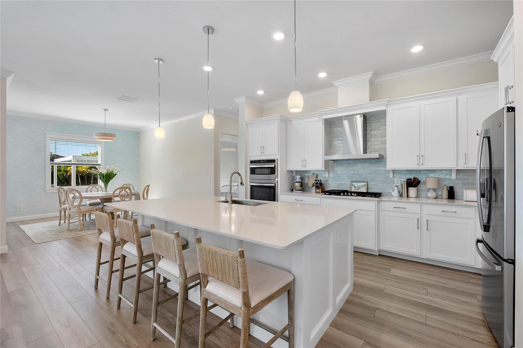 Desirable Arden community; an ideal home for raising a family while enjoying the best of the Florida lifestyle. This beautifully maintained one-story residence offers 3 bedrooms, 3 baths, and a 3-car garage, and shows like a model home. Neutral, modern, warm, and inviting color palette throughout. Loaded with options and upgrades including upgraded flooring, crown molding throughout, decorative applied moldings, built-ins, and a living room fireplace with mantel. The kitchen features a custom pantry, large island, & stainless steel appliances. Enjoy indoor-outdoor living with retractable screens, outdoor kitchen, upgraded landscaping, gutters, outdoor lighting, & city water for irrigation. Arden offers extensive resort-style amenities with an affordable HOA. Square footage is approximate.