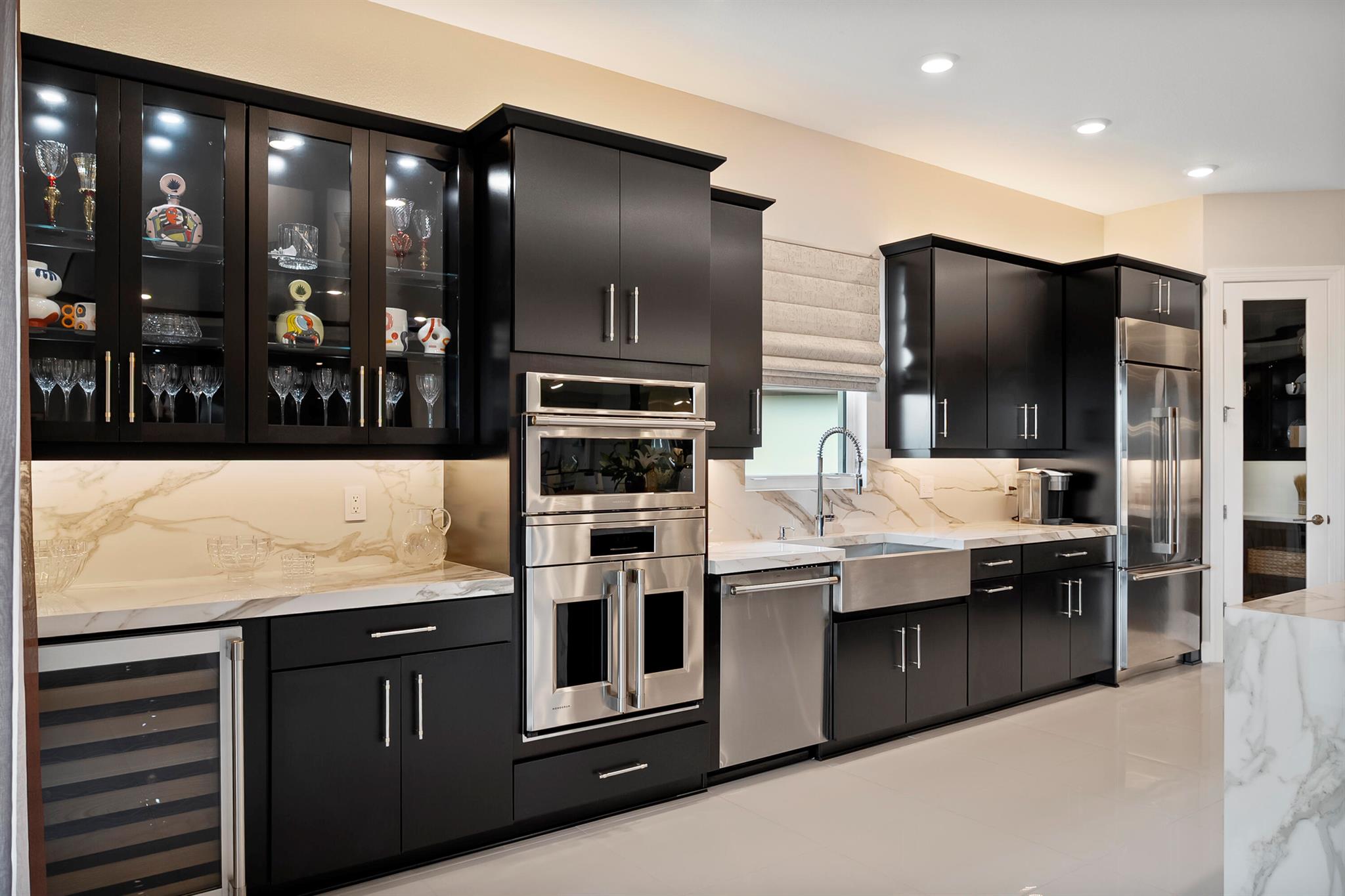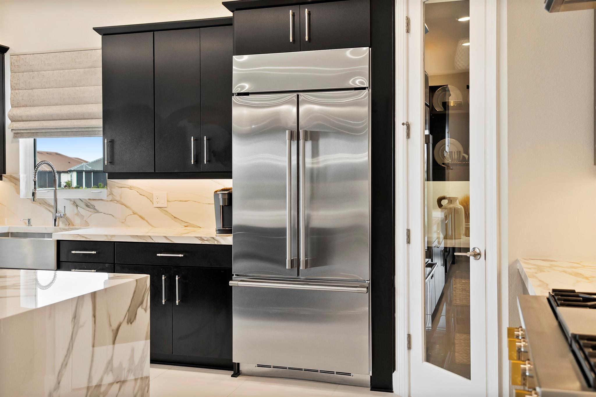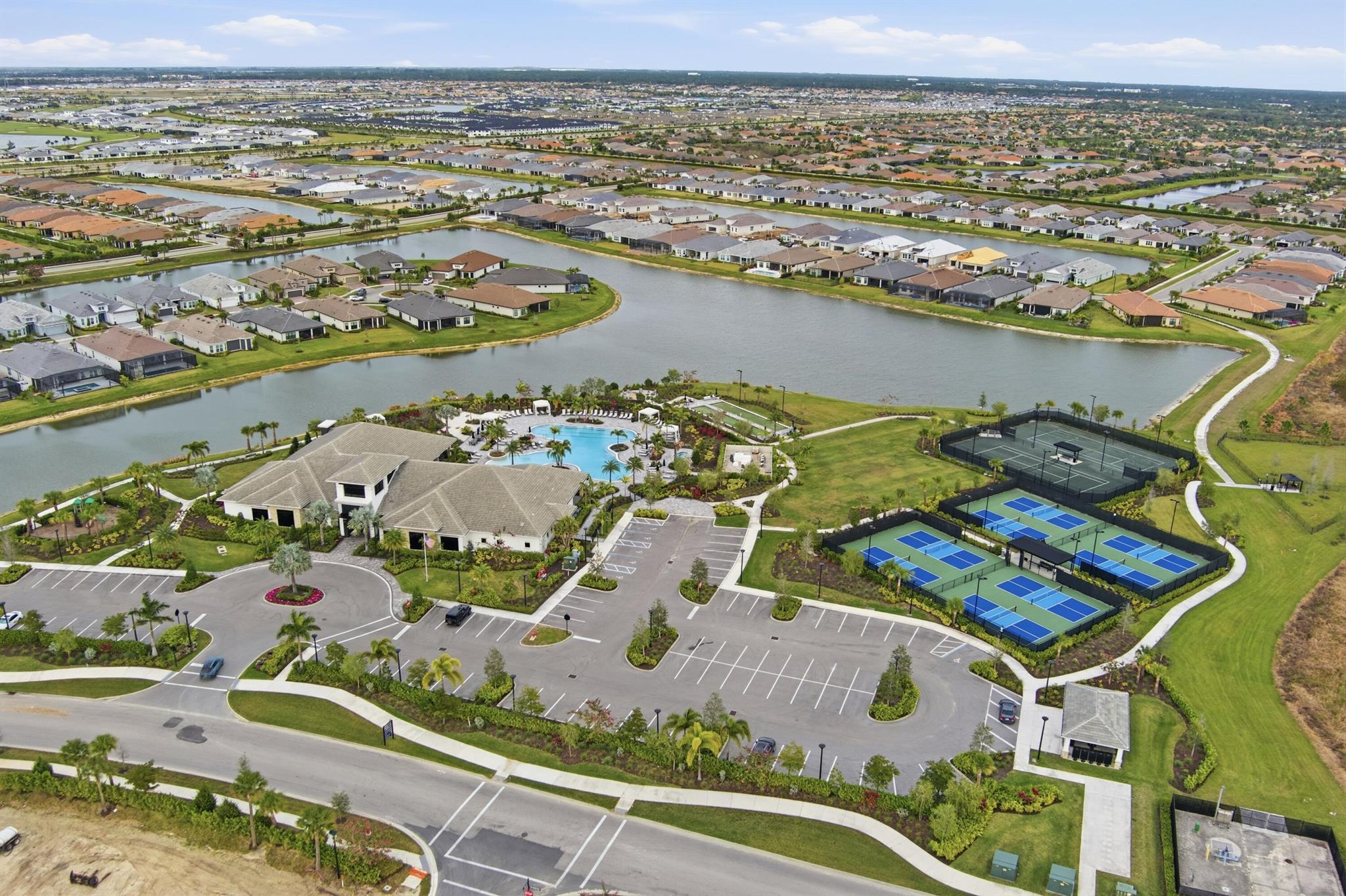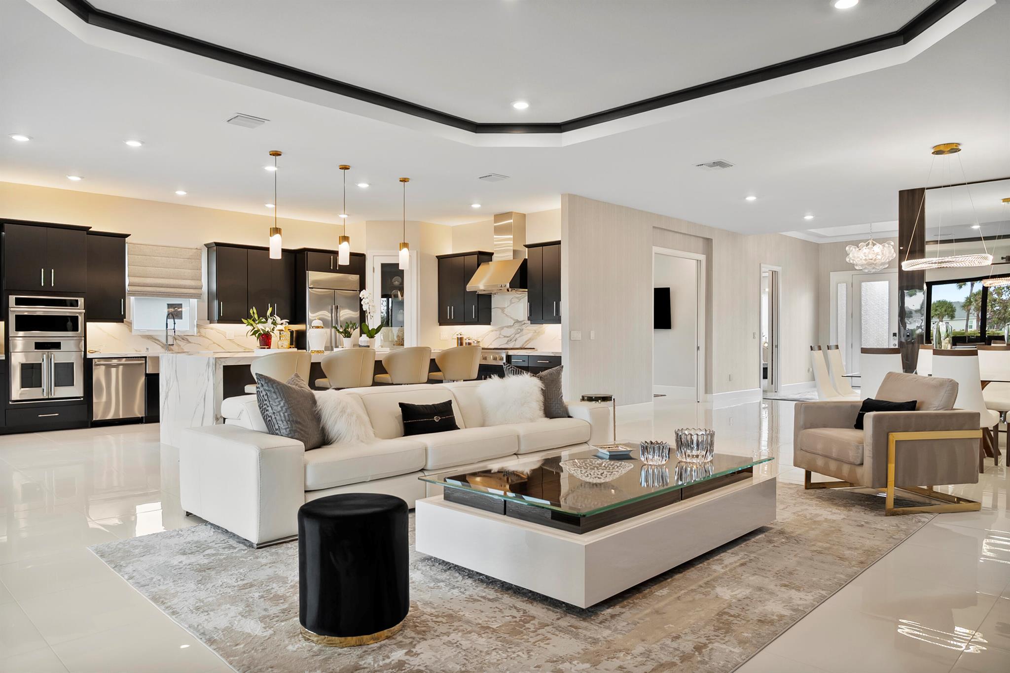 This Pallazio floor plan features extensive post-construction upgrades that go far beyond builder offerings. Offering 3 bedrooms, 3 bathrooms, plus a study/flex space, this exceptional home is situated on a quiet cul-de-sac on an oversized .36-acre pie-shaped lot that widens at the rear and overlooks a serene lake. Structural enhancements include an extended covered lanai, extended gourmet kitchen, outdoor kitchen gas and plumbing rough-ins, and extended bay windows in the primary suite. All impact windows and doors, paired with a brand-new barrel tile roof (2023), provide peace of mind and contribute to lower homeowners insurance rates. Inside, oversized porcelain tile flooring throughout (no carpet) creates a light, airy, and cohesive aesthetic. Professionally designed interiors take