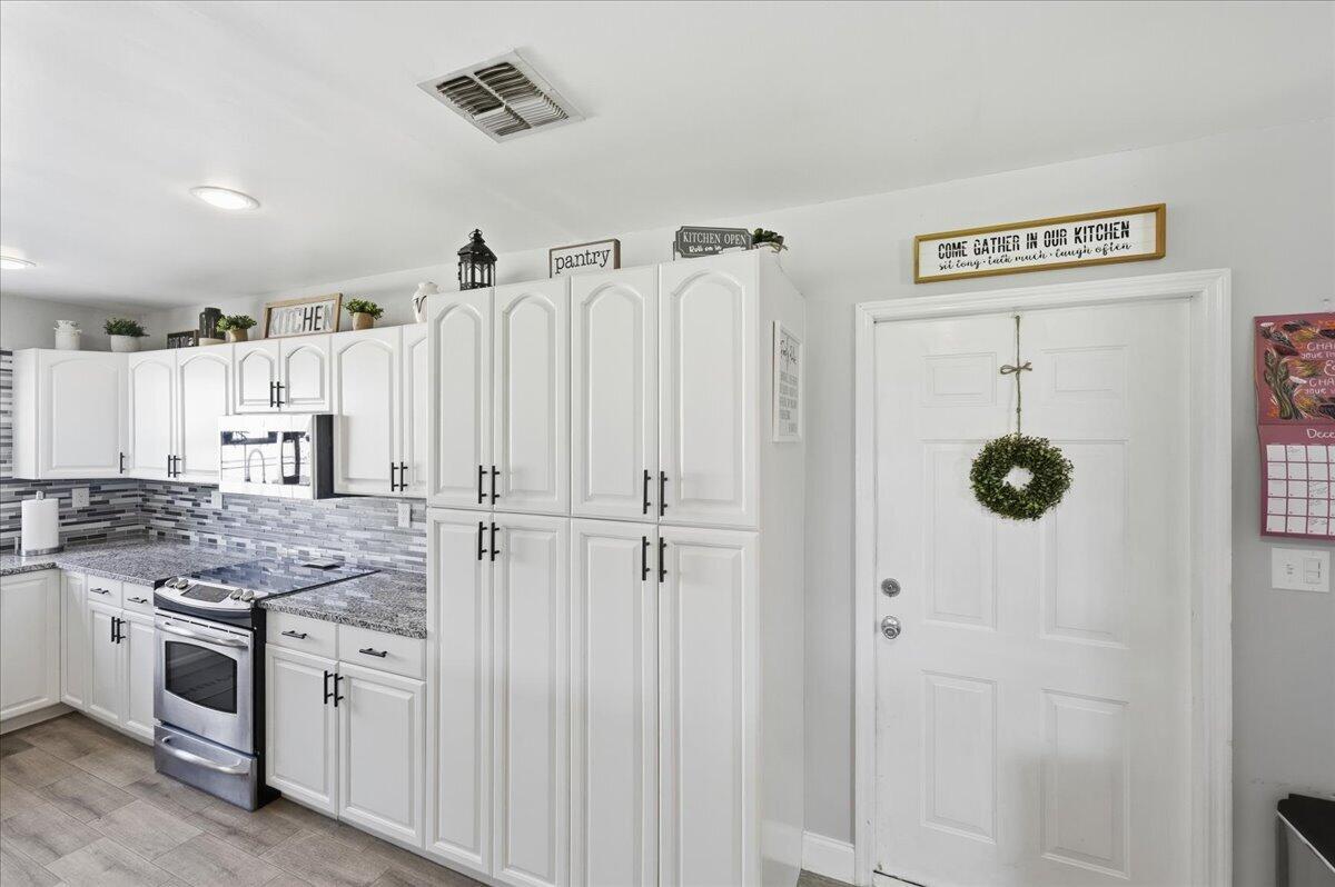 Check out this 3 BED, 2 BATH home with a huge den in Port St. Lucie! Spacious granite kitchen with buffet counter, tile backsplash, deep stainless steel sink, large pantry, brand-new refrigerator and microwave. Wood-look tile and knockdown ceilings throughout. Key West-style den under A/C with a beautiful open-beam ceiling. Fully fenced backyard with gated access. New impact sliders! A/C 2021, water heater 2022. Brand new Hardie siding, soffits, fascia, and trim. New exterior lighting and paint. City water and sewer, with hookup fees paid off. Spacious master bedroom. Master bath with granite vanities, shelving, and rain shower. Plenty of storage and closet space. FPL fiber. Offering 1,902 sq ft of living space (tax rolls incorrect). Schedule your private tour today!