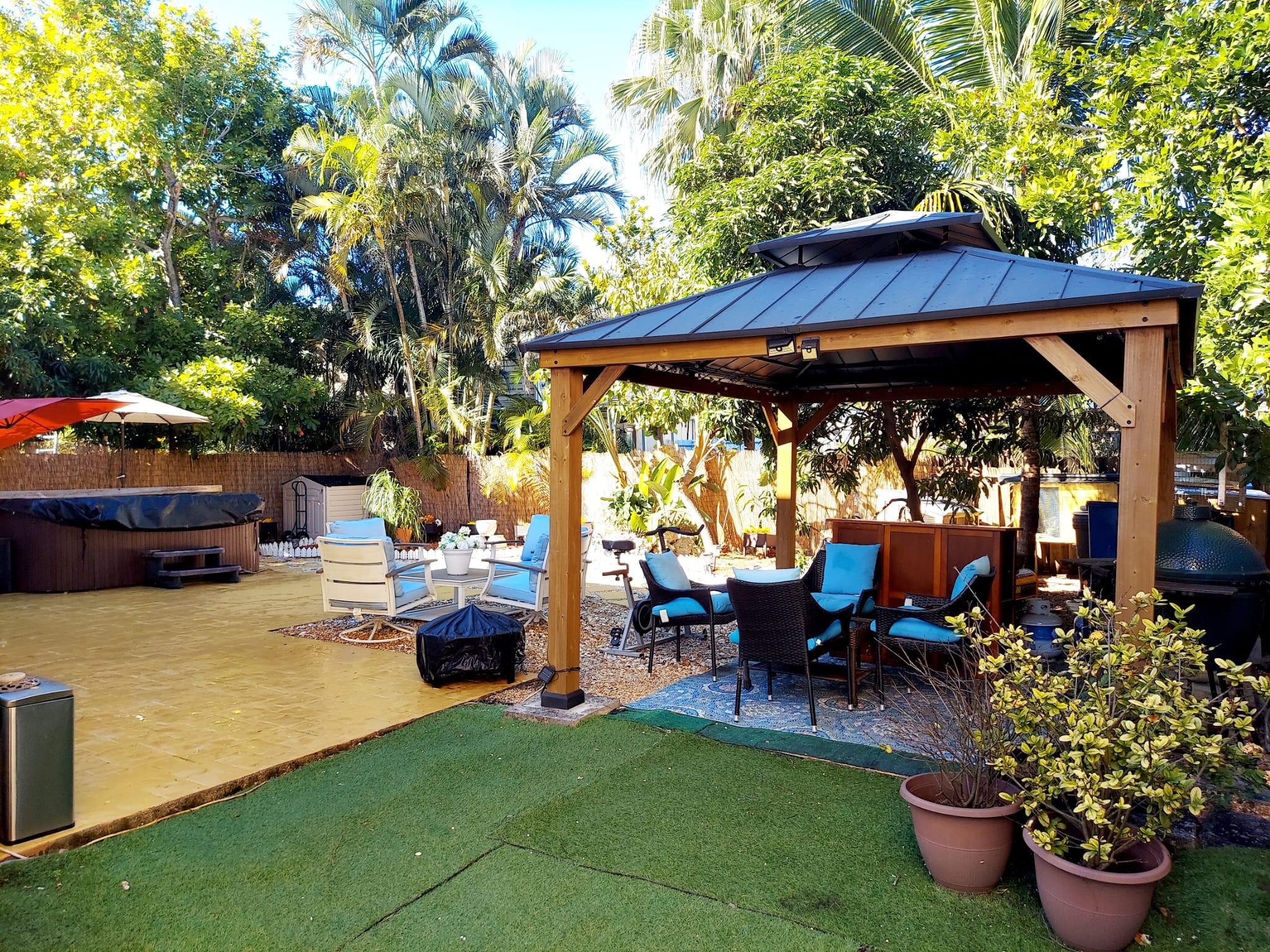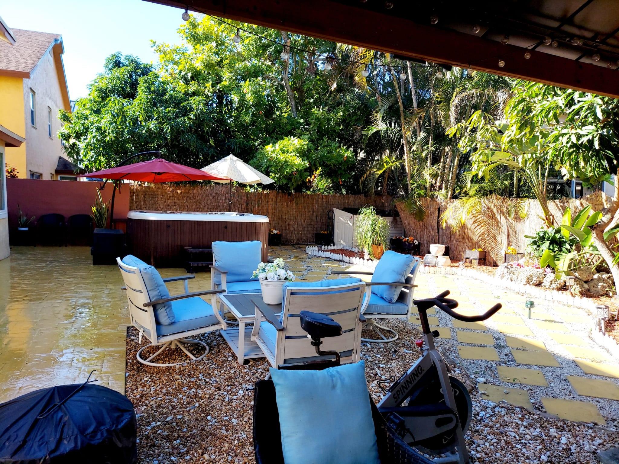 MOVE-IN READY South Florida gem! This STUNNING 4-bedroom, 2.5-bath single-family home with a 2-car garage has been meticulously maintained and is ready for immediate enjoyment. Highlights include A BRAND NEW ROOF (2025), hurricane impact windows (2021), an UPDATED kitchen with PANTRY & wine rack NEW AC (2024) and new water heater (2024). All bathrooms have been tastefully updated. Ceramic tile flows through the first floor and stairs, with modern laminate flooring upstairs. One bedroom is converted into a dream dressing room w/CUSTOM CALIFORNIA CLOSETS. Enjoy an AMAZING TROPICAL BACKYARD with FRUIT TREES, GAZEBO, SHED, and a NEW 9-PERSON SPA perfect for entertaining or relaxing. Seller is offering a $3,500 BUYER CREDIT FOR exterior PAINTING. LOW HOA FEE—ONLY $520 ANNUALLY! A must-see home!