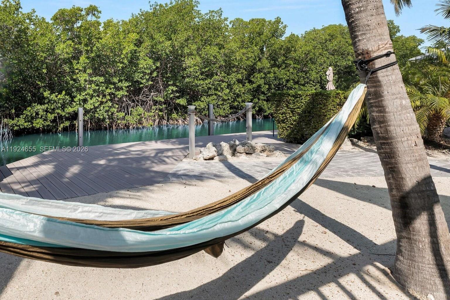 Just four homes from open water, this elevated Keys retreat offers instant Gulf access and an exceptional waterfront setting. Enjoy 100 ft. of private water frontage with no neighbors across the canal (undevelopable, buyer to verify), a 70 ft. composite dock and a tiki hut at the water's edge—with a boat basin at the end of the canal allowing easy turn-around for boats up to 40 ft. (current owner has navigated it comfortably). The resort-style backyard features a heated/chilled concrete pool, elevated hot tub deck, firepit, lush landscaping and shaded patio spaces. Inside, soaring vaulted ceilings, an open layout and nearly wraparound porches create seamless indoor-outdoor living. Built to last with Hardie board siding, impact windows and a pull-through paver driveway with covered parking and garage—all tucked away on a quiet street, yet close to everything Marathon has to offer!