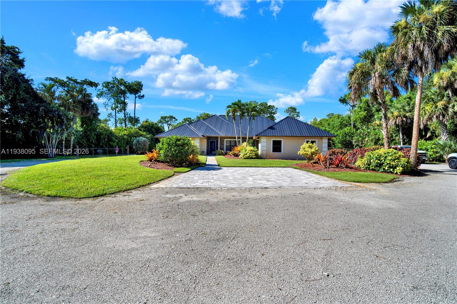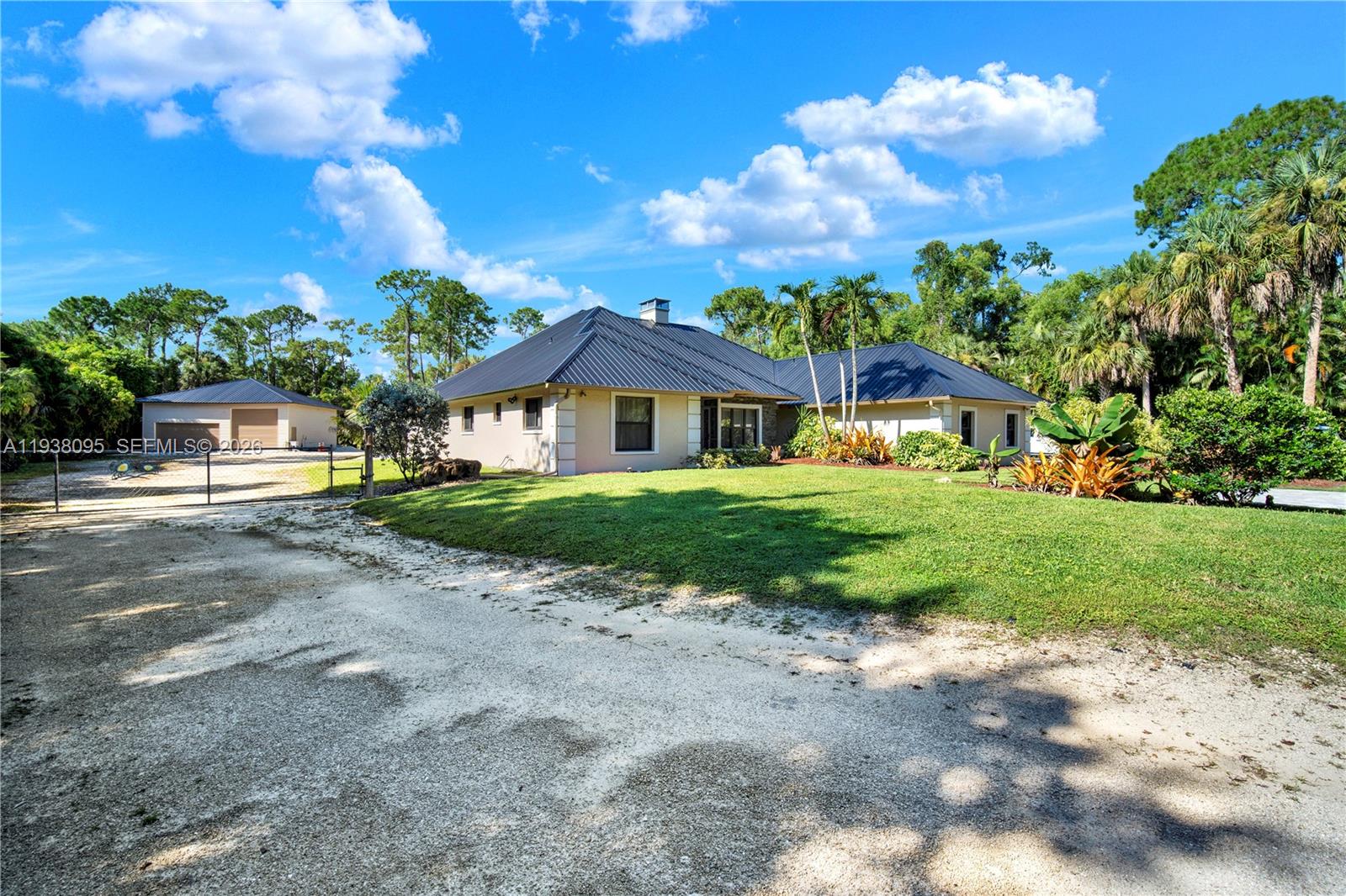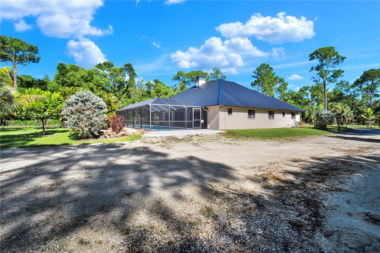 Experience the perfect blend of space, luxury, and location in this exceptional 2.73-acre Golden Gate Estates retreat. Tucked away in one of Naples’ most sought-after neighborhoods, 5980 Painted Leaf Lane offers a rare opportunity to own a fully upgraded estate just 2.5 miles from I-75 and minutes from the sugar-sand beaches and vibrant downtown. From the moment you arrive, you’ll be captivated by the professionally landscaped grounds with fruit trees, an 11-zone irrigation system for the nursery enthusiast and expansive areas to play, garden, or store your recreational toys. Inside, vaulted ceilings and refined finishes create an atmosphere of comfort and sophistication. The newly renovated kitchen and bathrooms, wood-slatted tray ceiling in the primary suite, fourth bedroom with convenient ensuite and impact windows and doors elevate both style and peace of mind. Every detail has been thoughtfully attended to: new metal roof(s), insulated home garage door and new workshop doors, a fully air-conditioned workshop, updated electrical and new full automatic transfer switch, RV electrical hook up, a rebult chimney, a new well pump, resurfaced pool, paver walkways and parking areas, and a new water heater. When it’s time to unwind, relax in your screened-in pool or retreat to the workshop for creative pursuits. Opportunities like this are rare in Naples and the sellers will review all offers. Schedule your private showing today before this one-of-a-kind property is gone.