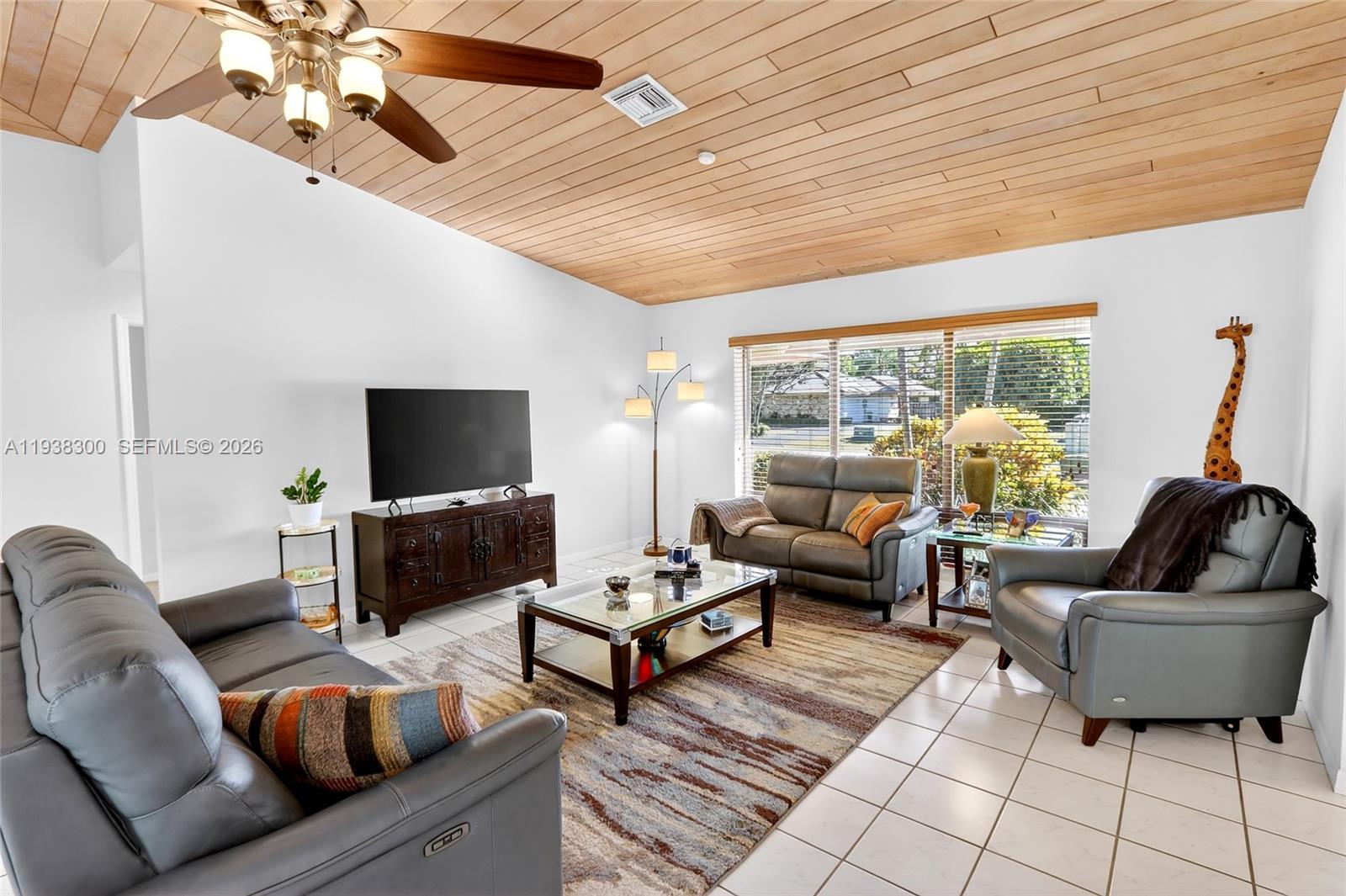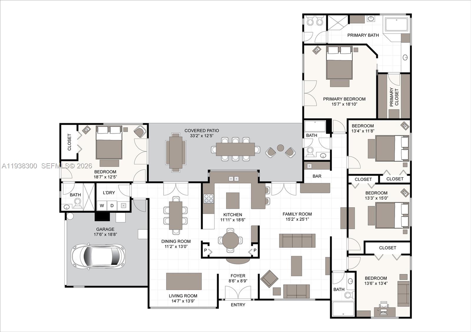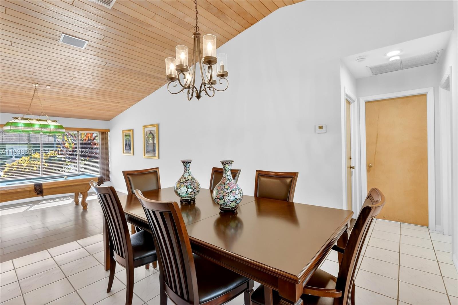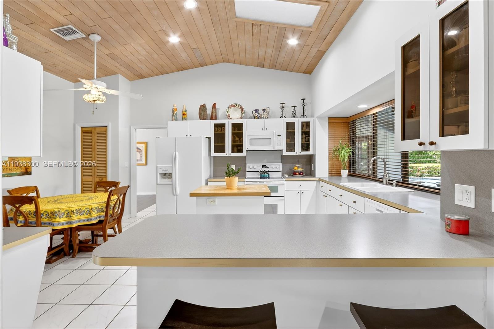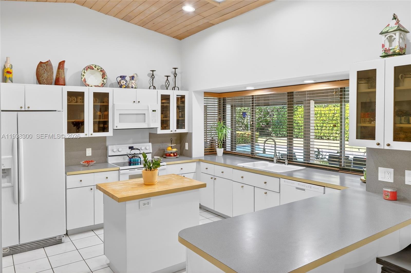 Located in a prime location of The Falls area, this immaculate five bedroom, four bath home is certain to appeal to young, growing, and established families. Highlighted by a gorgeous soaring wood ceiling, this lovely home boasts a spacious open-plan living area bathed in natural light. Open kitchen with breakfast nook features a panoramic view of the pool. Entertaining is easy with wet bar enhancing the indoor-outdoor flexibility. French doors add to the flowing layout. Fabulous covered outdoor space is perfect for gatherings. Dedicated laundry room, two-car garage, and accordion shutters all add to the home's comfortable amenities.