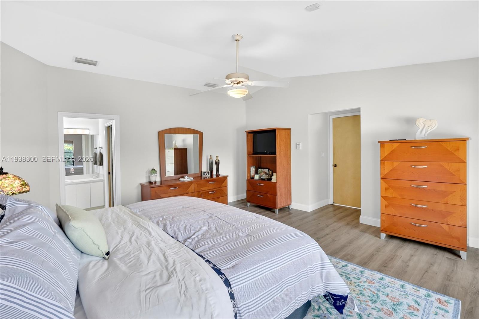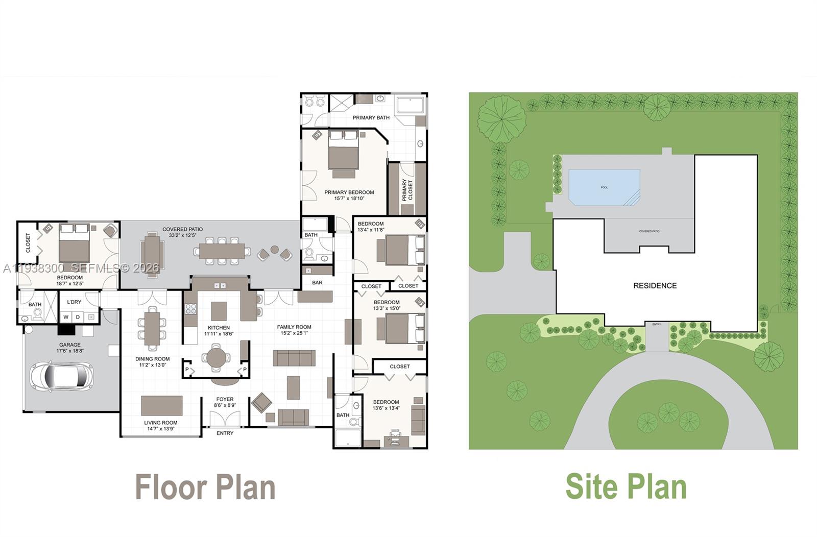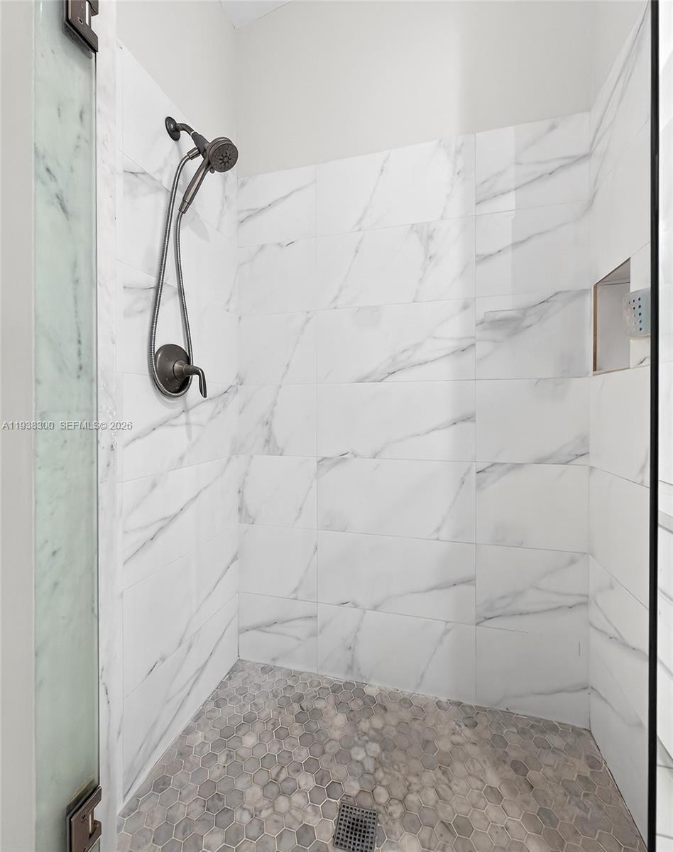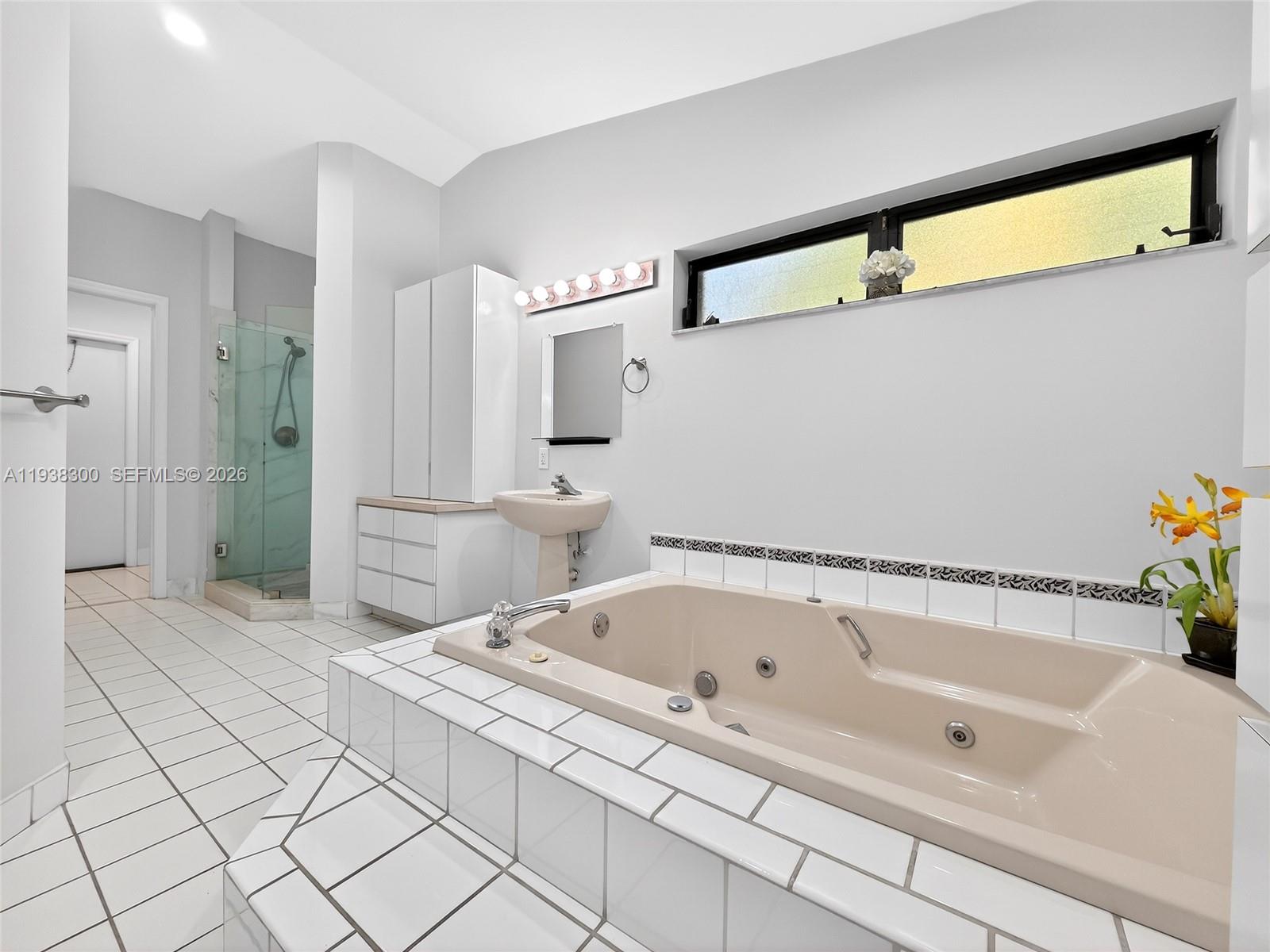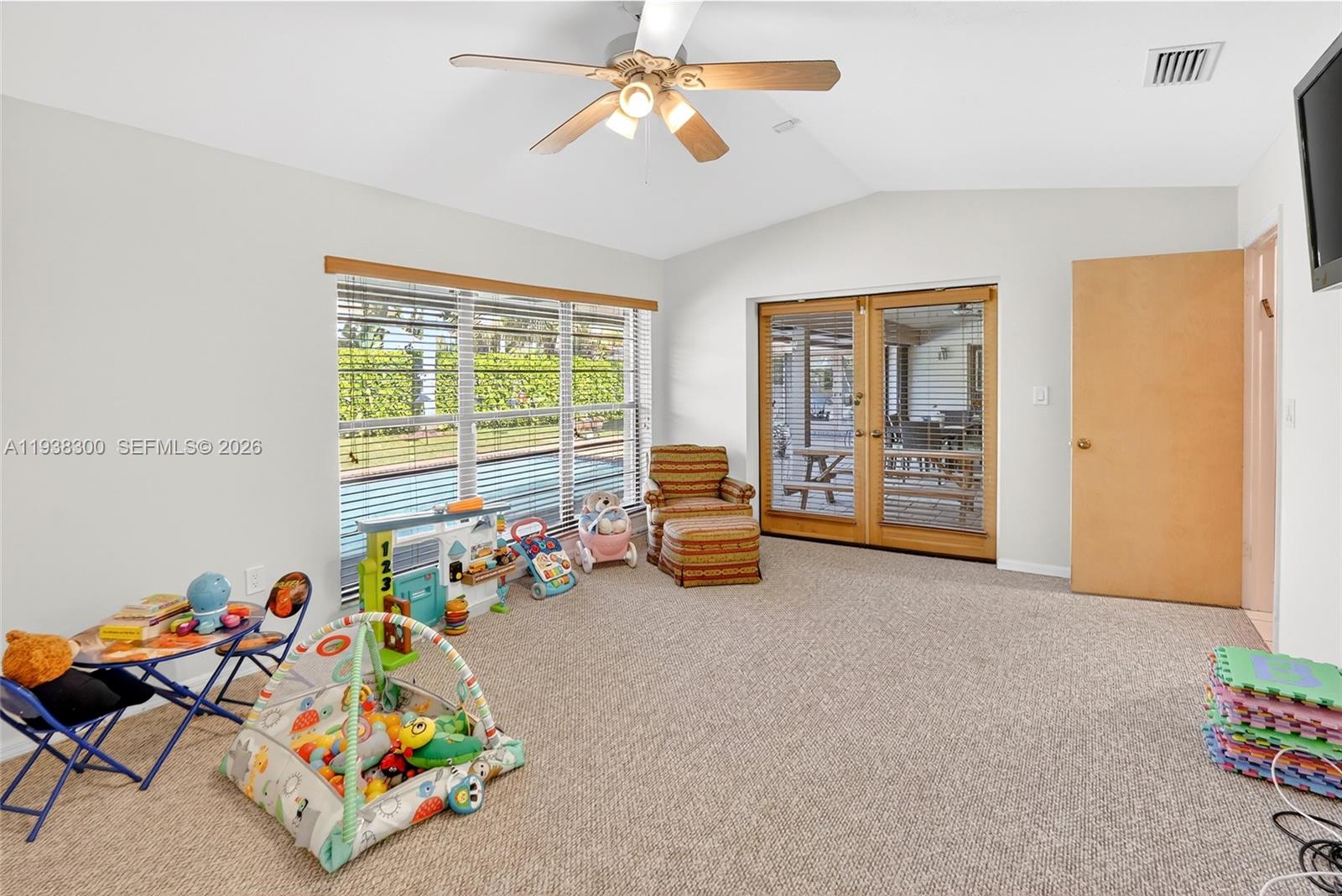 Located in a prime location of The Falls area, this immaculate five bedroom, four bath home is certain to appeal to young, growing, and established families. Highlighted by a gorgeous soaring wood ceiling, this lovely home boasts a spacious open-plan living area bathed in natural light. Open kitchen with breakfast nook features a panoramic view of the pool. Entertaining is easy with wet bar enhancing the indoor-outdoor flexibility. French doors add to the flowing layout. Fabulous covered outdoor space is perfect for gatherings. Dedicated laundry room, two-car garage, and accordion shutters all add to the home's comfortable amenities.