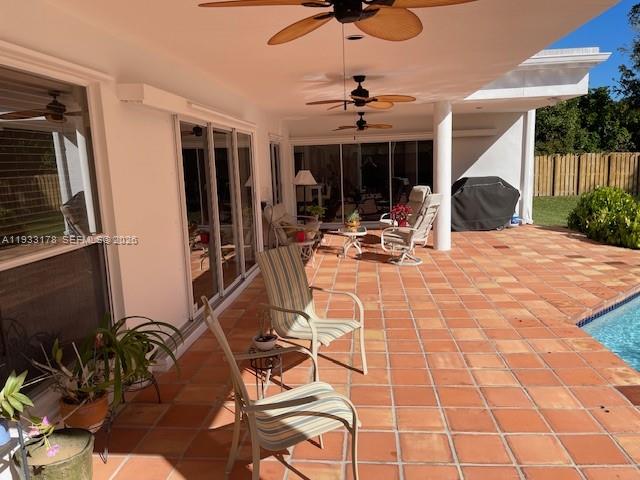 THIS HOME IS LOCATED ON A QUIET CUL-DE-SAC. FEATURES AN UPDATED GRANITE KITCHEN WITH STAINLESS STEEL APPLIANCES, A 10' GRANITE ISLAND. BRAND NEW WASHER AND DRYER, NEW POLYGLASS MEMBRANE ROOF, NEW LUXURY VINYL FLOORS IN THE BEDROOMS, TWO NEW AIR CONDITIONERS WITH SMART THERMOSTATS, NEW IMPACT FRONT DOOR. HOME FEATUTES PVC PLUMBING, GENERATOR READY WITH TRANSFER SWITCH. STACKING SLIDING DOORS LEAD TO A LARGE POOL PATIO OVERLOOKING SPACIOUS FENCED BACKYARD MAKING IT IDEAL FOR ENTERTAINING.