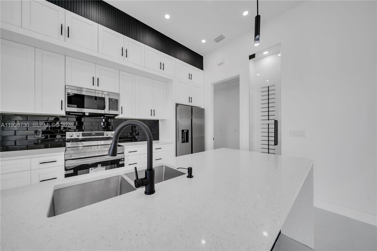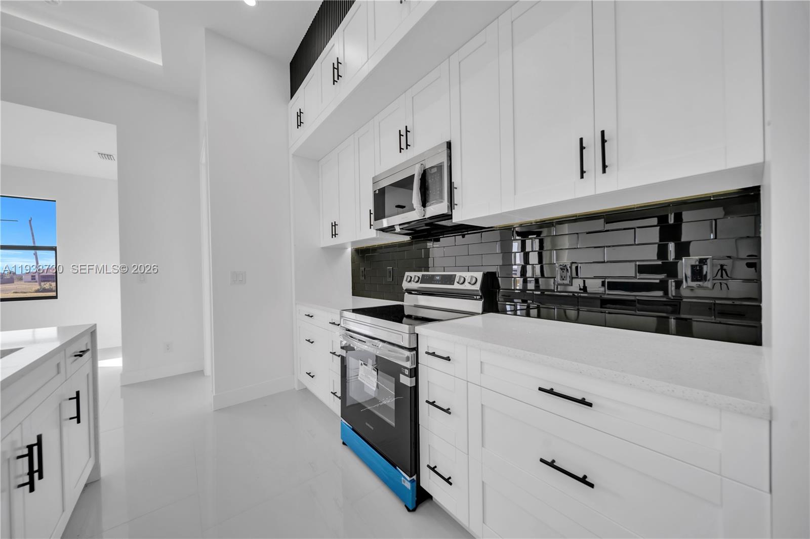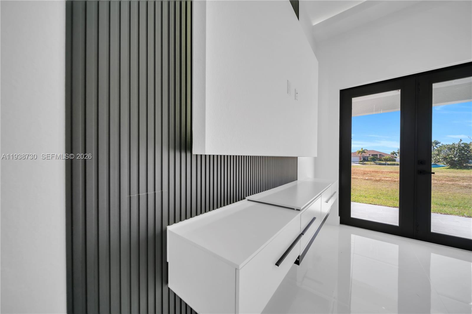 This exceptional new construction home in Cape Coral combines modern design with refined finishes. Boasting 9.4-foot ceilings and 8-foot impact-rated doors and windows, the home offers a bright, open layout with energy efficiency and storm protection. Porcelain tile floors run throughout, creating a seamless, elegant look, while the kitchen features a custom built-in wine display for both style and functionality. Outdoor living is enhanced with a fully equipped outdoor kitchen, perfect for entertaining. Additional highlights include city water, septic system, all assessments paid, no HOA, a two-car garage, and a generous 0.23-acre lot on a central street in one of Cape Coral’s fastest-growing areas.