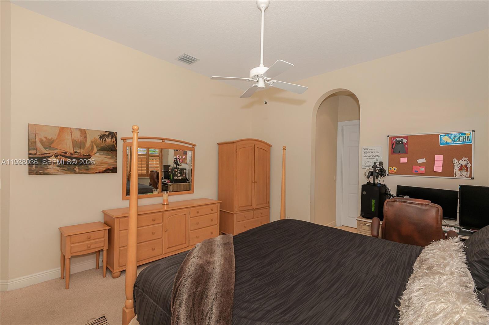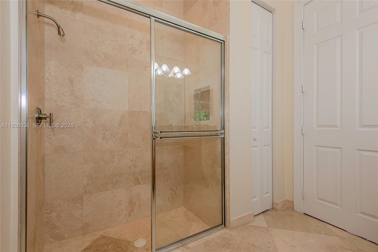 Your dream comes true in this stunning, luxurious one-story home located in the exclusive Enclave of the Grand Palms Golf Community. This sought-after Royale Model features a new roof (2024) and showcases elegance throughout with Navona marble floors, soaring ceilings with illuminated coffered accents, crown molding, and recessed lighting. Impact glass windows are complemented by custom plantation shutters. The spacious primary suite offers his-and-her walk-in closets. A fifth bedroom has been converted into a private theater room. Enjoy outdoor living at its finest with an oversized free form heated saltwater pool, covered patio, and outdoor kitchen, all overlooking breathtaking golf course views. FURNITURE NEGOTIABLE
