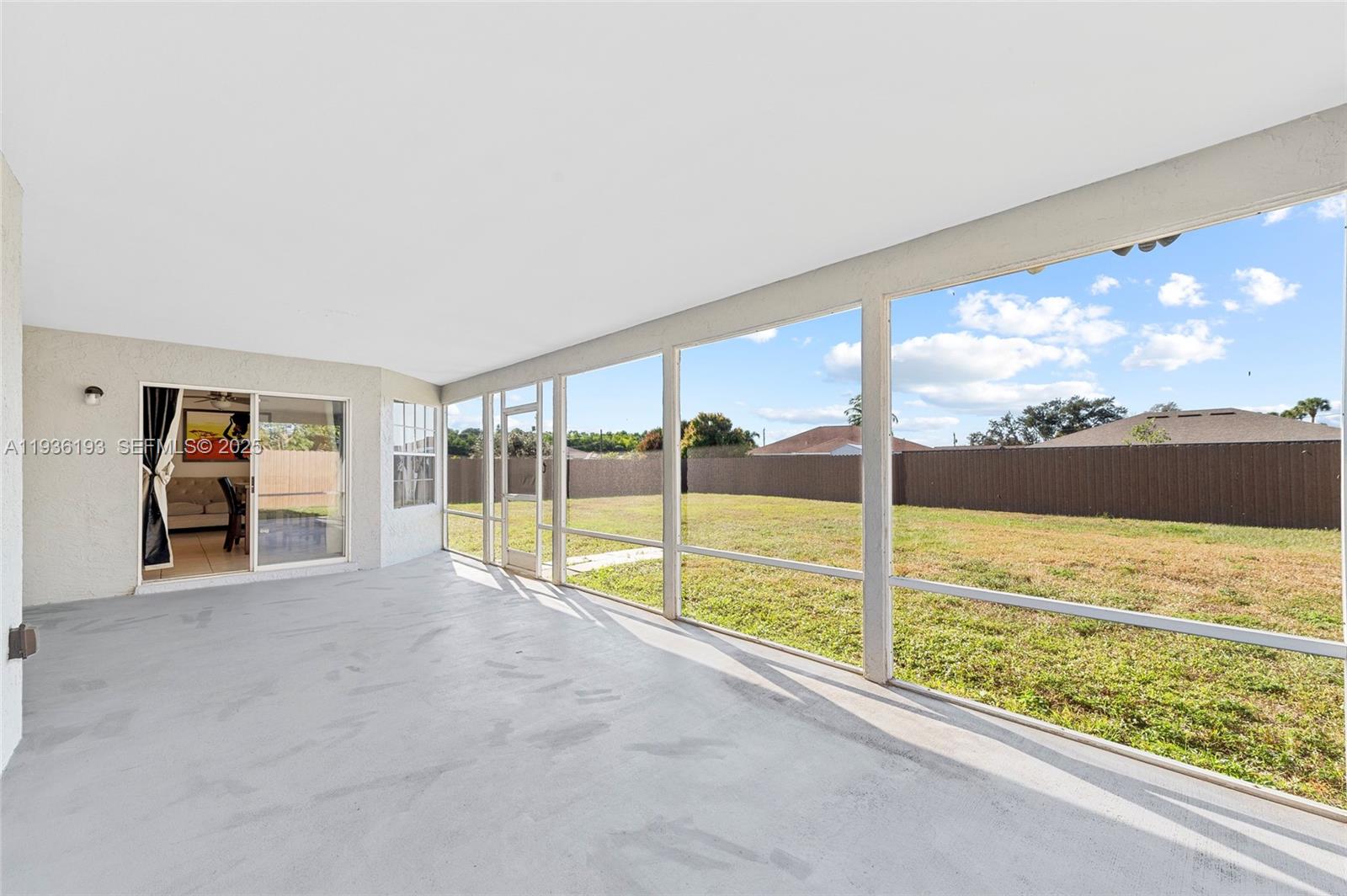 Welcome to this beautifully maintained 3-bedroom, 2-bath home located in the heart of Port St. Lucie. Offering approximately 1,900 square feet of living space, this single-story residence features a highly desirable split floor plan and an open-concept layout perfect for both everyday living and entertaining. The kitchen is a true centerpiece, showcasing rich cherry wood cabinetry, granite countertops, stainless steel appliances, a pantry, and an oversized island ideal for cooking, gathering, and hosting. Vaulted ceilings and tile flooring throughout enhance the home’s bright, airy feel. The spacious primary suite offers a private retreat complete with a large walk-in closet and a generous en-suite bathroom. Step outside to enjoy Florida living at its best with a screened-in patio overlooking a massive, fully fenced backyard - perfect for relaxing, pets, or future outdoor enhancements. Additional highlights include NO HOA, 2022 Roof, 2020 A/C, and 2022 water heater, providing peace of mind for years to come. Conveniently located just minutes from shopping, dining, schools, parks, and major highways. This home truly checks all the boxes - schedule your private showing today!