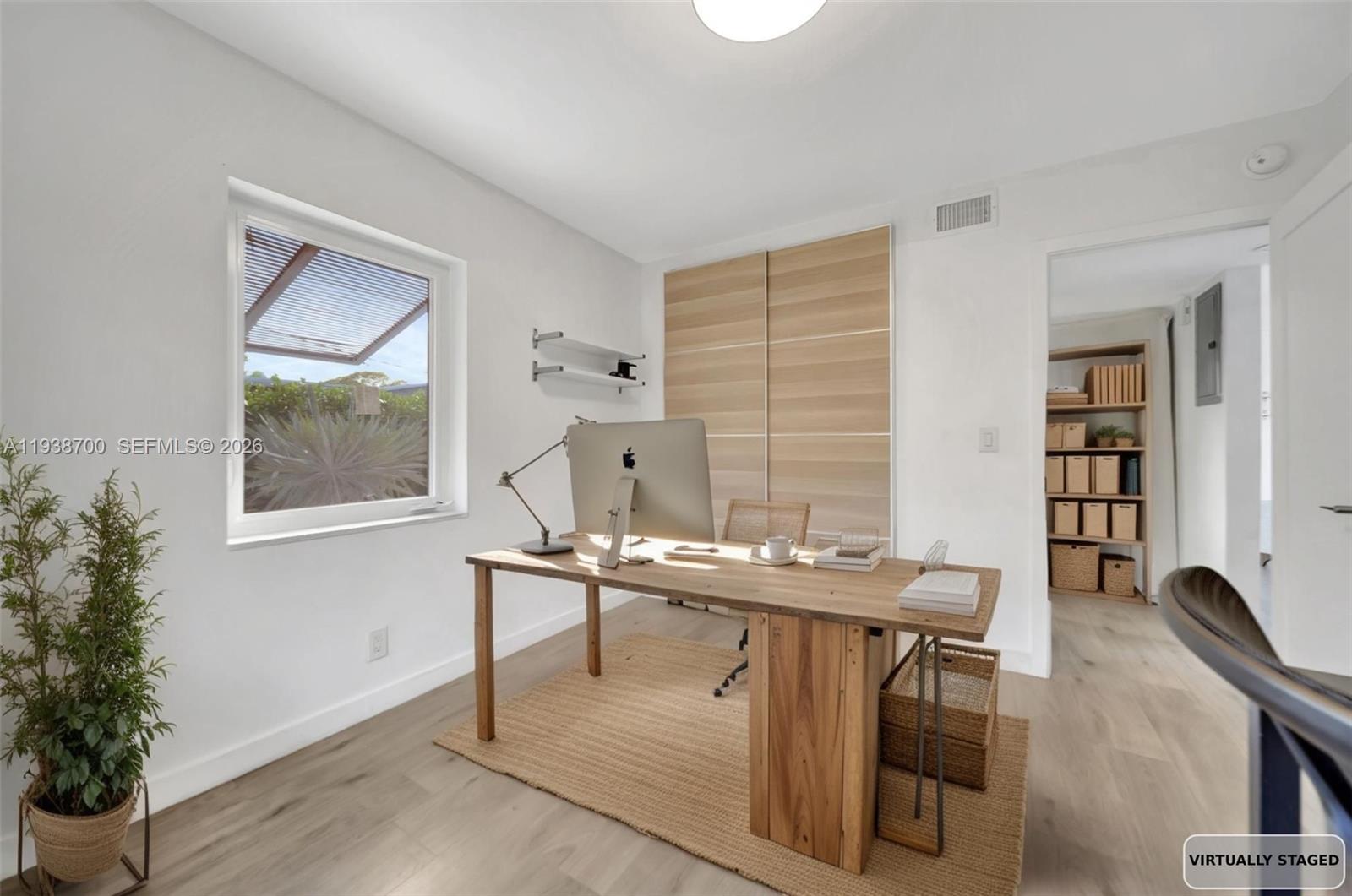 Ideally located minutes from the Intracoastal Waterway, this cozy 2BR/1BA home offers easy access to nearby marinas and public boat ramps. Located east of Federal Hwy and just 6 minutes to Pompano Beach Park, beaches, dining, and entertainment. Situated on an oversized 9,429 sq ft corner lot, this mid-century modern residence features 2025 upgrades including hurricane impact windows and doors, expanded driveway, Italian porcelain flooring, new fence, stainless steel appliances, upgraded kitchen and bath, interior/exterior paint, and rear storage shed. Roof 2020. Room for a pool. Additional kitchen area ideal for a scullery or secondary prep space. Surrounded by million-dollar homes. One of the most affordable single-family homes in the neighborhood.