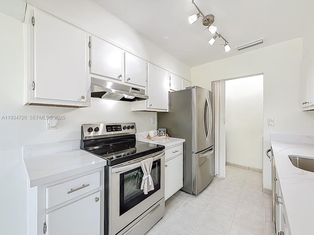Rare corner residence on a private cul-de-sac with a fenced backyard—one of Devon-Aire Villas’ largest and most desirable models. Discover this beautifully maintained 3BR/2BA corner townhome tucked away on a quiet cul-de-sac of only eight homes with no through traffic. This desirable 1,276 SF model offers a spacious, light-filled layout, tasteful updates, and a lush outdoor living area that creates an open, refreshing feel. Step inside through the foyer into an expansive 15’ x 20’ great room featuring white tile flooring and abundant natural light. Quad sliding glass doors open to a generous 34’x20’ covered terrace and freshly sodded, fenced backyard, ideal for outdoor dining, relaxing, or entertaining. The remodeled kitchen features brand-new quartz countertops, stainless steel appliances, new lighting, and a breakfast/dining area with sliding doors to the terrace. A convenient laundry room with shelving is located just off the kitchen. The spacious primary bedroom offers room for a sitting area or workspace and includes an en-suite bath with refinished tub. Secondary bedrooms feature wood-laminate flooring, double windows, and pleasant views of the community green space or backyard. Additional highlights include a 6.5’ x 3.5’ exterior utility room, fresh interior and exterior paint, and smart-home features including a Ring doorbell, cameras, and Kwikset keypad entry. A wonderful opportunity to own a larger corner residence in one of Kendall’s villa communities.