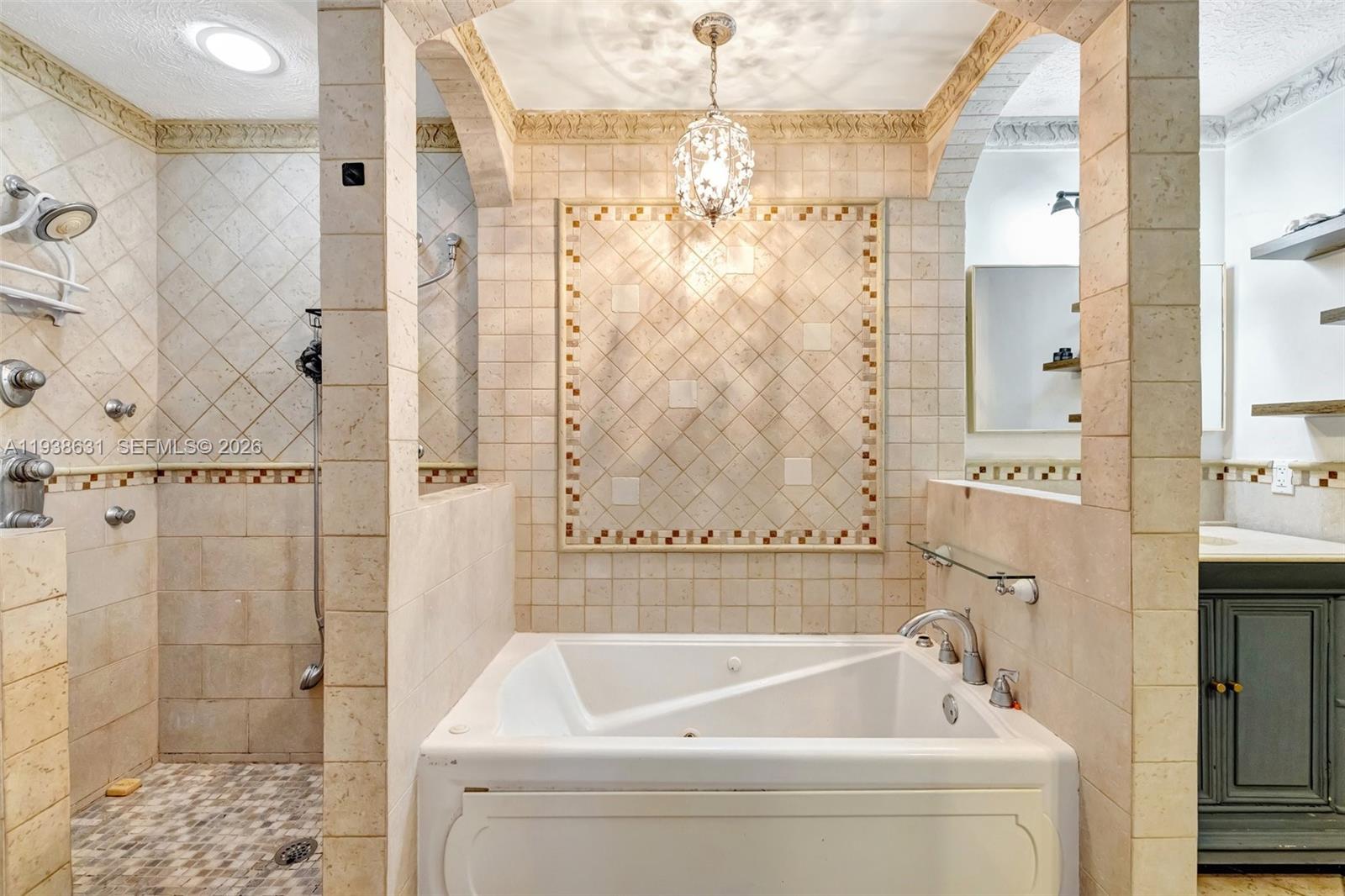 • Интерьер:BreakfastBar, BreakfastArea, DiningArea, SeparateFormalDiningRoom, GardenTubRomanTub, JettedTub, SeparateShower, VaultedCeilings, WalkInClosets