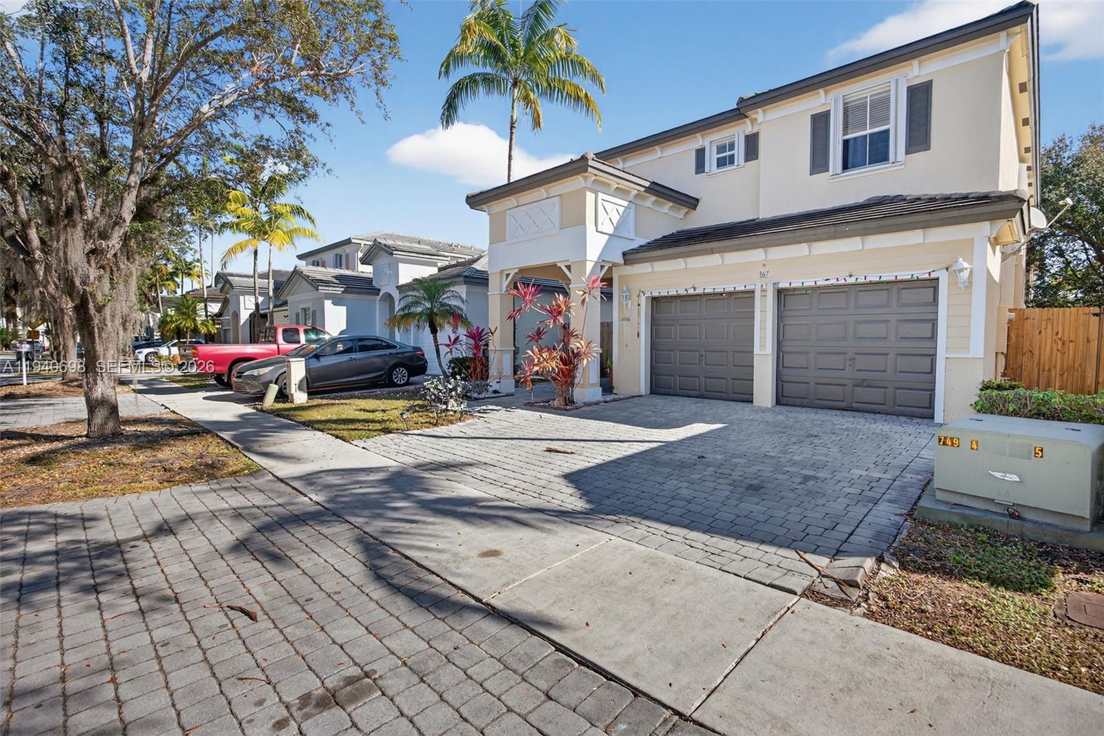 Spacious two-story home located in the desirable, gated community of Isles of Oasis offering resort-style amenities. This 2006 built 5-bedroom, 2.5-bath home provides generous living space, with an ideal layout for families, and a 2-car garage for extra parking or storage. The main level features tile flooring throughout and an open kitchen with granite countertops, stainless steel appliances, and seamless access to a fully fenced backyard with a lovely patio, star fruit and lime tree, perfect for outdoor entertainment. Upstairs you’ll find all five bedrooms, including the expansive primary suite with a large ensuite master bathroom featuring dual vanities and a separate tub and shower. Residents enjoy access to community amenities including a pool, clubhouse, fitness center, and more. Conveniently located near major highways, great dining, Homestead Air Reserve Base, Baptist Homestead Hospital, Homestead-Miami Speedway, and just a 30-minute drive to the Florida Keys, don't miss this one!