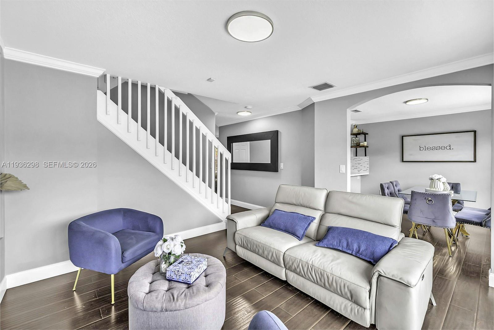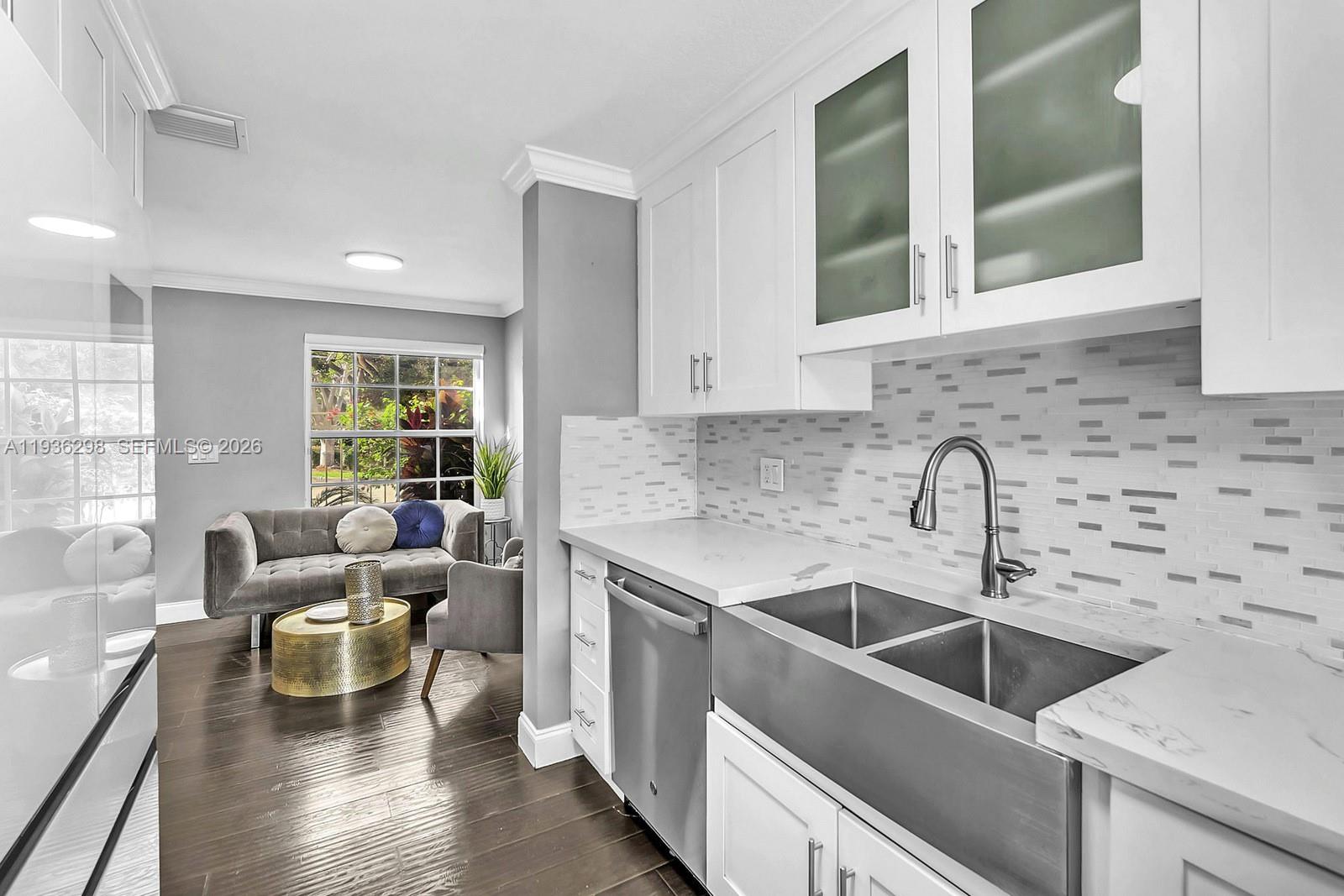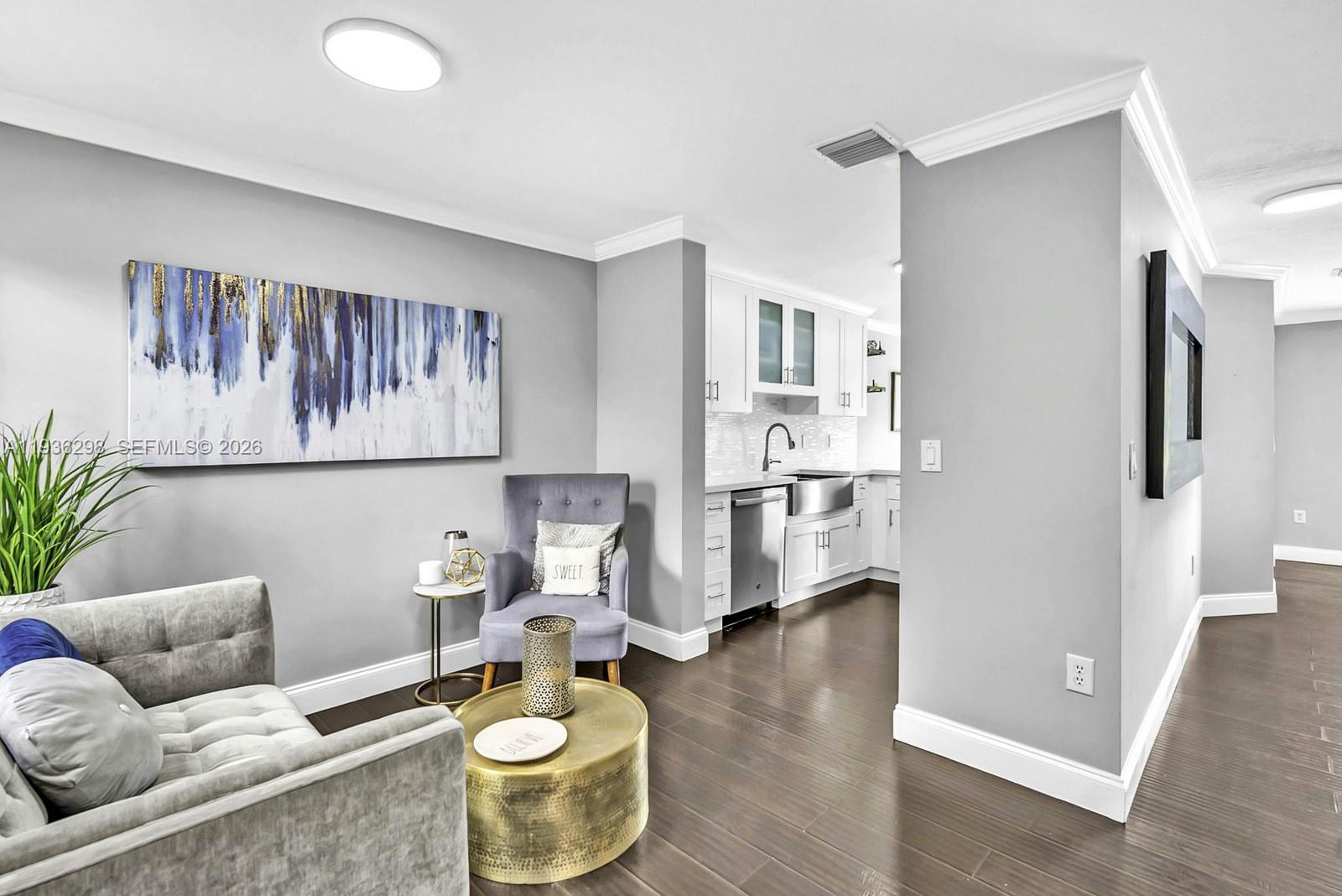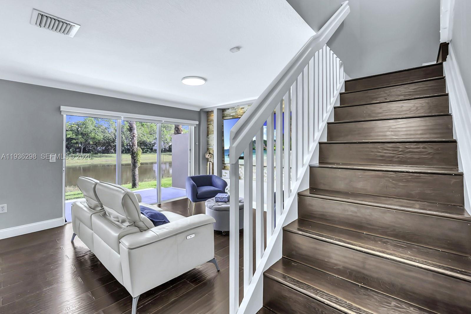 Spectacular fully re-imagined lakefront corner townhome located in the prestigious gated community of Pembroke Isles. Modern and beautifully updated 3 bedroom, 2.5 bath residence showcases laminate wood style flooring throughout, crown molding, a bright white kitchen filled with natural light, and stainless steel appliances. The family room is highlighted by an elegant decorative stone accent wall. Enjoy breathtaking sunrise views and tranquil lakefront living from your private back patio with no rear neighbors. Additional features include a 2 car driveway plus guest parking. Pembroke Isles offers resort-style amenities including a grand clubhouse, fitness center, multiple swimming pools, jacuzzi, tennis courts, pickle ball courts, basketball, soccer, racquetball, and more. No HOA approval required.