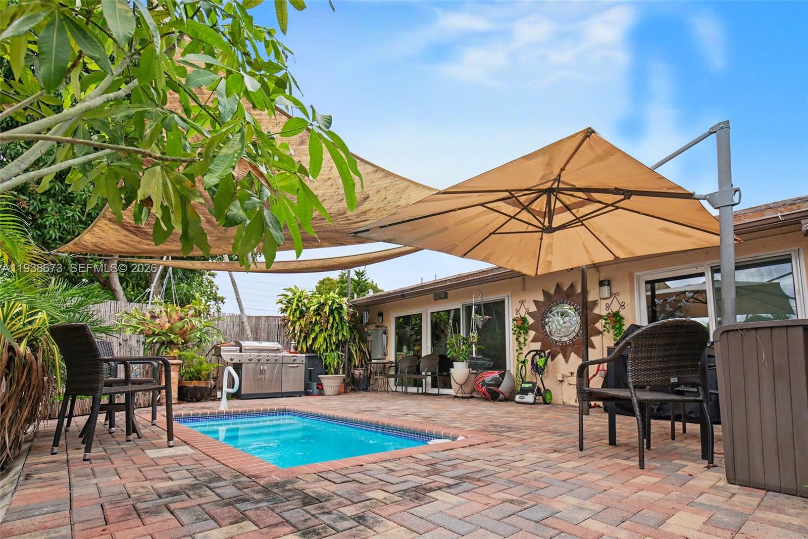 Rare corner townhome in San Sebastian! This remodeled townhome features a tropical oasis with your own private pool — a rarity in the neighborhood — and a natural gas home generator for peace of mind year-round, along with natural gas range, water heater and bar b que grill (no more tanks!). Enjoy bright living spaces, a functional layout, and a private outdoor area perfect for relaxing or entertaining. Conveniently located near great schools, shopping, dining, parks, and major roadways. Ideal for buyers seeking comfort, reliability, and a standout feature set you won’t often find at this price point.