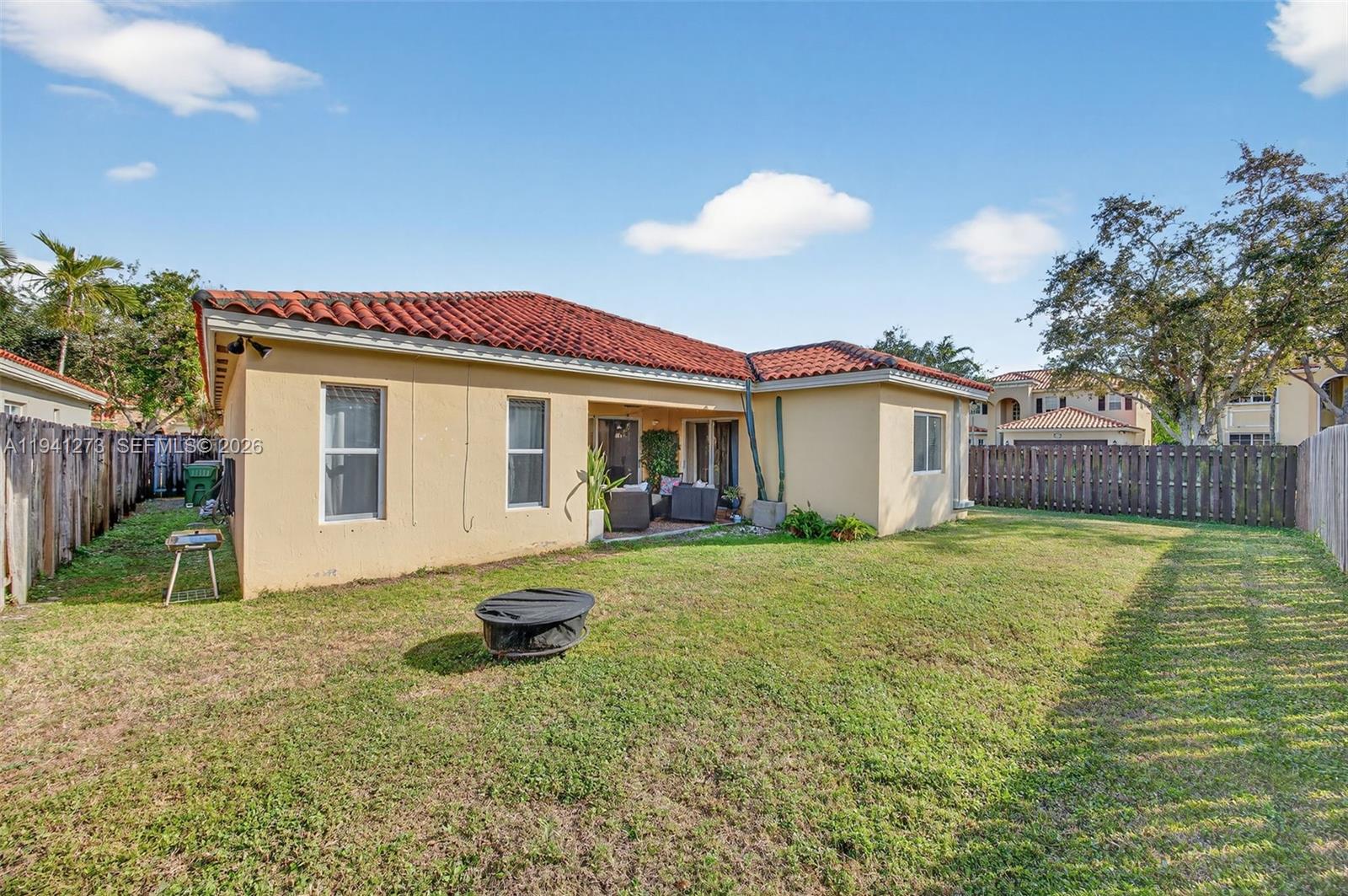 Amazing single-story 3-bedroom, 2-bath home located in the desirable Sonara at Malibu Bay community. This highly sought-after model features an open-concept layout with a bright and welcoming living space, tile and wood-style flooring throughout. Beautiful Backyard space- fully fenced backyard—perfect for entertaining, grilling, or building your dream pool. The home offers a two-car garage, hurricane shutters, AC (2020), Roof original. Enjoy resort-style community amenities including an Olympic-size pool with kiddie pool, fitness center, and playground. Conveniently located near shopping centers, restaurants, schools, Baptist Hospital, Leon Medical Center, the Turnpike, and Homestead Air Reserve Base. Low HOA. Easy to show.