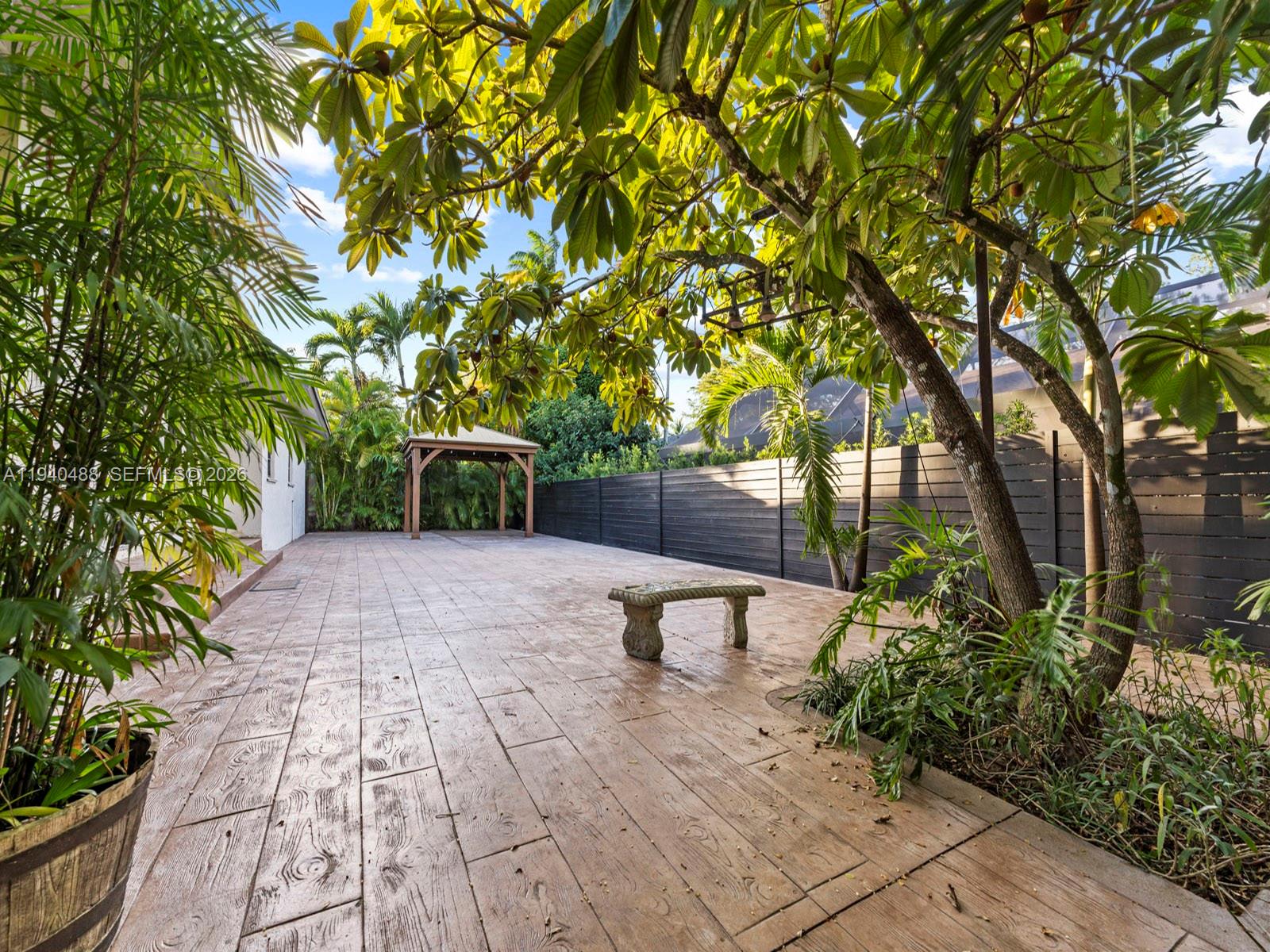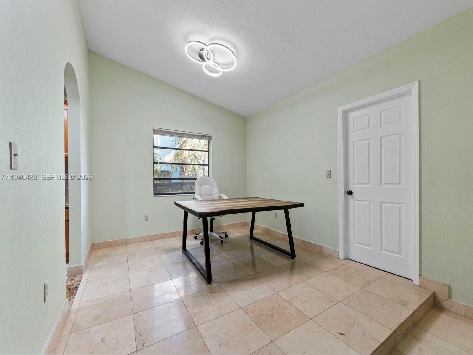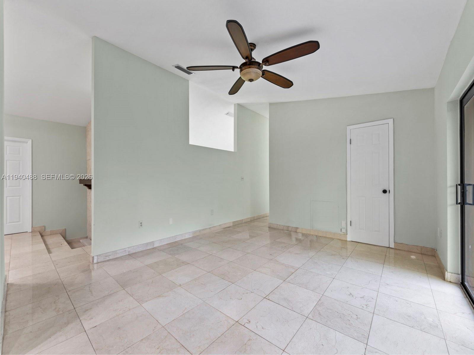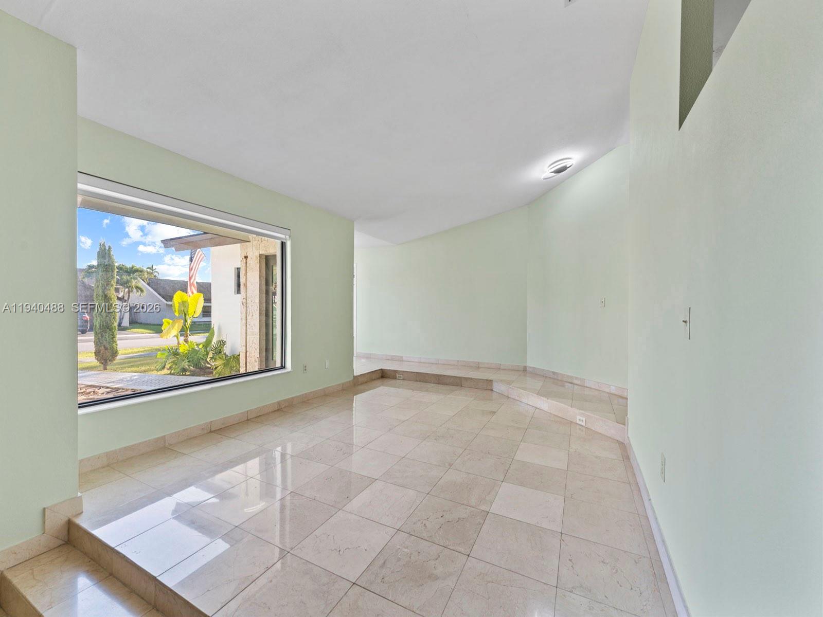 This spacious 4-bedroom, 3-bathroom home in Lindgren West (no HOA) offers 2,000+ sq.ft. of move-in-ready living space. Freshly painted inside and out, the residence features a stunning open layout with vaulted ceilings, marble floors, and a signature double-sided fireplace. The updated kitchen boasts brand-new top-of-the-line appliances and granite countertops. The primary suite is a true highlight, featuring a walk-in closet plus two additional closets. Upgrades have been made throughout including bathrooms, a new central A/C and partial impact windows and doors. Enjoy the inviting, fully tiled backyard complete with a custom pergola and lush fruit trees. Additional features: converted garage (potential 5th bedroom/office/family room), hurricane shutters, and room for a pool on a 7,500 sq. ft. lot. Located within proximity to top schools, shopping, West Kendall Baptist, and easy access to Turnpike & 874.