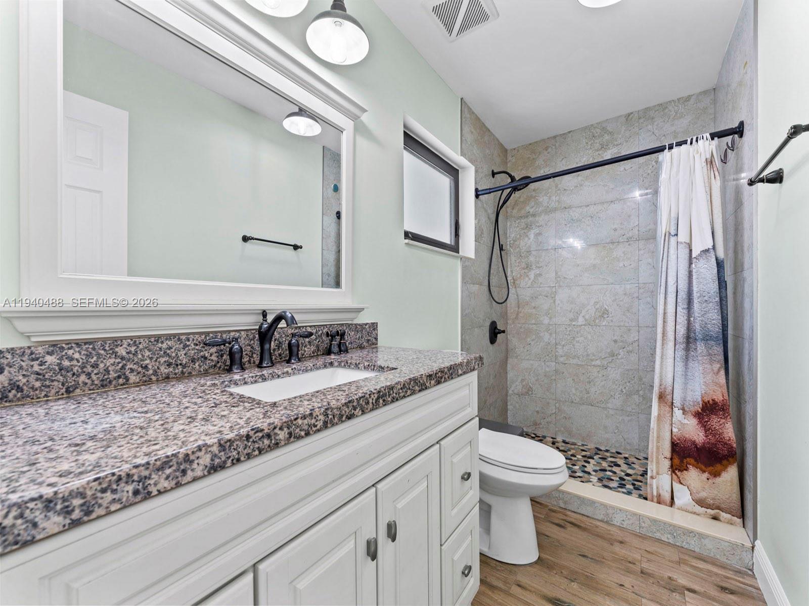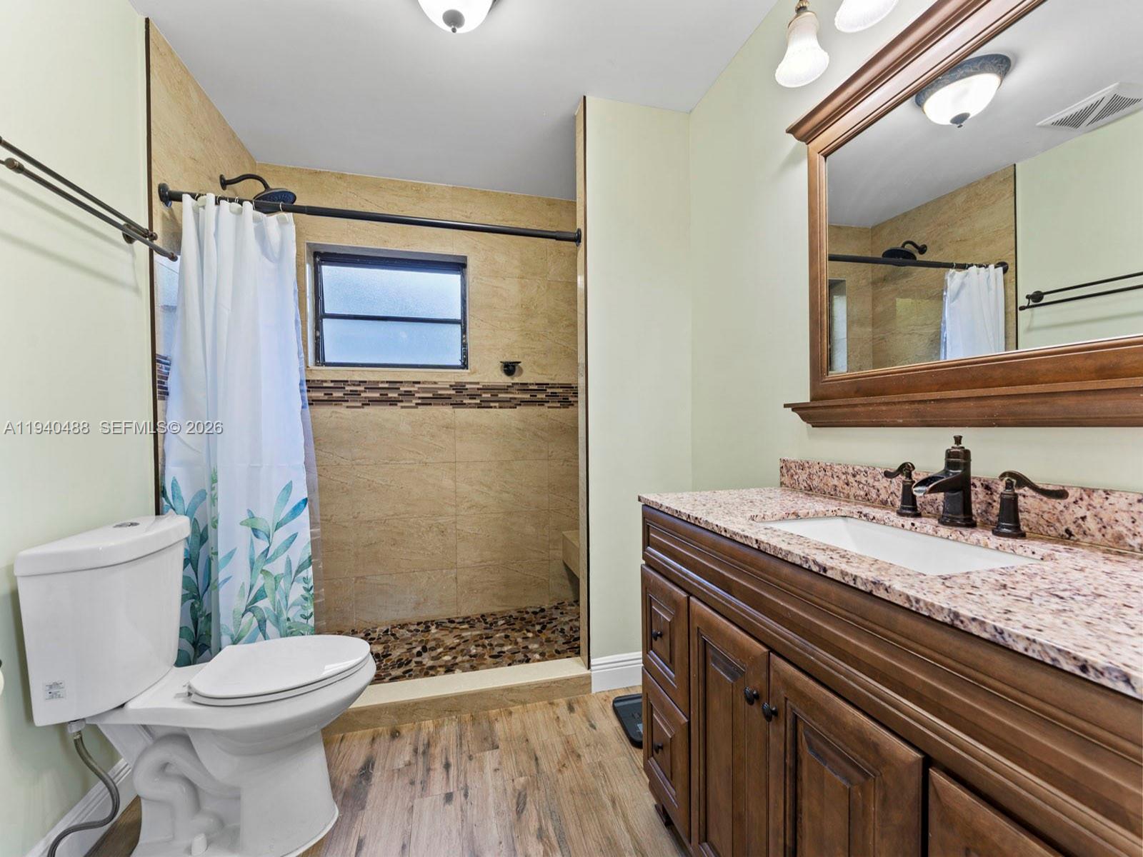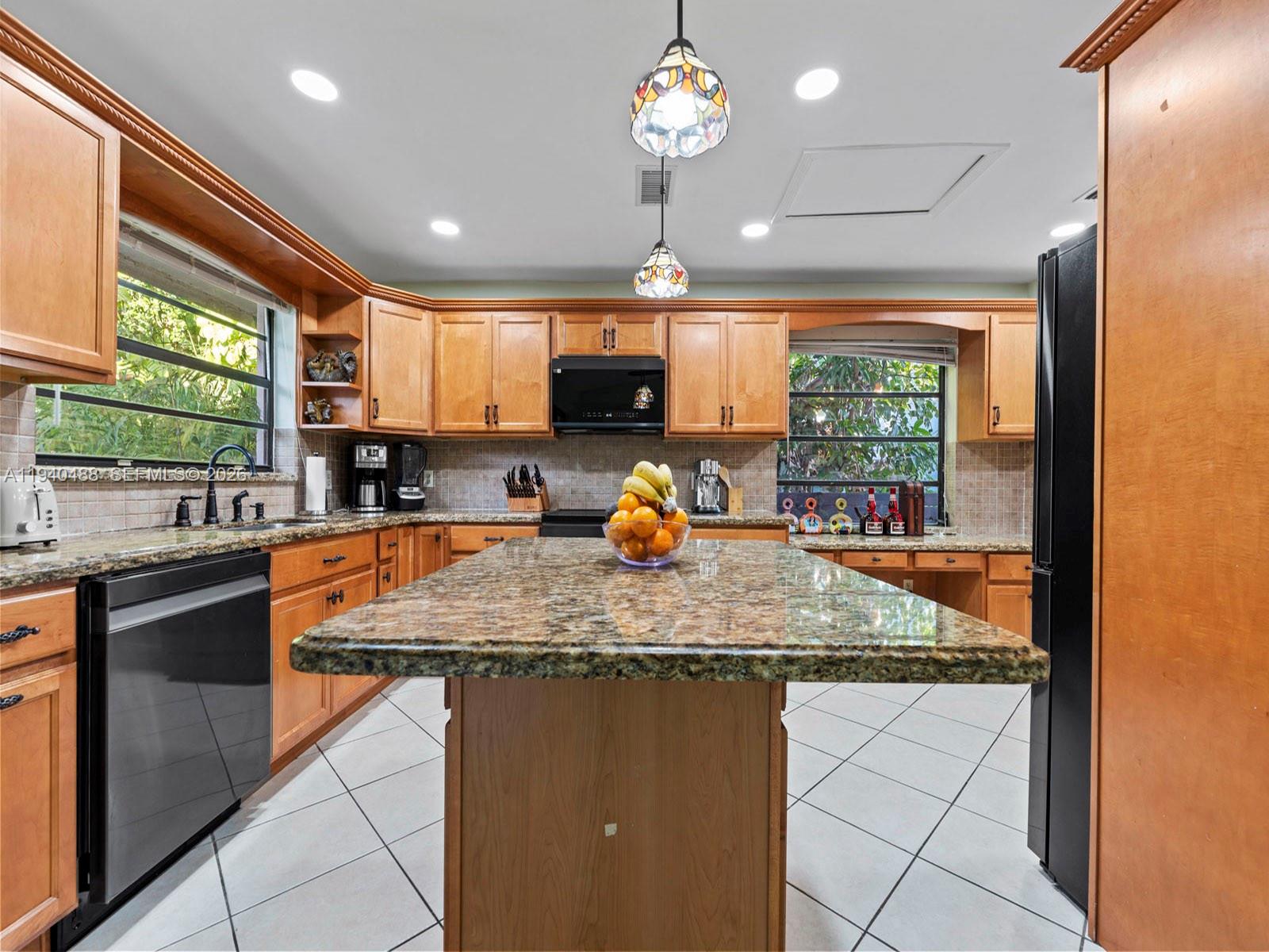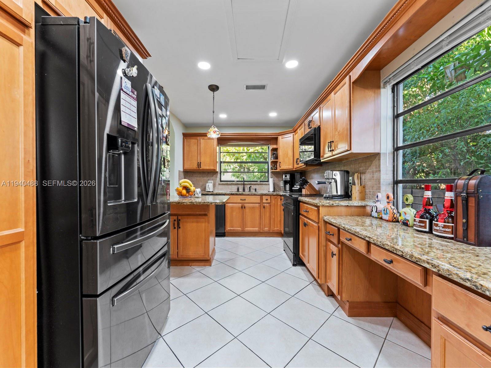 This spacious 4-bedroom, 3-bathroom home in Lindgren West (no HOA) offers 2,000+ sq.ft. of move-in-ready living space. Freshly painted inside and out, the residence features a stunning open layout with vaulted ceilings, marble floors, and a signature double-sided fireplace. The updated kitchen boasts brand-new top-of-the-line appliances and granite countertops. The primary suite is a true highlight, featuring a walk-in closet plus two additional closets. Upgrades have been made throughout including bathrooms, a new central A/C and partial impact windows and doors. Enjoy the inviting, fully tiled backyard complete with a custom pergola and lush fruit trees. Additional features: converted garage (potential 5th bedroom/office/family room), hurricane shutters, and room for a pool on a 7,500 sq. ft. lot. Located within proximity to top schools, shopping, West Kendall Baptist, and easy access to Turnpike & 874.