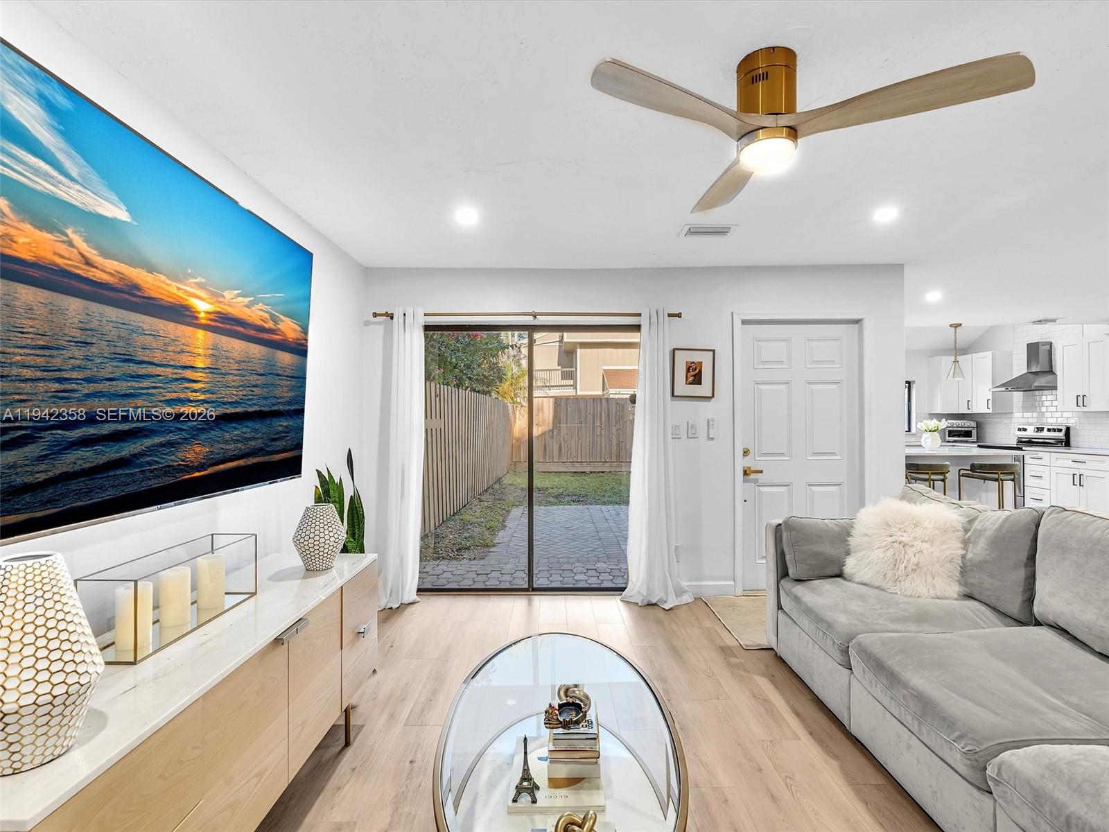 Welcome to this beautifully renovated 2-bedroom, 2-bathroom townhouse located in one of Plantation’s most desirable neighborhoods. Perfectly positioned near Sawgrass Mills Mall, top-rated restaurants, shopping, and major highways, this home offers both convenience and lifestyle. Step inside to discover a modern, open-concept layout featuring stylish water resistant vinyl flooring throughout and abundant natural light. The fully updated kitchen is a standout, showcasing quartz countertops, sleek stainless steel appliances, ample cabinetry, and a seamless flow into the living and dining areas—ideal for both everyday living and entertaining. Both bathrooms have been tastefully upgraded with contemporary finishes, providing a clean and elegant feel. The spacious primary bedroom offers a private retreat complete with a balcony, perfect for enjoying your morning coffee or unwinding in the evening. Additional highlights include a fenced private yard, ideal for outdoor dining, gardening, or relaxing in your own personal space. This townhome combines modern upgrades with functional living and outdoor enjoyment. Whether you’re a first-time buyer, downsizing, or investing, this move-in-ready home checks all the boxes. Don’t miss the opportunity to own a turnkey property in a prime Plantation location close to everything South Florida has to offer.