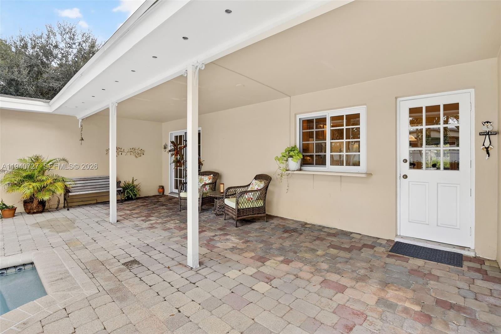 BEST VALUE and lowest-priced 4BR/3BA pool home in the neighborhood! This very spacious, light-filled home features a rare three-way split floor plan, abundant natural light, a pass-through kitchen window to your covered patio and serene views of the sparkling pool. The kitchen offers solid wood cabinetry and Corian countertops. MAJOR UPGRADES include a 2023 ROOF, 2019 A/C, NEW WATER HEATER, NEW ELECTRICAL PANEL and most windows are HURRICANE IMPACT WINDOWS or have shutters. Additional highlights include an indoor laundry room and a two-car side-entry garage. Situated on an expansive 13,068-SF CORNER LOT with a circular driveway, storage shed and ample room to PARK A BOAT or RV. Ideal for year-round outdoor living, entertaining, or relaxing in the breeze. Located in sought-after Plantation Park near top-rated schools, parks, golf, shopping and dining. Easy to Show!