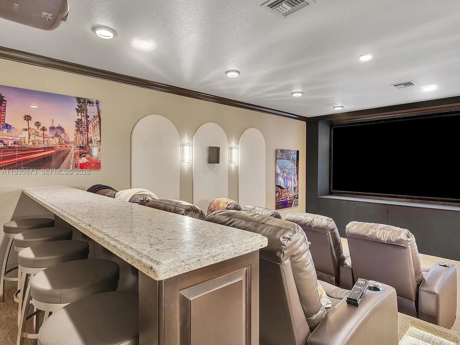 Exceptional turnkey residence in the prestigious Parkland Golf & Country Club. This elegant 5-bedroom, 3.5-bath home features soaring volume ceilings, crown molding, and marble flooring throughout. The gourmet kitchen offers soft-close cabinetry, granite countertops, stainless steel appliances, gas cooking, wine refrigerator, and reverse osmosis system. The first-floor primary suite includes a private sitting area, dual oversized walk-in closets, and a spa-inspired bath with jacuzzi tub and separate shower. Upstairs offers three additional bedrooms, two baths, and Brazilian cherry hardwood flooring throughout. Enjoy a state-of-the-art private theater with a 133” screen, eight reclining seats, and Dolby Atmos surround sound. Impact windows and doors throughout, newer A/C systems (2019 & 2020) with room for a private pool. Residents enjoy world-class clubhouse amenities including fine dining, resort-style pools, tennis, fitness center, and more. A rare opportunity in one of Parkland’s most sought-after communities.
