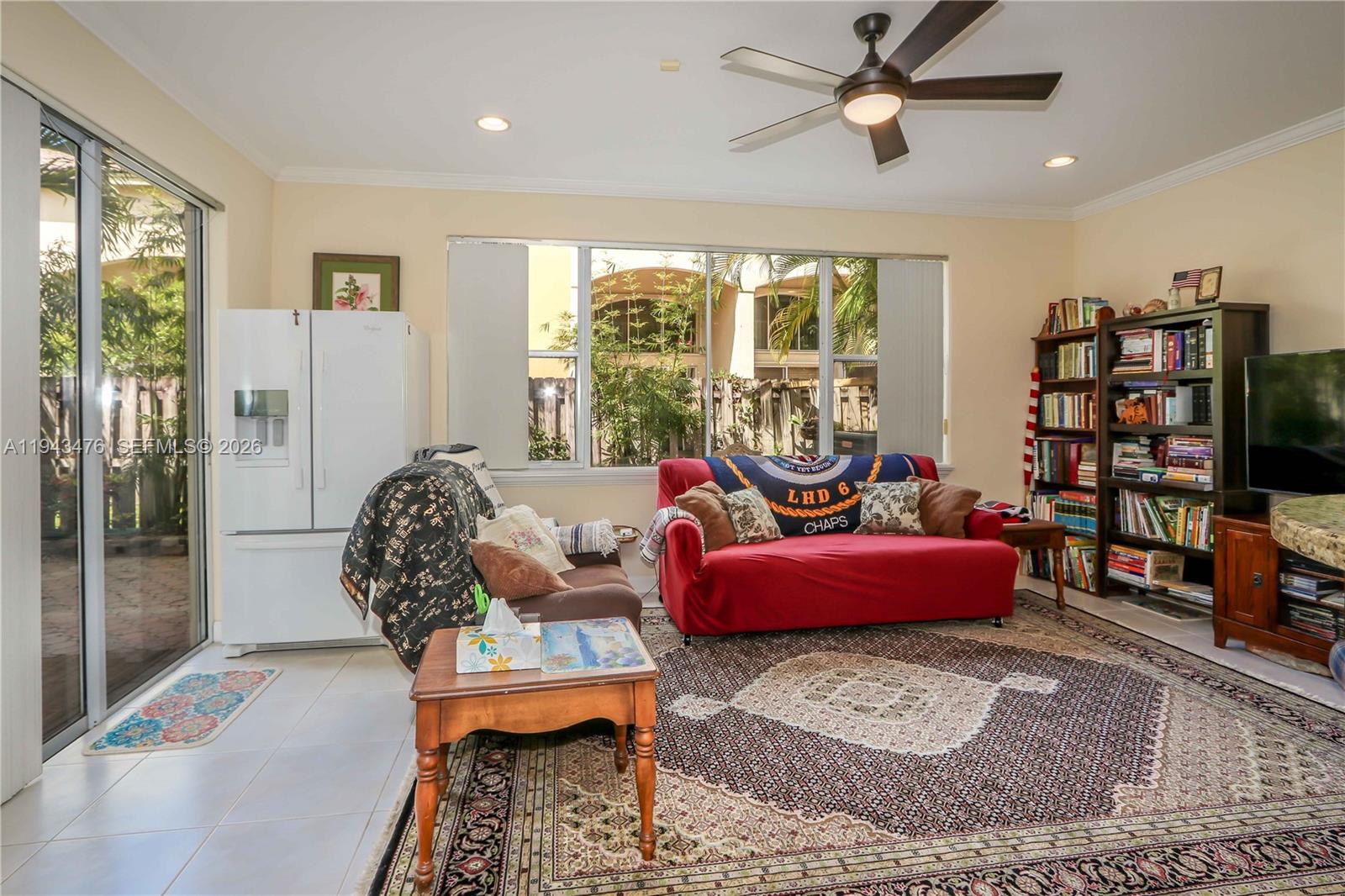 Gorgeous 3 bedrooms, 2.5 bathroom, 2 car garage plus driveway parking and 5 visitor parking close by, formal living room, formal dining room, family room, open kitchen with large breakfast counter bar, pantry, volume ceilings, crown molding, fenced patio with pavers throughout, rear porch/terrace, bedrooms upstairs, in the gorgeous, gated community of Las Cascadas. Community pool, close to great schools, turnpike, Dolphin and International mall, Dinning and more!!!!