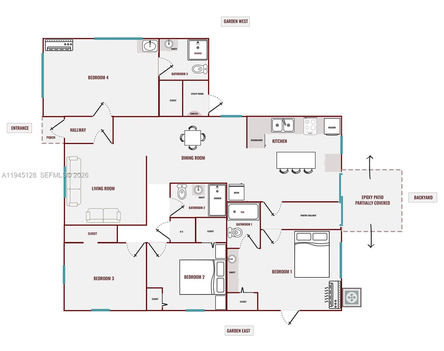 Welcome to this beautifully updated 4BD/3BA home in North Miami—offering the perfect blend of comfort, efficiency, and flexibility. Enjoy peace of mind with a new roof (2022), impact windows (2023), solar panels (2024), central A/C (2024), and mini splits (2023 & 2025) in both en-suite bedrooms, ideal for long-term guests or extended household needs. Smart home features include locks, lighting, and security cameras. The bright kitchen includes a tucked-away laundry area for added convenience. Step outside to a spacious fenced back yard with tropical landscaping, mango, sapodilla, and Plumeria trees. Stamped concrete driveway that fits 3–4 cars. Quiet street. A transferable solar panel lease keeps electric bills low. Excellent incentive: Seller provides 2/1 temporary buydown - borrower's note rate reduced 2 points year 1, 1 point year 2. Qualified borrowers only up to a maximum of $13,000. Contact listing agent for lender guidelines and qualifying parameters.