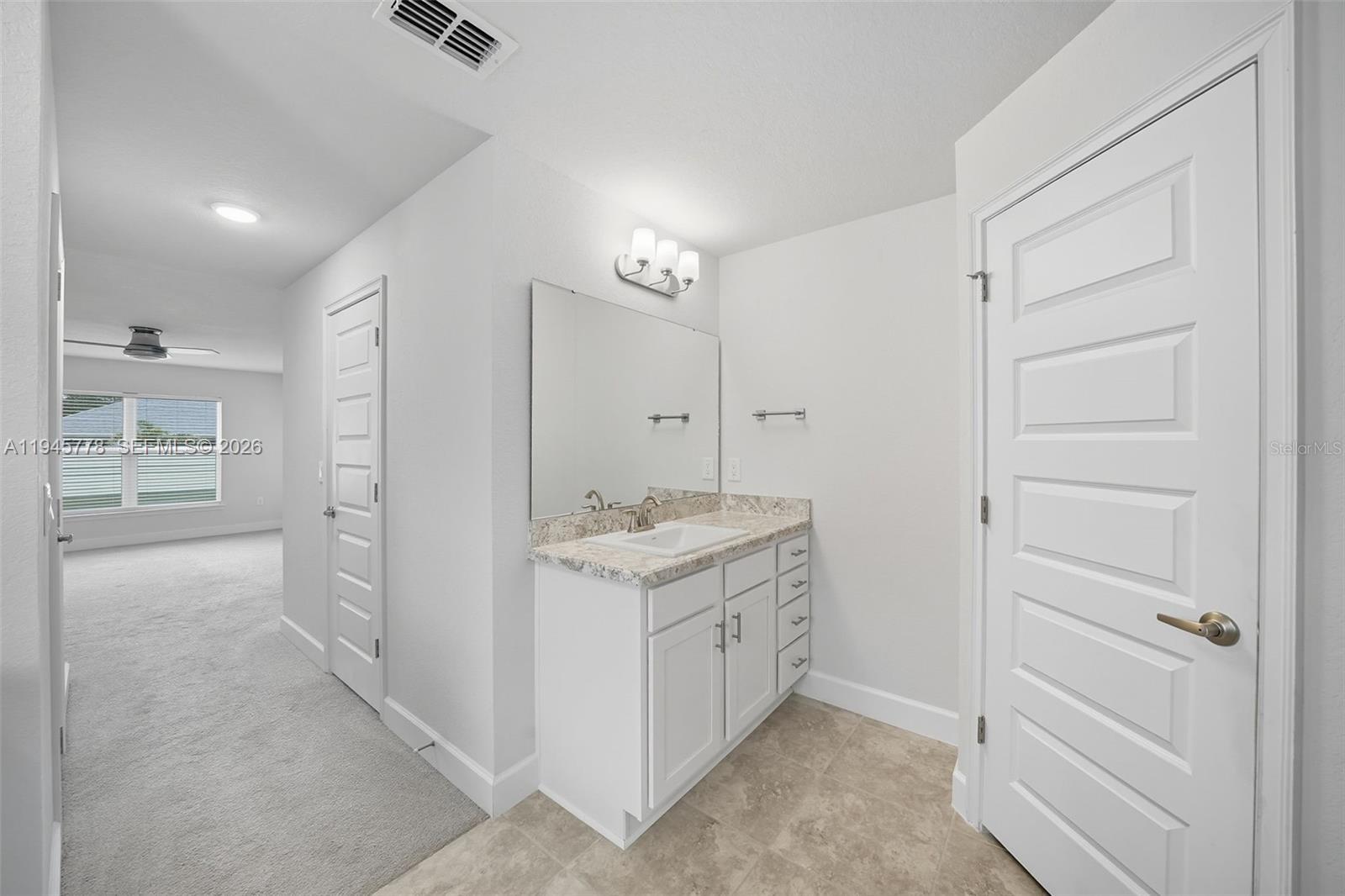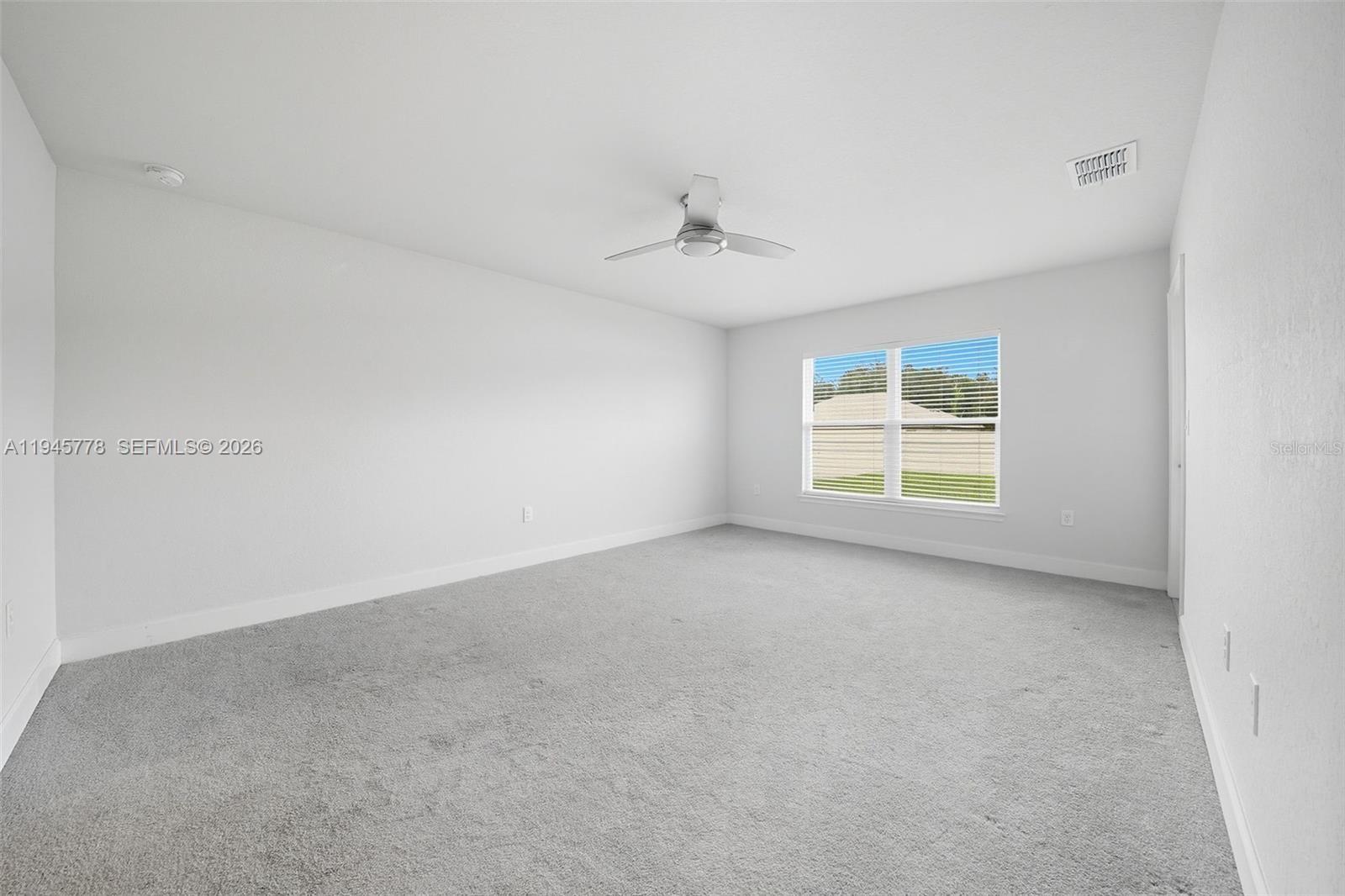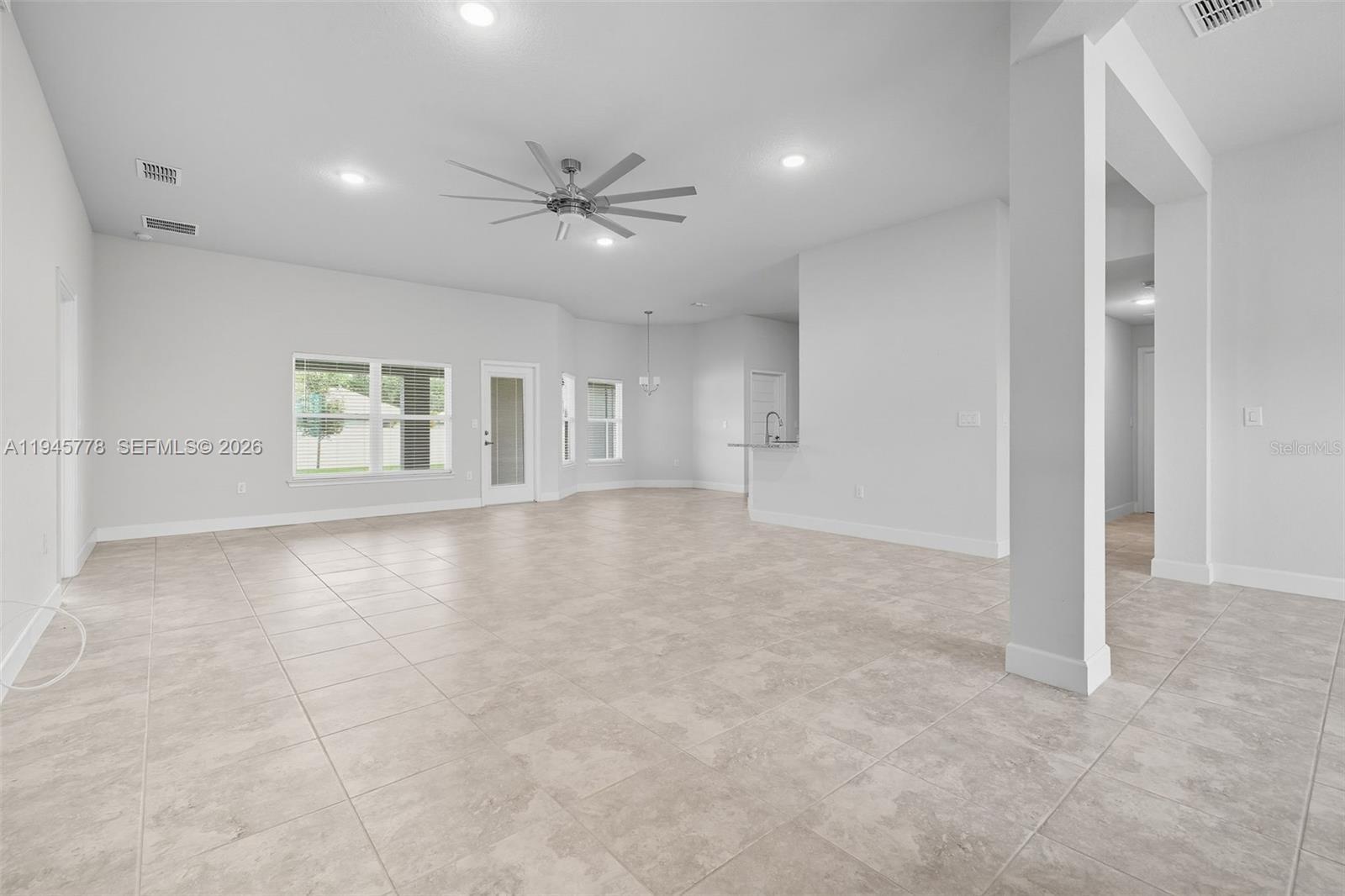 Welcome to this exceptionally maintained 4-bedroom, 3-bath residence with a 3-car garage. Thoughtfully designed, the home offers both formal living and dining areas at the entry, flowing into a spacious family room, open kitchen, and breakfast nook—perfect for daily living and entertaining. The kitchen provides ample counter space, a pantry, and modern appliances. Washer and dryer are included. The primary suite features dual vanities, a walk-in closet, and direct access to the lanai. Three additional bedrooms and two full bathrooms are situated on the opposite side of the home, with the laundry room conveniently nearby. Recent upgrades include plantation shutters, custom blinds on all windows, a water treatment system, and an epoxy-coated garage floor. Ceiling fans throughout enhance comfort, while the backyard is fully fenced and generously sized, ideal for outdoor enjoyment and privacy. This property has been carefully maintained and is truly move-in ready.