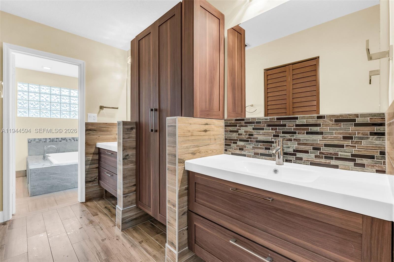 Welcome to this beautiful 5-bedroom, 3.5-bathroom home tucked away in a peaceful cul-de-sac. Featuring vinyl flooring upstairs and tile flooring downstairs, this home offers a stylish, low-maintenance living environment with no carpet. The spacious kitchen showcases beautiful wood cabinetry paired with Corian countertops and opens seamlessly to the generous living and dining areas, making it perfect for entertaining. The first-floor primary suite provides added convenience and privacy, complete with a beautifully tiled bathroom that delivers a spa-like retreat. Step outside to a fully fenced backyard featuring a refreshing in-ground saltwater pool, ideal for relaxing or hosting guests. Located in a highly desirable neighborhood with top-rated schools, this home perfectly blends comfort, charm, and functionality.