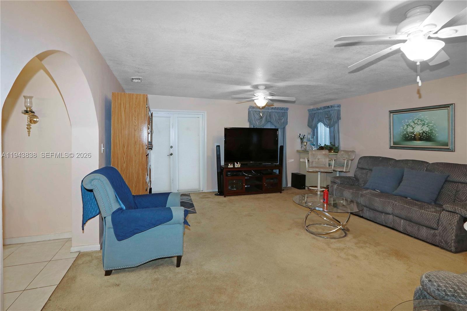 Spacious 4-bedroom home featuring a desirable split floor plan that offers privacy and functionality. The updated galley kitchen provides efficient layout and modern touches, while hurricane shutters add peace of mind. A 10 year old roof enhances long term value. Enjoy indoor-outdoor living with a large screened-in patio overlooking the yard. The circular driveway provides ample parking and curb appeal, complemented by a 1 car garage and a separate laundry room for added convenience. A well-rounded property, ideal for comfortable living and entertaining.