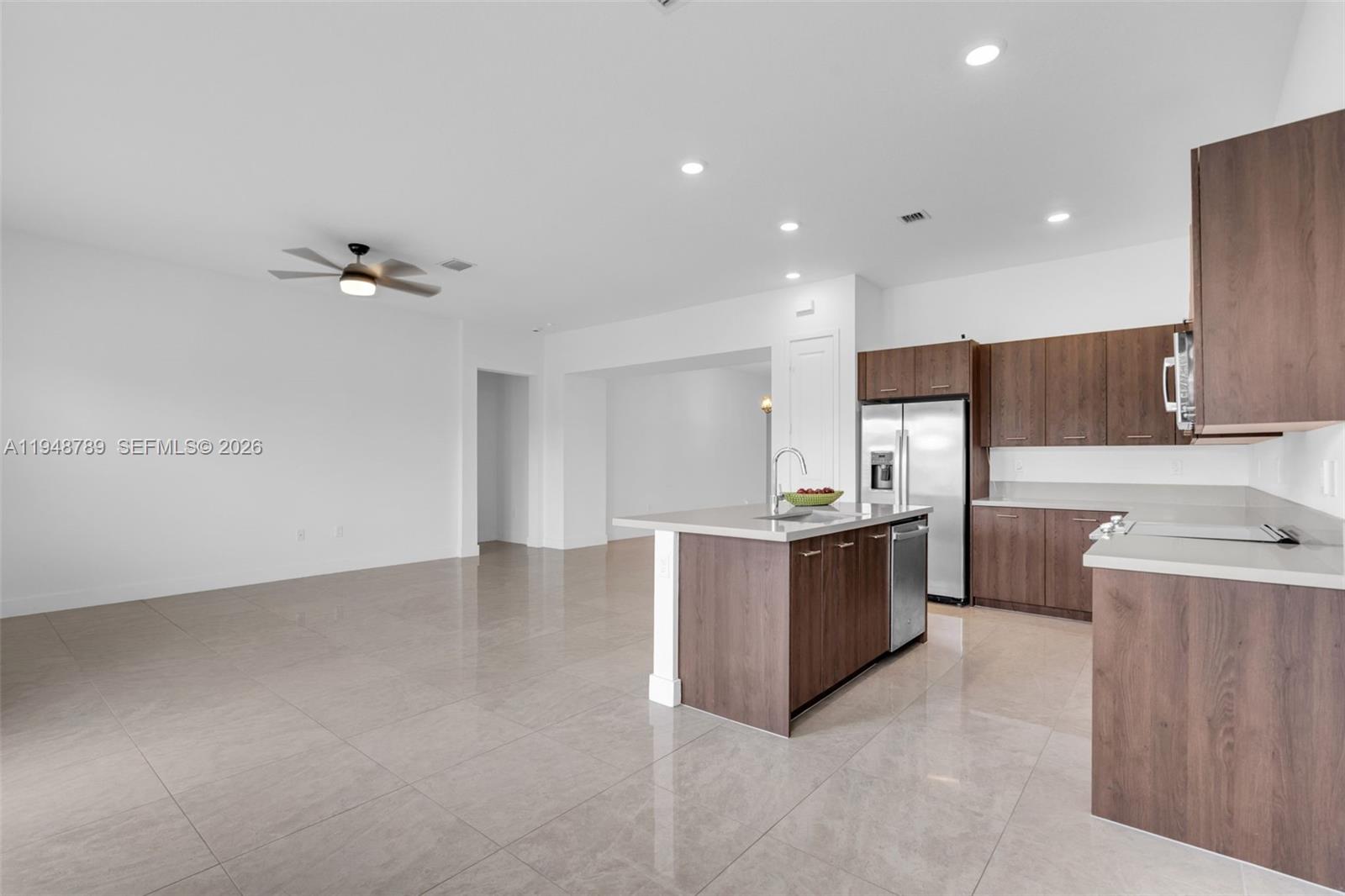 Experience this single-level home, located in the prestigious community of Marbella. Boasting 4 bedrooms, 3 bathrooms, and a two-car garage with an EV connection, this residence combines convenience and luxury. The porcelain floors and high ceilings bring an elegant atmosphere to every room, while the kitchen features quartz countertops and stainless-steel appliances, perfect for any cooking enthusiast. Take in breathtaking lake views from the backyard, living room, and primary suite. Conveniently located near top-rated schools. Thoughtful upgrades include rain gutters, plantation shutters, a Ring alarm system, and custom-designed His and Hers closets. Highly motivated seller!