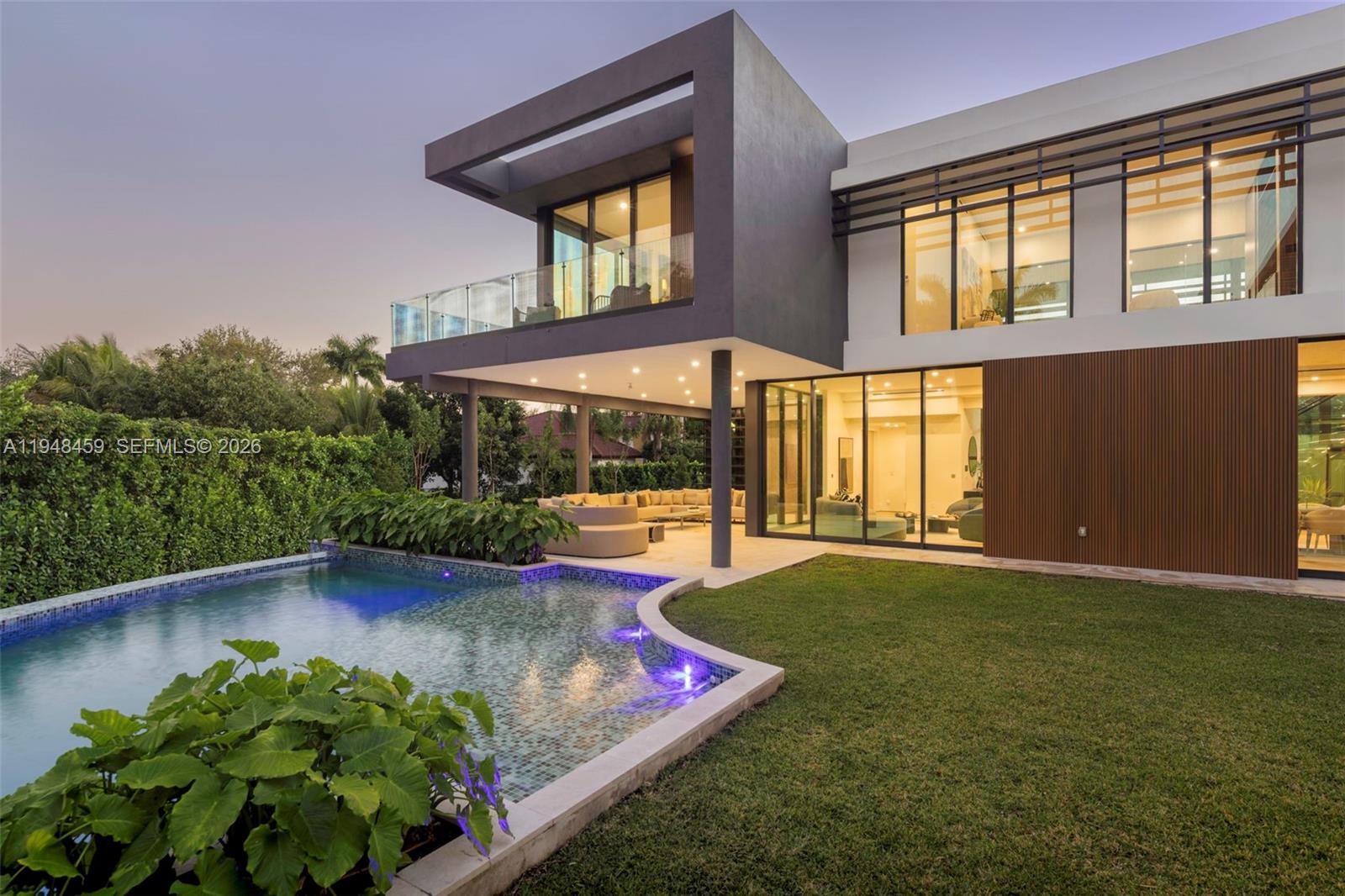 Tucked away on a quiet Pinecrest cul-de-sac, this newly completed two-story estate delivers refined modern luxury with exceptional privacy and architectural presence. Offering 7 bedrooms and 7.5 baths, the residence is thoughtfully designed with curated European finishes throughout, including warm wood tones, natural stone, and bespoke marble imported from Italy and Spain. Expansive walls of architectural glass flood the interiors with natural light while creating a seamless connection between indoor and outdoor living spaces. The chef’s kitchen is both striking and functional, featuring premium appliances, custom millwork, generous prep space, and a temperature-controlled wine display, all opening effortlessly to the main living and dining areas—ideal for entertaining at scale or intimate gatherings. Elevator access serves both levels for added convenience. The primary suite is a true private retreat, complete with a sitting lounge, serene views, and a spa-inspired bath featuring a skylight, soaking tub, dual vanities, and refined stone finishes. Additional bedrooms are well-appointed and thoughtfully positioned for comfort and privacy. Resort-style grounds complete the offering, showcasing an infinity-edge pool, guest house, and lush, tranquil landscaping that enhances the sense of seclusion. A rare opportunity to own a newly built, design-forward residence in one of Pinecrest’s most desirable settings.