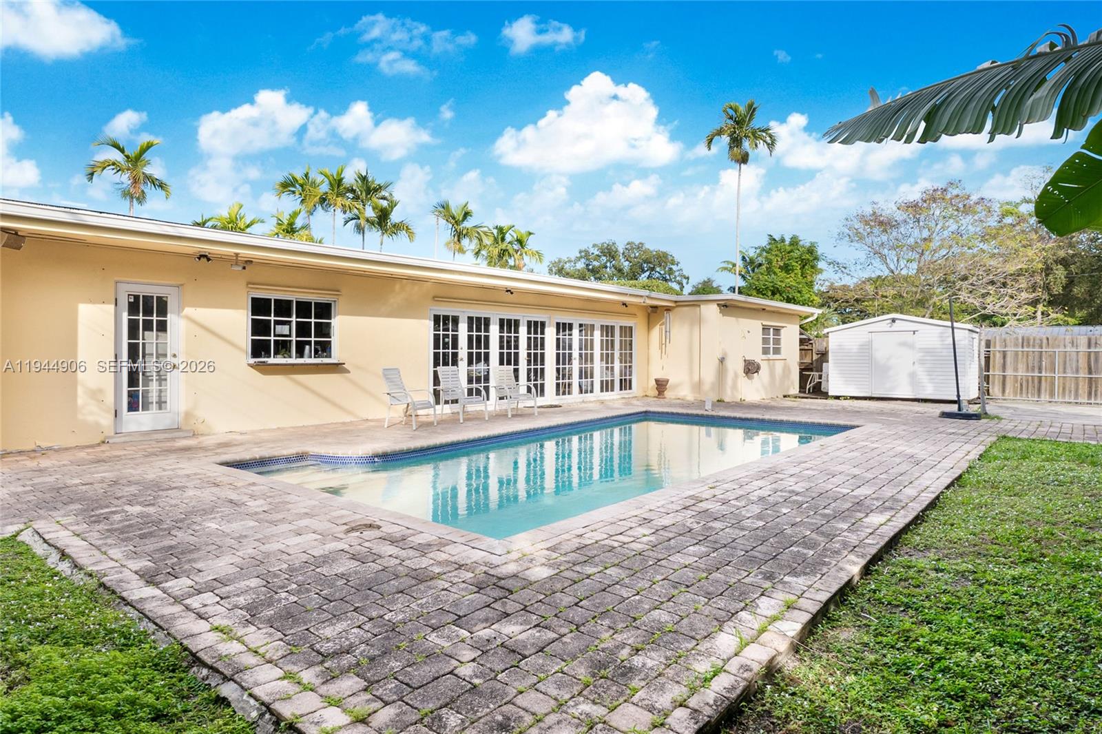 1ST OPPORTUNITY OF 2026! SKYLAKE CUSTOM, CORNER TRUE 4 BEDROOM 3 BATH POOL HOME, ON OVERSIZED CORNER LOT...ON MOST DESIRABLE PALM TREE LINES STREET! OPEN AND LIGHT FLOORPLAN BOASTS LARGE LIVING ROOM WITH DINING AREA AND BUILT-IN BUFFET OPENING TO KITCHEN -FAMILY ROOM. SPLIT BEDROOM FLOOR PLAN HAS 3 BEDROOMS, INCLUDING MASTER ON ONE SIDE, AND 4TH BEDROOM AND BATH O N THE OTHER. ADD A HUGE POOL, REAL 2 CAR GARAGE, AND YOU HAVE THE BEST DEAL! HURRY...WON'T LAST!