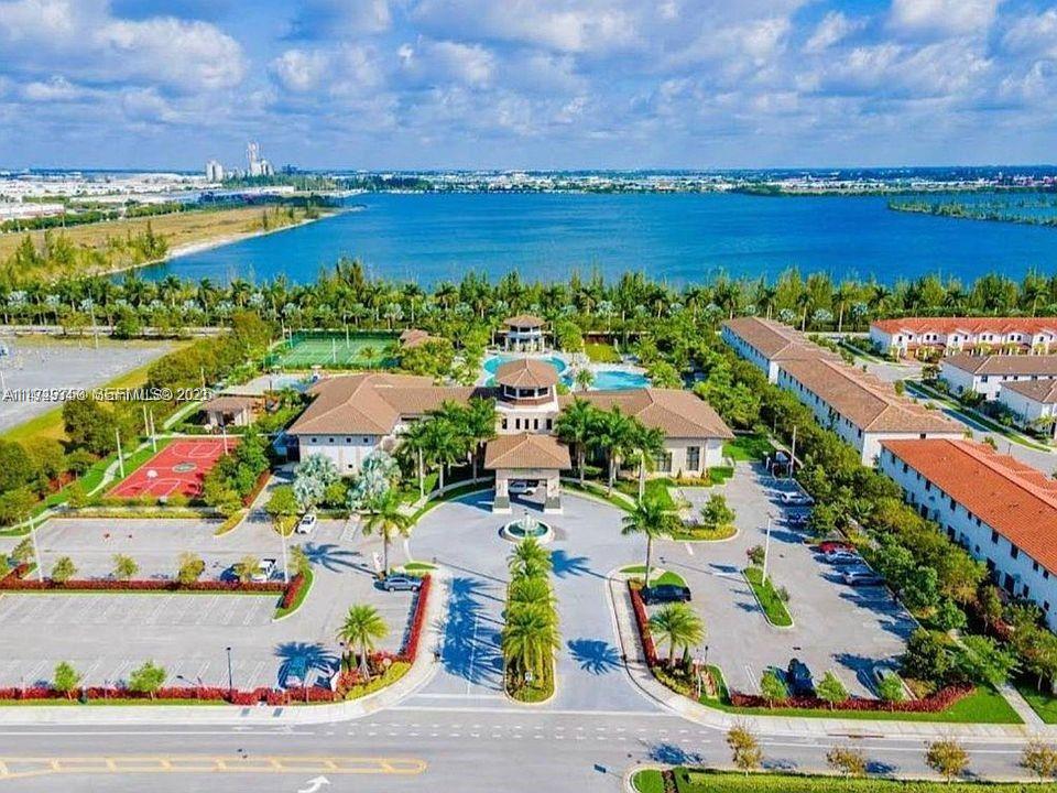 Beautiful and bright 3-bedroom, 2.5-bath townhouse located in the highly desirable Islands at Doral – Windward gated community. This move-in-ready home offers a spacious open layout filled with natural light, impact windows throughout, and a fully remodeled kitchen featuring quartz countertops and new appliances. Enjoy a private backyard with breathtaking lake views and stunning sunsets, perfect for relaxing or entertaining. The unit includes a washer and dryer conveniently located on the second floor, a one-car garage, two driveway spaces, and additional guest parking. Residents enjoy 24/7 gated security and resort-style amenities including a clubhouse, swimming pools, fitness center, tennis and basketball courts, walking and biking trails, kids’ playground, and beautifully maintained lakes and landscaping. Ideally located near top-rated schools, Dolphin Mall, International Mall, restaurants, cafés, grocery stores, major highways, and just 20 minutes from Miami International Airport. Easy to show!
