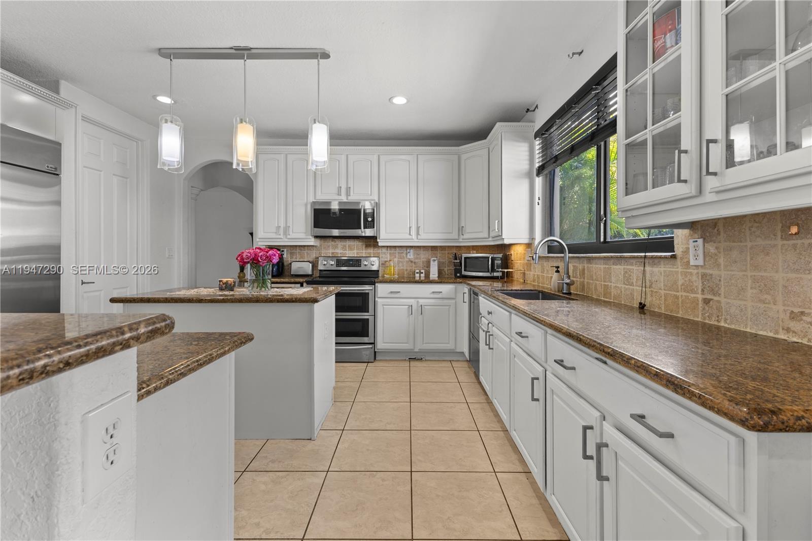 Exceptional lakefront living defines this elegant 5-bedroom, 4.5-bath pool home, nestled within the prestigious guard-gated community of Cutler Cay. Located on a quiet cul-de-sac and set on an expansive 12,561-square-foot lot, the residence offers breathtaking lake views, soaring ceilings, and a seamless open-concept layout ideal for both everyday living and entertaining. The spacious kitchen is equipped with upgraded appliances and flows effortlessly into both formal and casual dining areas. A thoughtfully designed floor plan includes a private in-law suite with its own full bath, perfect for extended family or guests. The primary suite serves as a tranquil retreat, featuring a generous bathroom and abundant closet space. Step outside to your own tropical oasis, complete with a resort-style pool, mature palm trees, and lush privacy hedges overlooking the water. Additional highlights include solar panels, a two-car garage, and a deep driveway providing ample parking. Residents of Cutler Cay enjoy access to world-class amenities, including a grand clubhouse, resort-style pool, state-of-the-art fitness center, tennis courts and a playground, —all set within a beautifully landscaped waterfront community. Ideally located just off historic Old Cutler Road, this home offers convenient access to Coral Gables, Pinecrest, top-rated schools, premier shopping, and dining.