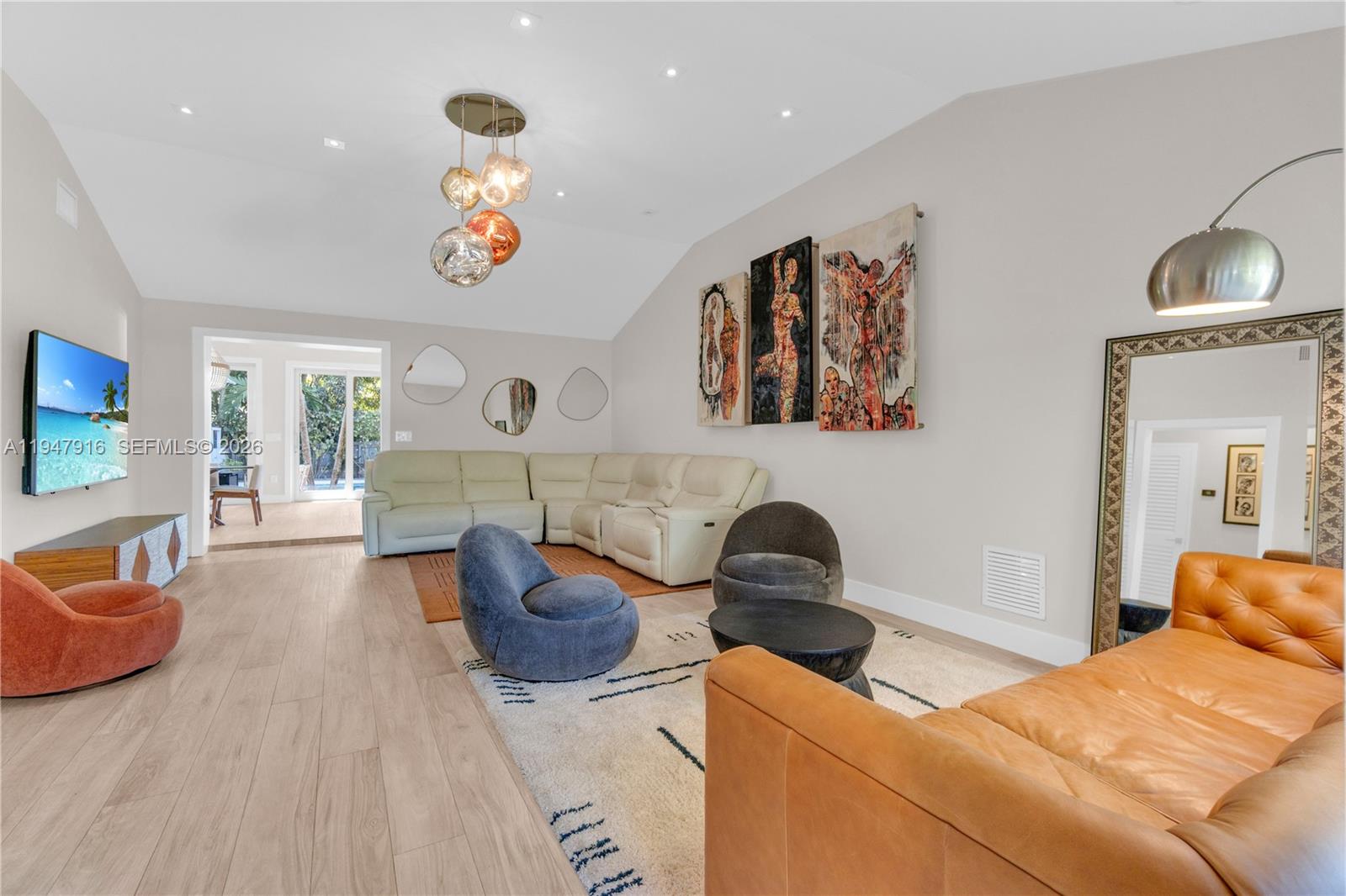 Welcome to one of the most spectacular pool homes in lush Biscayne Park, set on a quiet, tree-lined street and within WALKING distance to Miami Country Day School—one of Miami’s most prestigious and top-rated private schools. This exceptional location offers families the rare luxury of a true walk-to-school lifestyle while enjoying the charm, safety, and strong community Biscayne Park is known for. Beautifully remodeled with no expense spared, this 2,800 SF residence offers 5 bedrooms and 3 baths with soaring ceilings, expansive living spaces, and a spacious primary suite featuring a large walk-in closet and serene pool views. The chef’s kitchen with custom German cabinetry overlooks a meticulously landscaped backyard, creating a seamless indoor-outdoor flow ideal for entertaining and everyday living. Step outside to your private tropical oasis complete with a resort-style pool, covered patio with BBQ, and tranquil garden setting enhanced by a MosquitoNix system for year-round outdoor enjoyment. Recent upgrades include two new HVAC systems and a new pool heater (2025), custom closets (2025), updated fans and chandeliers (2024), and new front and back irrigation (2023). Additional highlights include custom bathrooms, tile floors throughout, a private laundry/utility room, and proximity to the neighborhood park and community center on 113th Street.