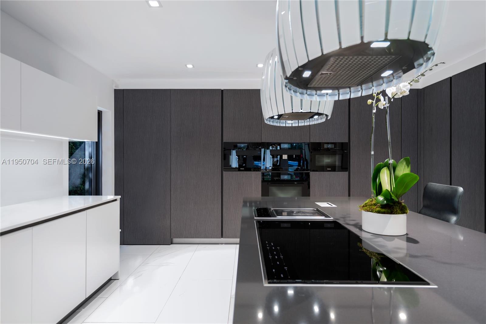 Modern luxury living in security gated Keystone Point with partial open bay views. Built in 2018 this 6 bed, 6.5 bath home has open plan indoor and outdoor living, and living areas bathed in natural light through floor-to-ceiling windows. European kitchen equipped with top-of-the-line Sub-Zero & Wolf appliances, and sliding doors to close off when entertaining. Entertain effortlessly with fully stocked bar area, temperature-controlled wine storage, and telescopic doors that open living areas to the outdoor pool area. Primary suite features a custom walk-in closet and breathtaking sunset bay views. Crestron smart home. 75 feet of water frontage with easy access to the open ocean. Minutes away from Whole Foods, nearby world-class shopping and fine dining in Bal Harbor Mall.