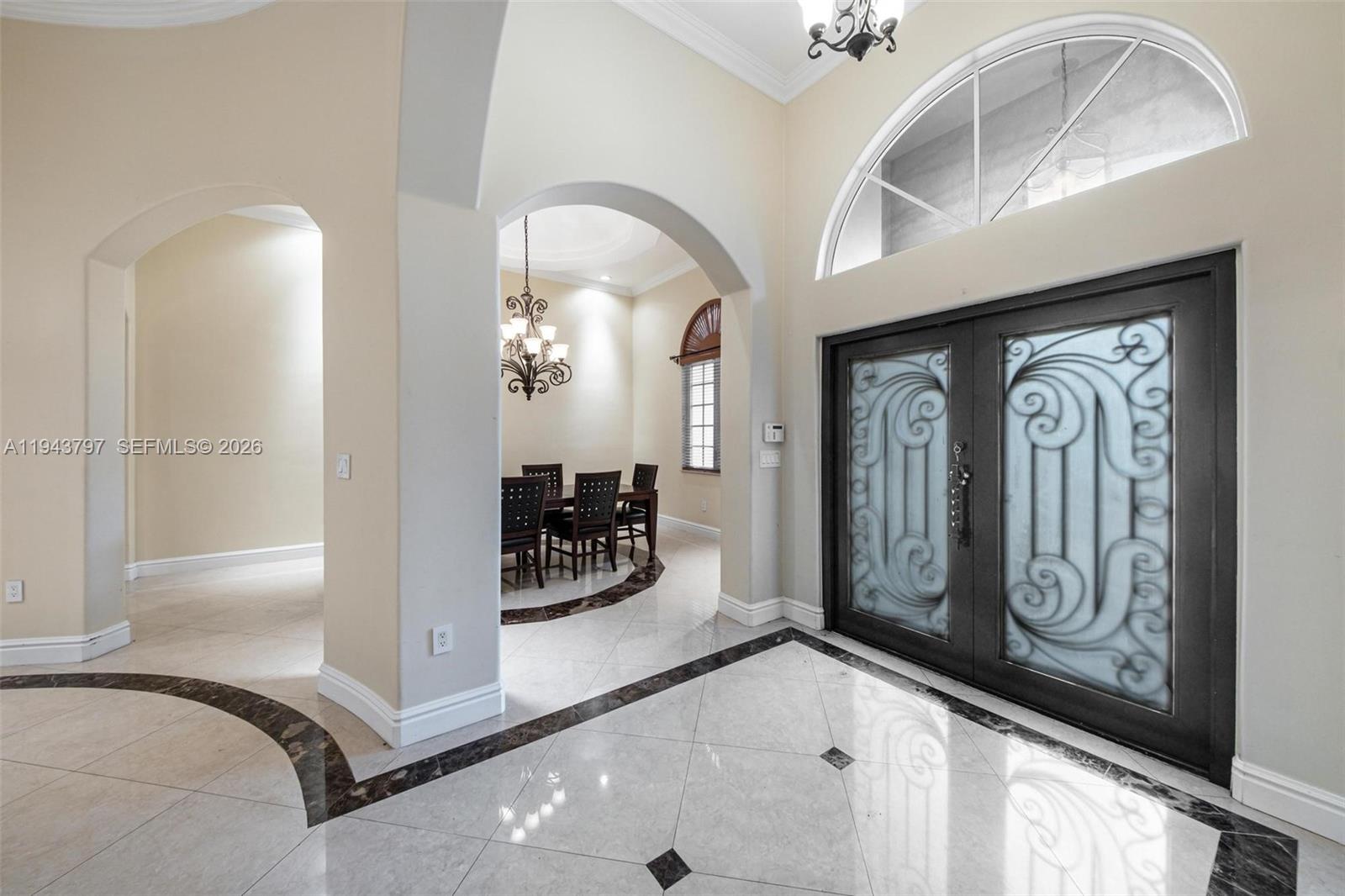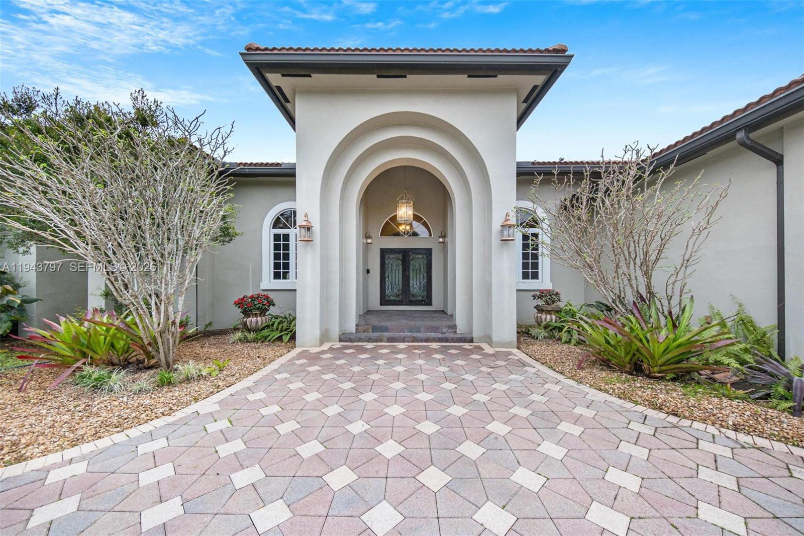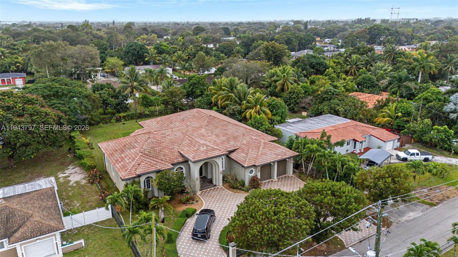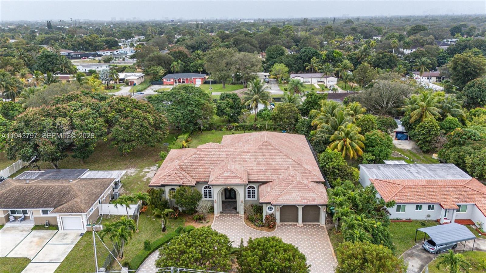 Custom built as a personal residence by the CEO of a building company, this exceptional 2010 Biscayne Estates home was designed without compromise, delivering rare architectural presence, build quality, and interior volume. Tucked behind two electric gates, the property sits on an oversized 20,000 SF lot with a 2-car garage and a true sense of privacy. The expansive grounds offer endless potential for a custom pool, resort-style patio, and outdoor entertaining. Inside, scale is immediate: 4 bedrooms, 4 baths, 4,662 SF, and soaring 11' ceilings with cathedral and tray details, dramatic arches, and multiple living spaces for both formal entertaining and everyday comfort. Patterned tile flooring, curated architectural accents, and generous walk-in closets add a boutique, hotel-like feel throughout. Hurricane-rated impact windows and doors provide durability and peace of mind, while a dedicated private movie theater delivers a rare lifestyle feature. A smart split layout works beautifully for guests or multi-generational living. Ideally located near North Miami Beach and the Golden Glades Interchange with quick access to I-95 and the Turnpike. Exceptional size, privacy, and construction at a value rarely found. Short-term rental or Airbnb investment opportunity as well. Charge port for EV cars included as well.