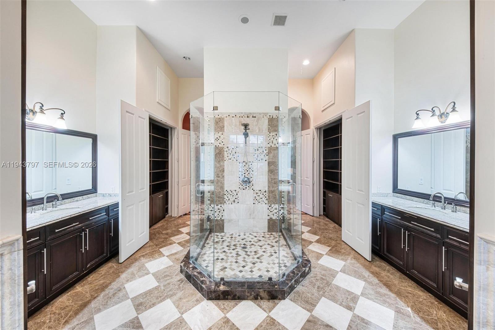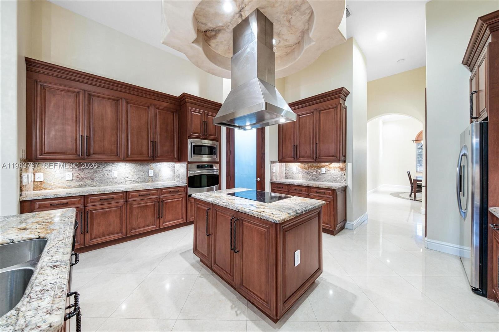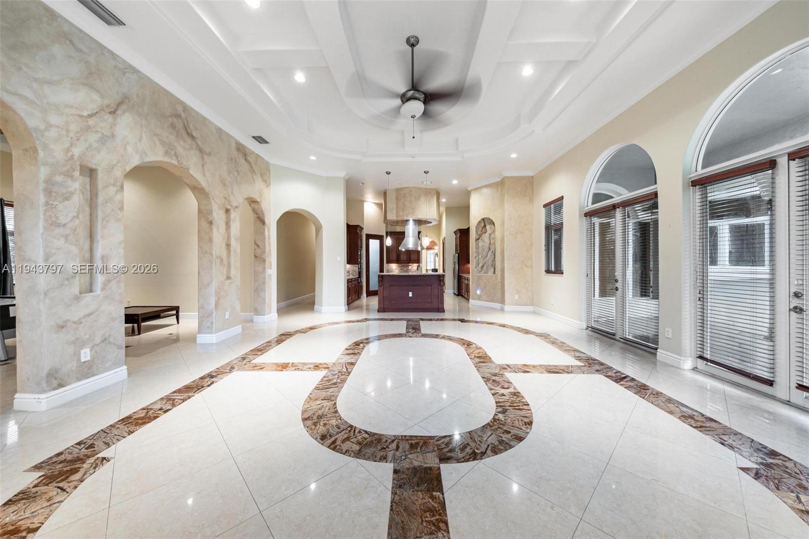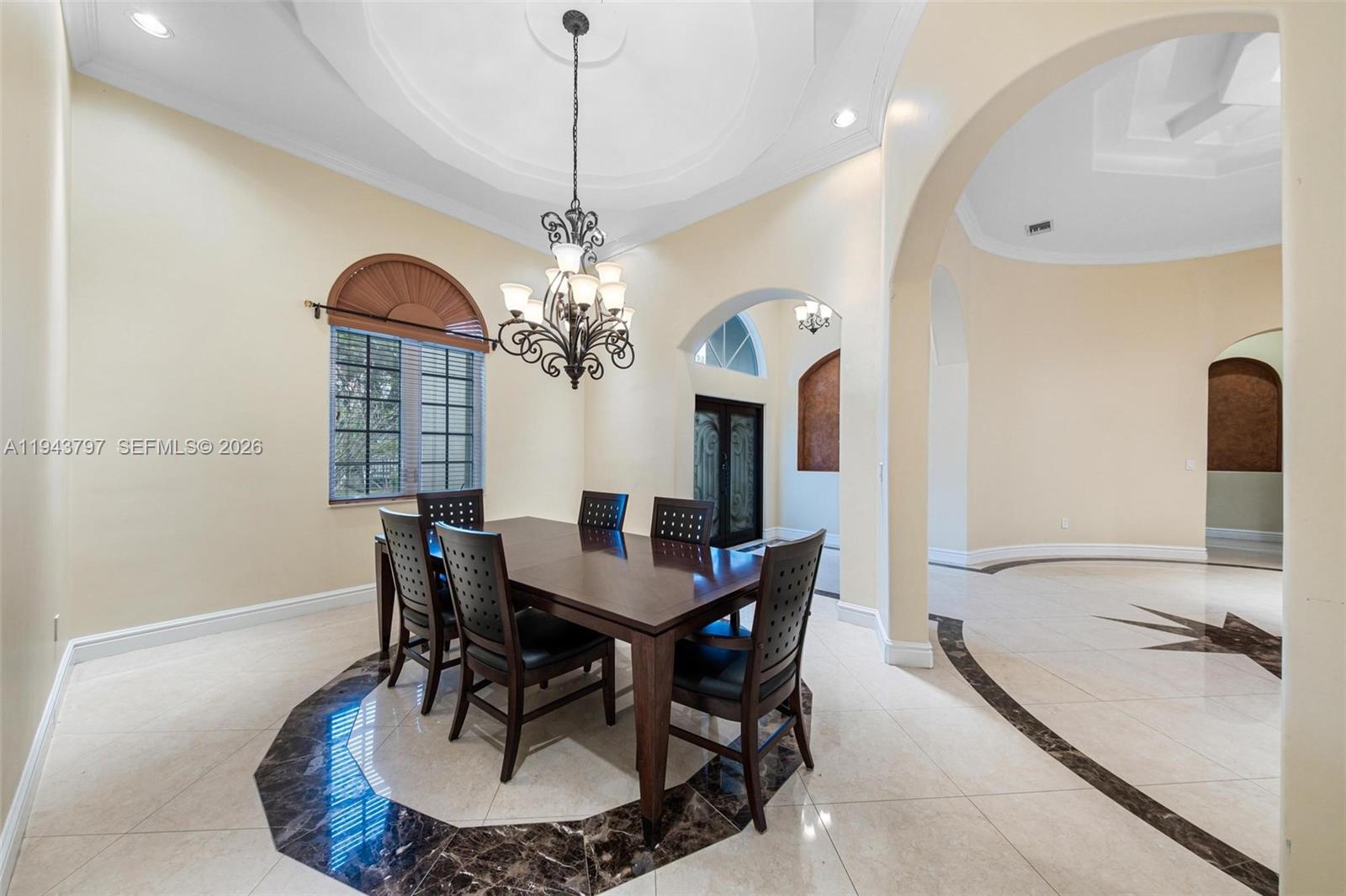 Custom built as a personal residence by the CEO of a building company, this exceptional 2010 Biscayne Estates home was designed without compromise, delivering rare architectural presence, build quality, and interior volume. Tucked behind two electric gates, the property sits on an oversized 20,000 SF lot with a 2-car garage and a true sense of privacy. The expansive grounds offer endless potential for a custom pool, resort-style patio, and outdoor entertaining. Inside, scale is immediate: 4 bedrooms, 4 baths, 4,662 SF, and soaring 11' ceilings with cathedral and tray details, dramatic arches, and multiple living spaces for both formal entertaining and everyday comfort. Patterned tile flooring, curated architectural accents, and generous walk-in closets add a boutique, hotel-like feel throughout. Hurricane-rated impact windows and doors provide durability and peace of mind, while a dedicated private movie theater delivers a rare lifestyle feature. A smart split layout works beautifully for guests or multi-generational living. Ideally located near North Miami Beach and the Golden Glades Interchange with quick access to I-95 and the Turnpike. Exceptional size, privacy, and construction at a value rarely found. Short-term rental or Airbnb investment opportunity as well. Charge port for EV cars included as well.