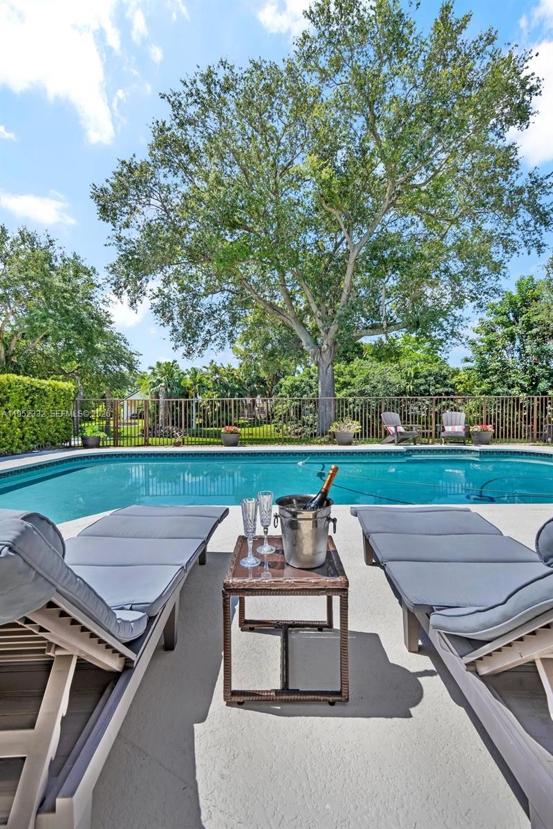 Welcome to Laurel Oaks, a charming community of just 61 homes, each set on nearly one acre of land. Relax outdoors on this waterfront home with a firepit, saltwater pool, barbeque and wood-fired pizza oven. Step inside to vaulted ceilings, porcelain tile floors, white kitchen with great cabinet space and granite countertops, renovated bathrooms, new epoxy floors in the garage, and a brand-new spacious walk-in closet in the master bedroom. This home features two private suites, ideal for multi-generational living or in-laws. Other upgrades and features include: Spanish tile roof replaced in 2017; two A/C systems installed in 2018; hybrid water heater replaced in 2017; whole-home water filtration system installed in 2021; all windows and doors are high-impact; fully solar-powered, resulting in very low electric bills; equipped with an EV charging station; brand new epoxy finish driveway.