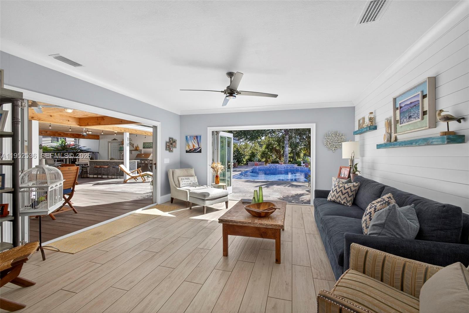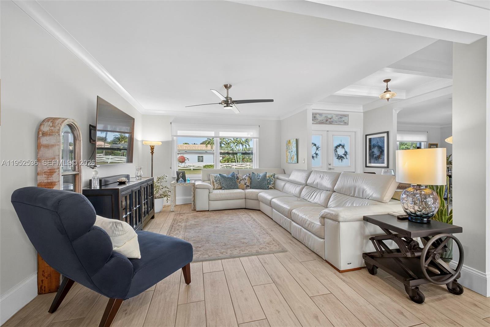 Sprawling estate situated on a private 1.1-acre cul-de-sac lot in a gated Horseshoe Acres community. This beautifully updated home offers peace of mind with a newer tile roof, impact windows and doors, A/C, 24k Generac generator w/1000gal propane tank. Outdoor living shines with a covered patio featuring wood paneled ceiling, built-in grill & bar, cabana bath, refinished waterfall edge heated pool, expansive Travertine pool deck, fire pit and tranquil canal water views beyond. A warm welcome awaits beyond the large pavered stones to the front entry. Interior updates are extensive and tastefully appointed. The light and bright open layout welcomes guests with expansive views of the grounds and pool the moment you enter. The kitchen features Sub-Zero and Wolf appliances, white shaker-door cabinetry, quartz countertops, and neutral "wood-plank" tile flooring throughout. Additional upgrades include 3 updated bathrooms, laundry and home office. The property offers RV parking with hookup, is fenced on 3-sides, and includes sprinklers fed by the rear perimeter canal. Enjoy privacy, space, and luxury living with a low HOA only $396/yr. Truly move-in ready—just bring your toothbrush!