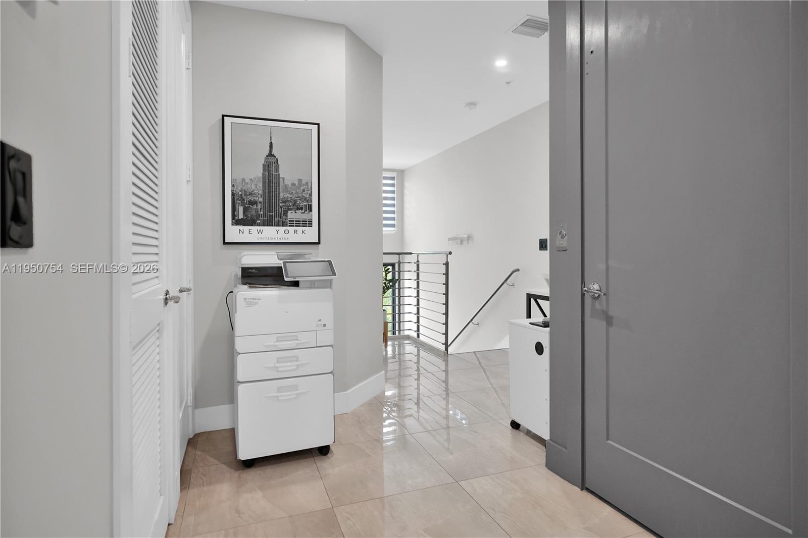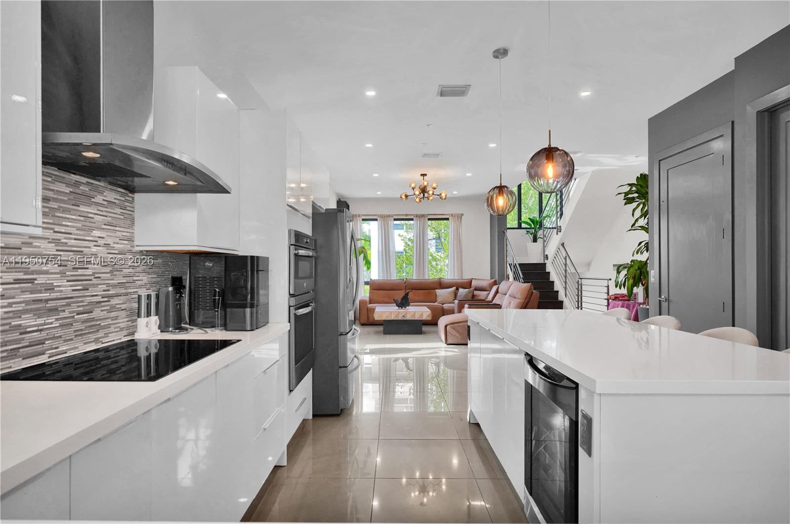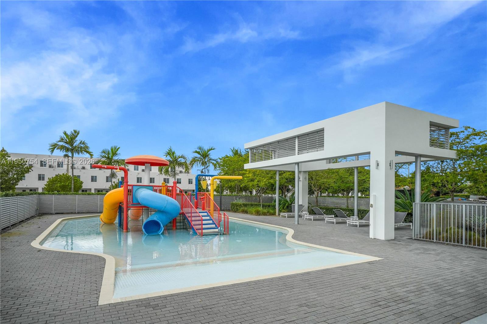 Corner tri level townhouse with private elevator in the highly sought after Landmark at Doral community. This spacious 4 bedroom, 3.5 bath residence spans 2,468 SF and features sleek porcelain floors, an open concept layout, and abundant natural light throughout. The contemporary kitchen offers a large cooking island, wall oven, and ample cabinetry—perfect for both daily living and entertaining. A convenient ground level bedroom is ideal for guests or a home office, while the private primary suite upstairs provides comfort and relaxation. Additional highlights include impact doors, a 2 car garage, elevator access to all levels, and community security patrol. Residents enjoy resort style amenities including a clubhouse, fitness center, pool, sauna, and tennis courts. Prime Doral location close to top rated schools, major highways, shopping, dining, and business centers. Property features a whole-house alkaline water filtration system providing filtered water throughout the home, including bathrooms and kitchen. Buyer to verify system specifications and maintenance.