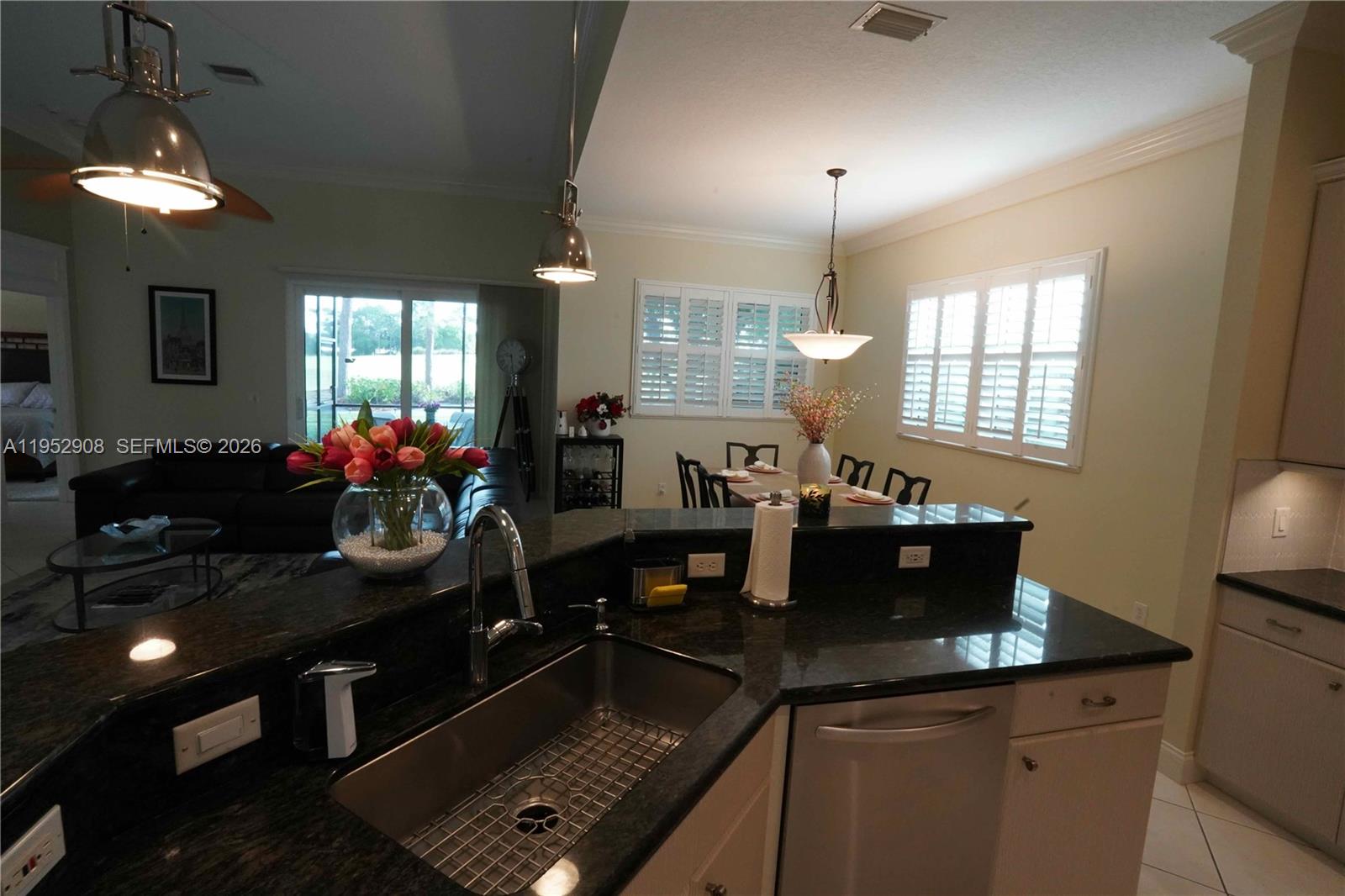 Breathtaking Sunsets and Beautiful Sunrises. This home is Private Golf Living at Its Finest – Located in the Prestigious PGA Village Welcome to your model-perfect oasis inside the exclusive, guard-gated PGA Village, one of the few private golf communities offering three championship courses plus a world-class practice facility. Perfectly positioned on the Ryder Course #1 Fairway, this meticulously updated estate on Belfry Place captures breathtaking sunsets and the ultimate Florida golf lifestyle. From the charming front porch to the grand French door entry, this 2 bedroom with den/office and 2.5 baths reflects true ''model home'' elegance and thoughtful innovation throughout every detail. THE MASTER RETREAT: The expansive primary suite is a private sanctuary featuring dual walk-in closets and direct access to the lanai. The spa-inspired bath includes dual vanities, a deep soaking tub, a separate walk-in shower, and a private water closet. Wake up to golf course views and step outside to enjoy the peaceful morning air. CHEF’S DREAM KITCHEN: Completely reimagined with granite countertops, a matching granite backsplash, and high-end appliances. Custom 3-piece crown molding, under-cabinet ambiance lighting, and a massive pantry elevate both style and function. Cabinetry includes custom pull-out sliders for effortless organization, plus integrated USB outlets for modern convenience.